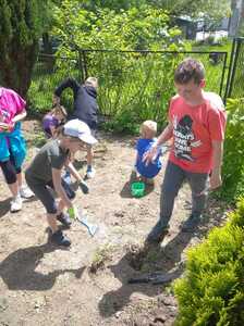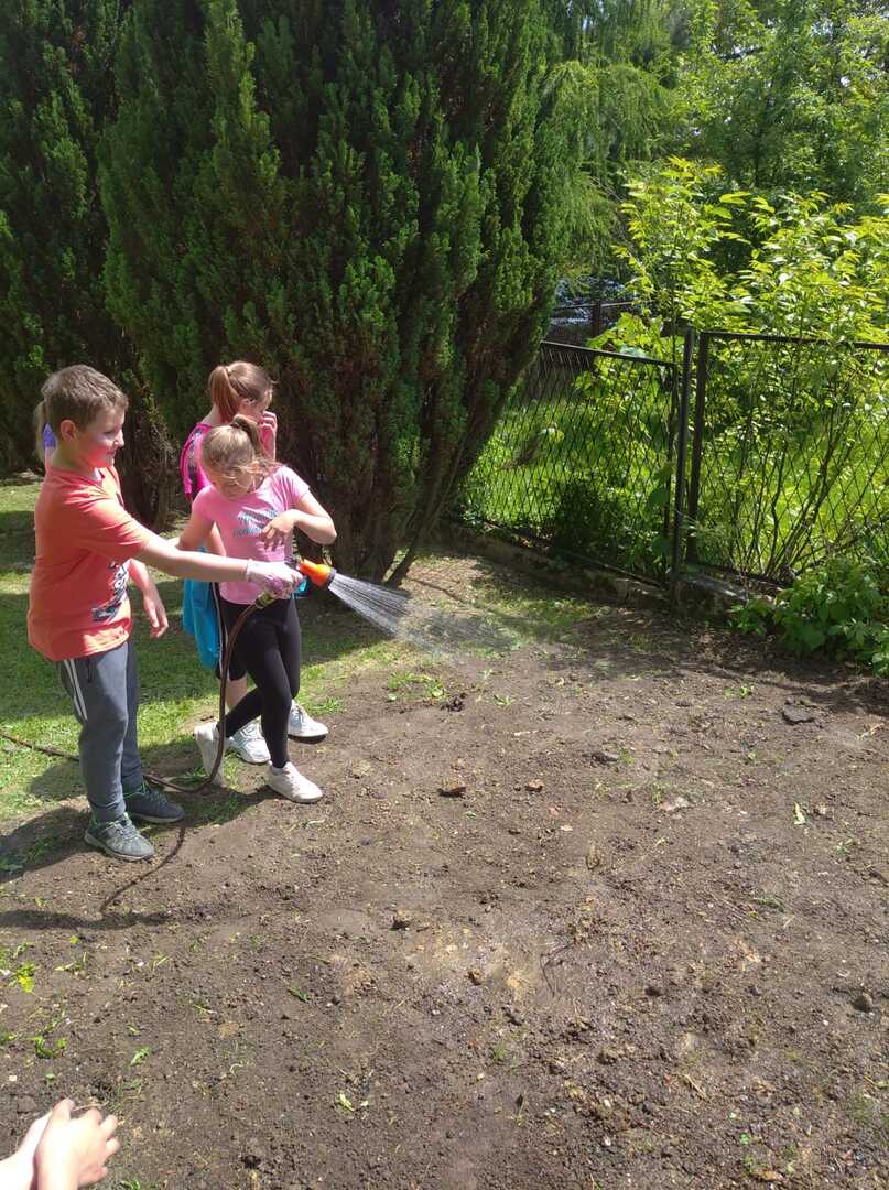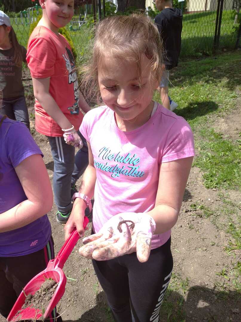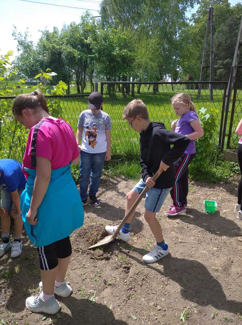 3) Klasa 3 zakładała na szkolnym podwórku kwietną łąkę, co zostało upamiętnione na zdjęciach, które znajdą swoje miejsce w powstającym albumie „Nasze inspiracje”