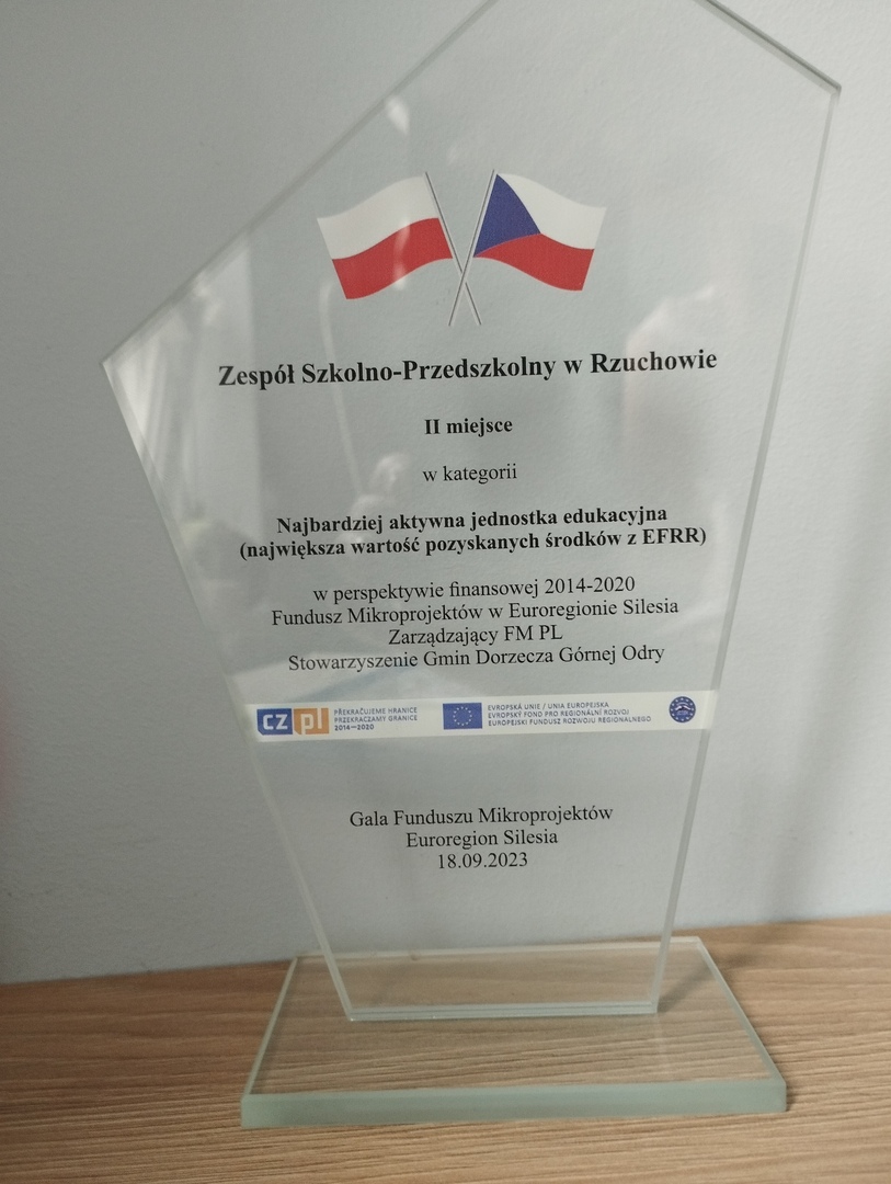 18 września, w czeskim Bohuminie miała miejsce uroczysta gala z okazji 25 lat Euroregionu Silesia oraz podsumowanie Funduszu Mikroprojektów Euroregionu Silesia w latach 2014 – 2020. W trakcie gali zostali wyróżnieni benficjenci, którzy realizowali projekty w ramach tego funduszu. Nasza placówka zajęła II miejsce w kategorii „Najbardziej aktywna jednostka edukacyjna – największa ilość środków pozyskanych z EFRR”. Bardzo cieszy nas to wyróżnienie! W okresie 2014 - 2020 zrealizowalimy aż pięć projektów: