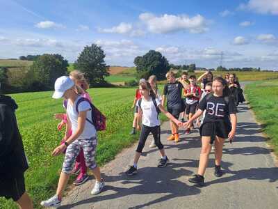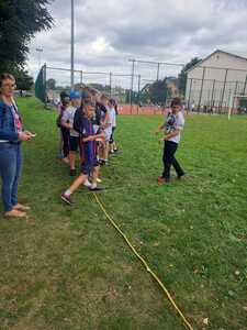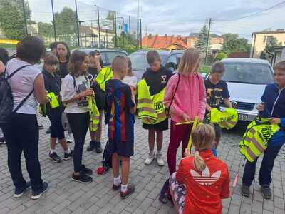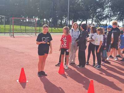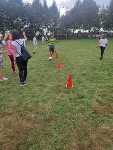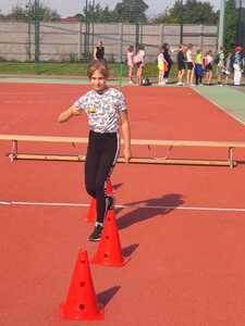 O godzinie 8:00 uczniowie klas V-VII SP Rzuchów wyruszyli wraz z opiekunami w pieszą podróż, by móc przystąpić do zmagań w 15 konkurencjach sportowych. Wędrówka po drodze była okazją do przypomnienia zasad bezpiecznego zachowania i poruszania się pieszych uczestników ruchu drogowego. Nie zabrakło elementów odblaskowych i kamizelek, bo ważne by być widocznym i bezpiecznym! Nasi młodzi sportowy rozpoczęli zabawę ze sportem od udziału w rowerowym torze przeszkód, a następnie ich zainteresowaniem cieszyły się inne konkurencje m.in.: skoki w workach, slalom z piłeczką pingpongową na łyżce, rzut piłką lekarską, skok wzwyż i wiele innych. Po wysiłku fizycznym przyszedł także czas na regenerację. Spędziliśmy miło czas przy posiłku przygotowanym przez obsługę szkoły w Kornowacu. Imprezę zakończył tradycyjnie taniec integracyjny wszystkich szkół, czyli belgijka. Po zakończeniu zmagań sportowych wróciliśmy z powrotem do naszej szkoły, w której równie dobrze bawili się młodsi uczniowie.