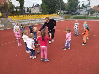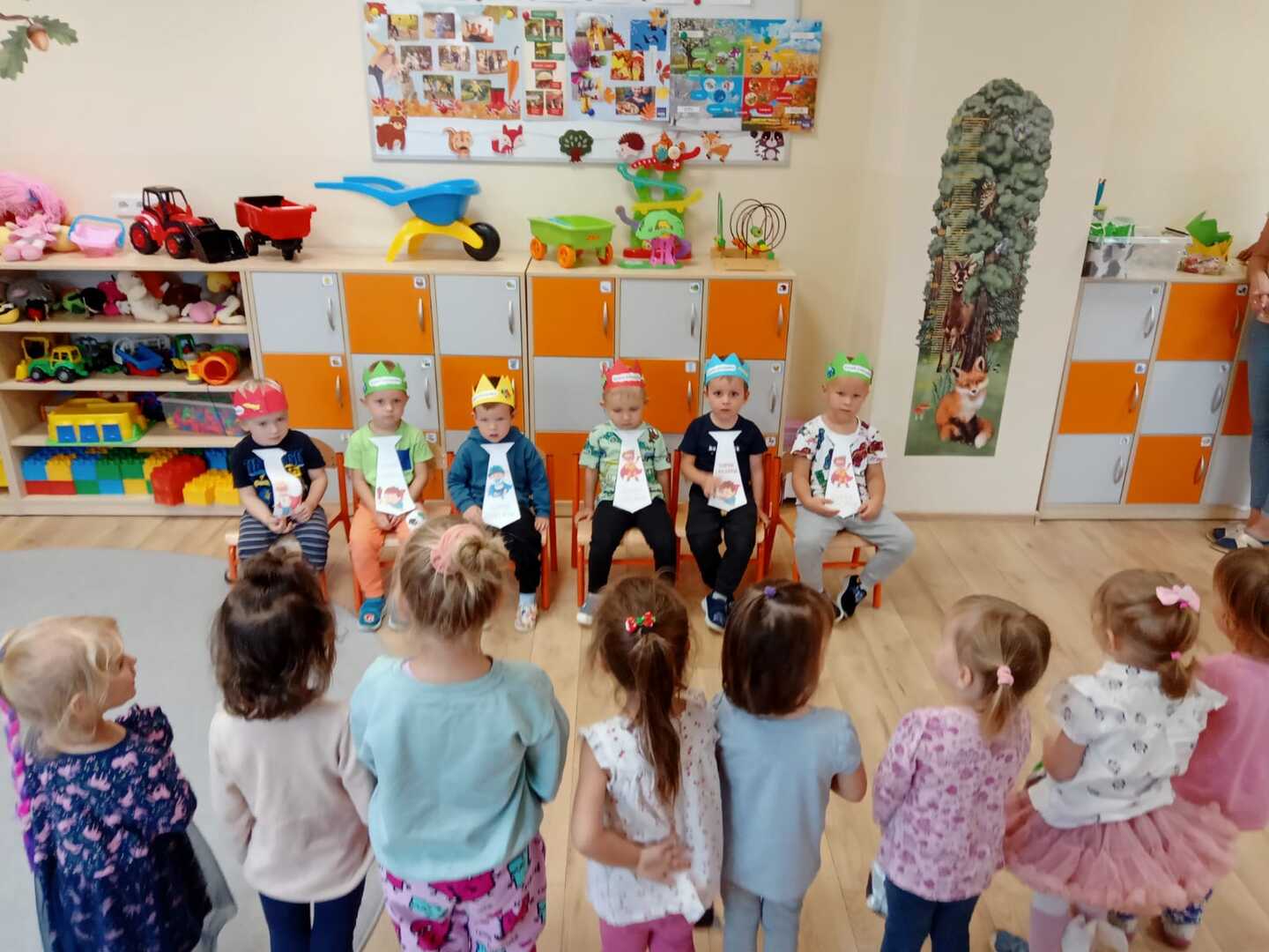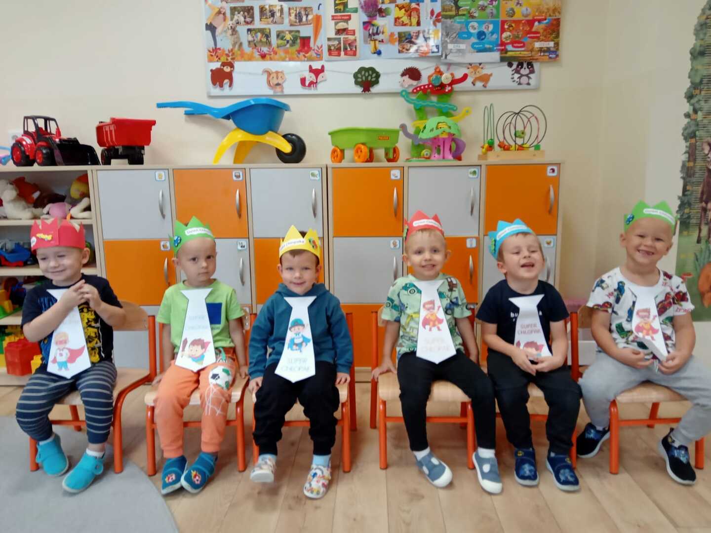 2 października w naszym przedszkolu odbyła się uroczystość z okazji Dnia Chłopca. Tego dnia dziewczynki stanęły na wysokości zadania i wspólnie z nauczycielkami przygotowały wiele niespodzianek dla swoich kolegów. Były więc życzenia, laurki oraz prezenty. Największą jednak niespodzianką były wspólne zabawy ruchowe grupy młodszej i starszej na boisku szkolnym m. in. był tor przeszkód, strzał na bramkę, zabawa „Szczur”. Nie zabrakło także słodkiego poczęstunku dla wszystkich dzieci. To był wyjątkowy i pełen wrażeń dzień, a uśmiech przez cały czas gościł na twarzach przedszkolaków. Na koniec pragniemy jeszcze wszystkim chłopcom – mniejszym i większym – życzyć wszystkiego najlepszego.