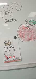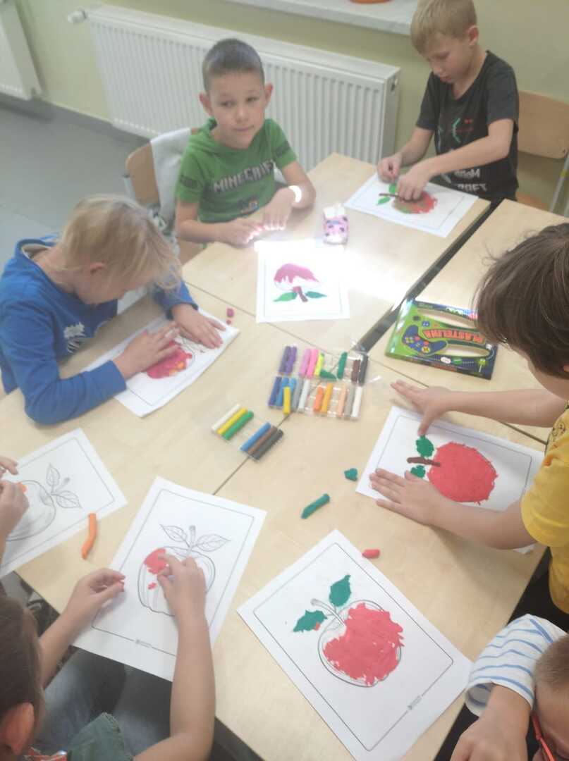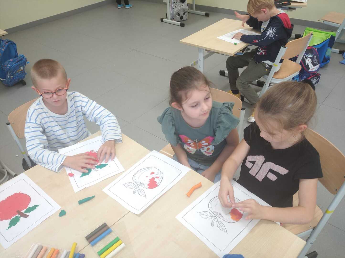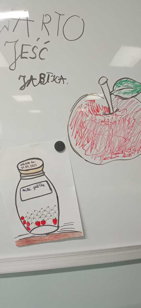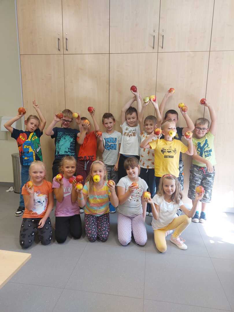 W ramach obchodów Światowego Dnia Jabłka uczniowie klas I-IV uczestniczyli w zajęciach, które miały na celu zachęcenie dzieci do spożywania jabłek, poznania ich wartości zdrowotnych oraz kształcenie nawyku zdrowego odżywiania się. Poszczególne klasy przez tydzień miały do wykonania określone zadania - od labiryntów, krzyżówek, zadań matematycznych, haseł reklamowych, po wykonanie zróżnicowanych prac plastycznych. Podczas akcji wszyscy uczestnicy zabaw zajadali się tymi wspaniałymi owocami, które urozmaiciły posiłek uczniów w szkole.