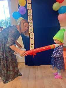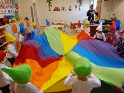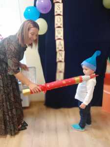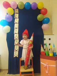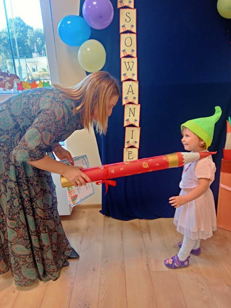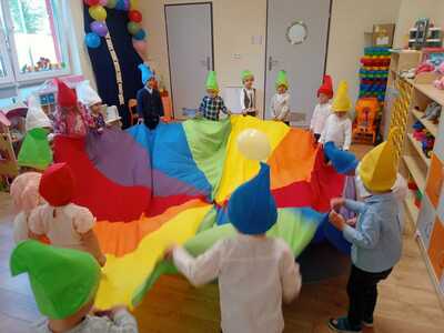13 października w naszym przedszkolu odbyła się uroczystość ,,Pasowania na Przedszkolaka". Tego dnia bohaterami były dzieci z grupy ,,Krasnoludki”, które dopiero zaczęły przygodę z przedszkolem. Uroczystość rozpoczęła się od przedstawienia krótkiej części artystycznej, w której dzieci zaprezentowały swoje umiejętności – dając tym samym dowód, jak dużo już potrafią. Były więc piosenki, wierszyki i tańce. Następnie pani dyrektor dokonała uroczystego pasowania dzieci na ,,Krasnoludki”. Na pamiątkę tego ważnego dnia dzieci otrzymały dyplomy. Po zakończeniu części oficjalnej dzieci pozowały do pamiątkowego zdjęcia, wspólnie bawiły się chustą animacyjną i balonami. Nie obyło się też bez słodkiego poczęstunku. Cały dzień upłynął nam w miłej i radosnej atmosferze.