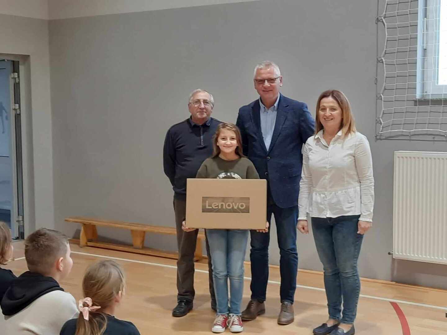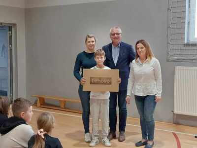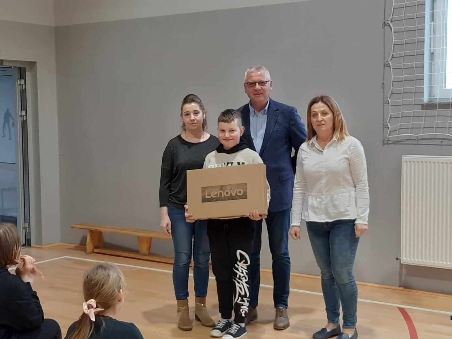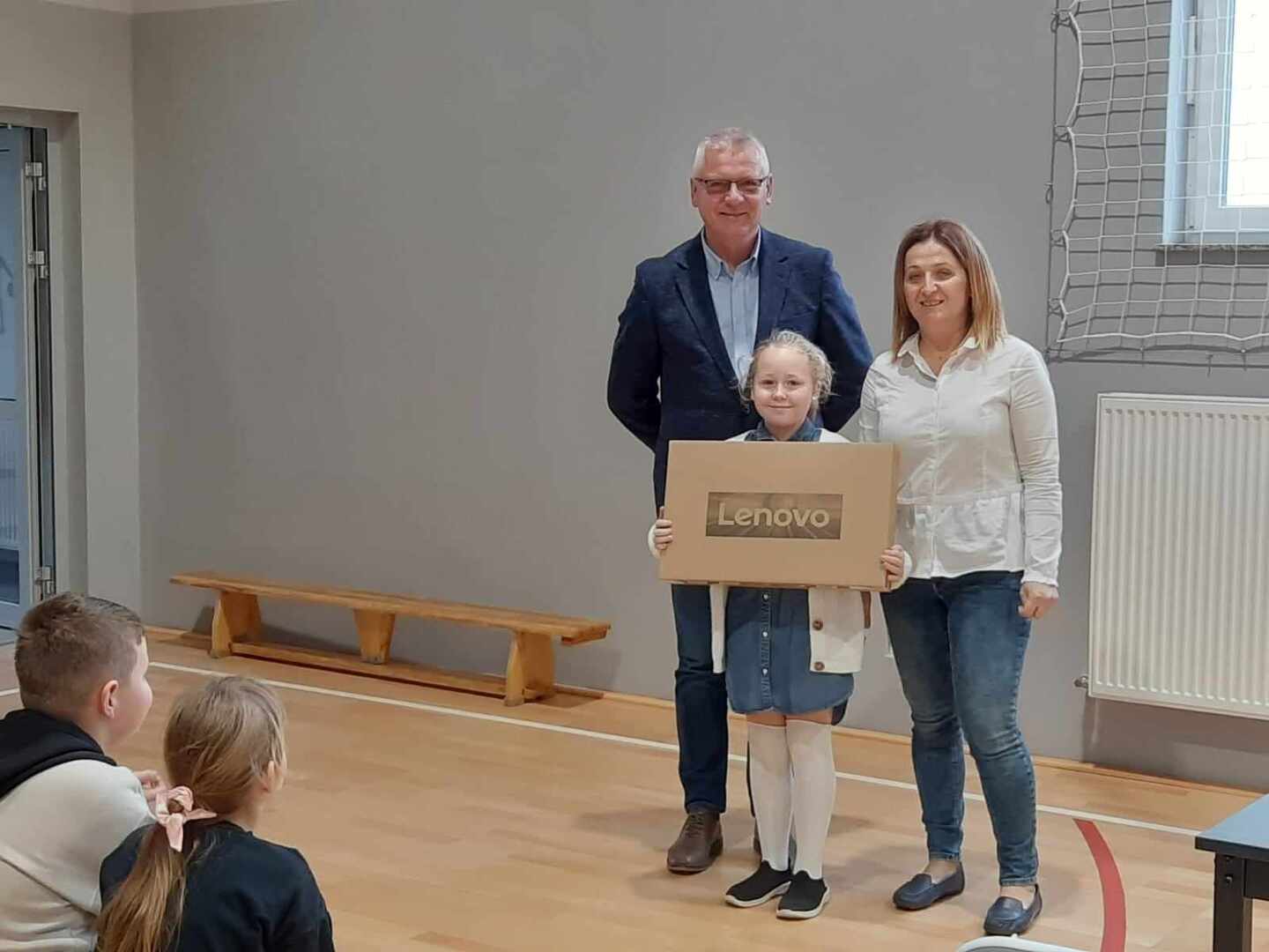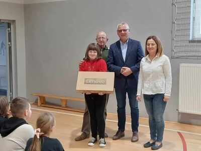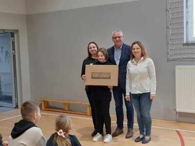 31 października uczniowie klasy 4 uroczyście odebrali z rąk Wójta Gminy Kornowac - Pana Grzegorza Niestroja oraz Dyrektor ZSP Pani Mirosławy Twardzik sprzęt z programu „Laptop dla ucznia”. Jest to rządowa inicjatywa, której celem jest wsparcie dzieci i młodzieży w rozwoju kompetencji cyfrowych. To dziś tak fundamentalne czynności jak czytanie, pisanie, dodawanie, odejmowanie, mnożenie czy dzielenie. Bez nich nie sposób funkcjonować we współczesnym świecie wykorzystującym w życiu codziennym technologie cyfrowe. Otrzymany na własność sprzęt może być wykorzystywany do nauki, rozwoju kompetencji cyfrowych oraz talentów i zainteresowań.