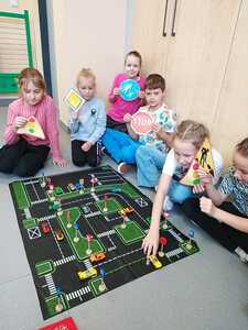 ZABAWY PLANSZOWE -POZNAJ BEZPIECZNĄ DROGĘ ZE ZNAKAMI! -w ramach akcji Odblaskowa szkoła 2023