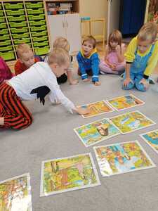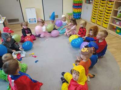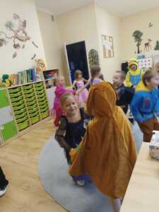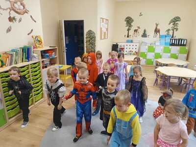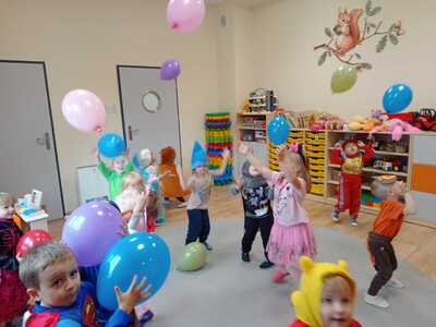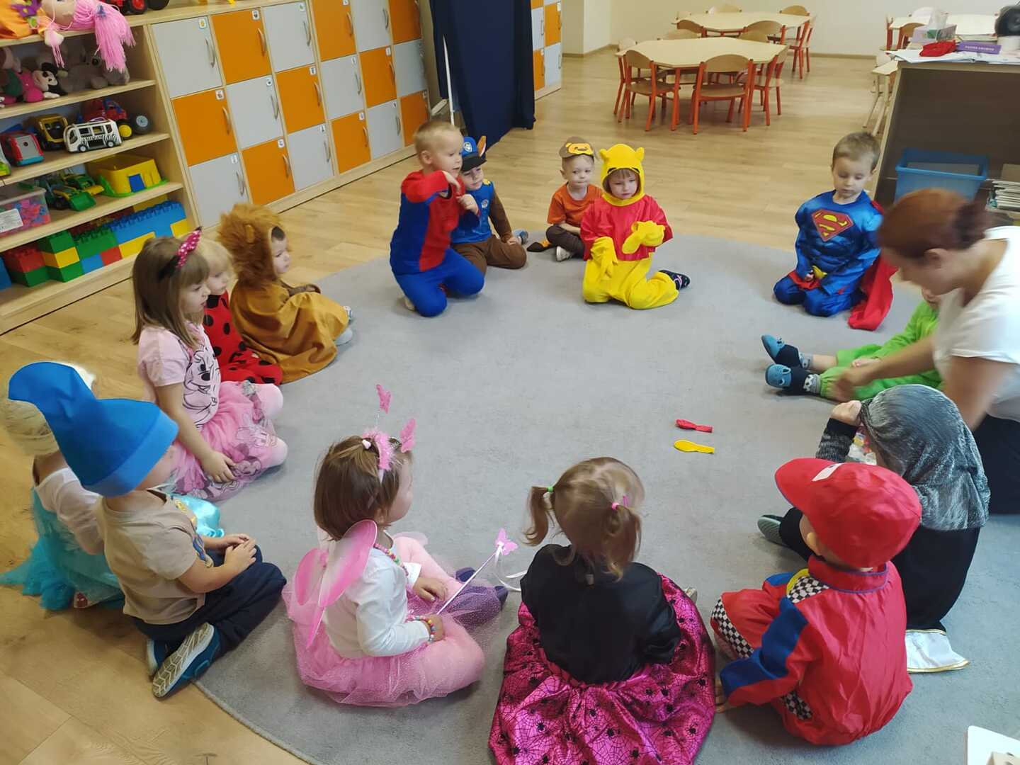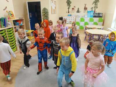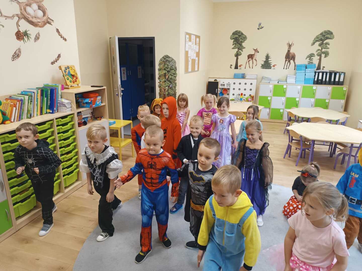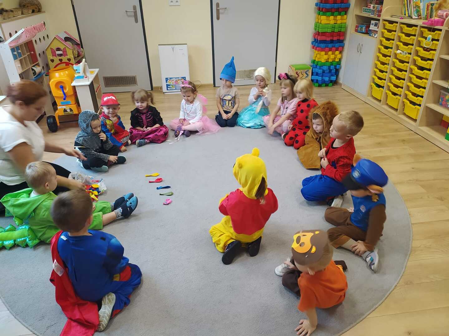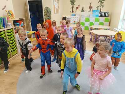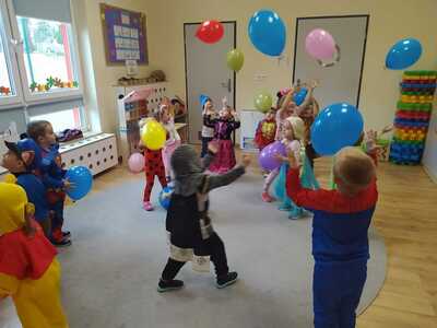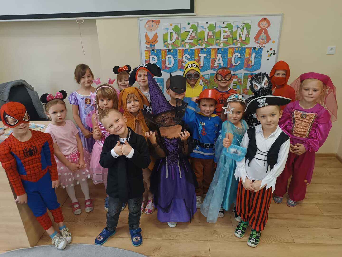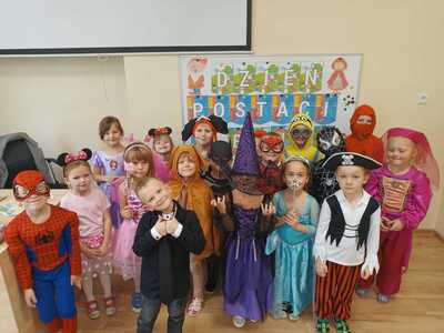 6 listopada w naszym przedszkolu obchodzony był Międzynarodowy Dzień Postaci z Bajek. Dzieci w tym wyjątkowym dniu przybyły do przedszkola przebrane w przepiękne bajkowe stroje. Nie zabrakło więc: księżniczek, zwierzątek, Spider-Mana, Czerwonego Kapturka, Kopciuszka i wielu innych bajkowych postaci. Dzieci zaprezentowały swoje stroje podczas wspólnych tańców i zabaw w salach. Wysłuchały fragmentów najbardziej znanych baśni i bajek, rozpoznawały bajkowe postacie i tytuły bajek, z których pochodzą. Na koniec bajkowego, pełnego radości i dobrej zabawy dnia, wszystkie dzieci zrobiły sobie pamiątkowe zdjęcie na tle bajkowej dekoracji przygotowanej specjalnie na tę okazję. To spotkanie sprawiło dzieciom bardzo wiele radości. Był to dzień pełen wrażeń.