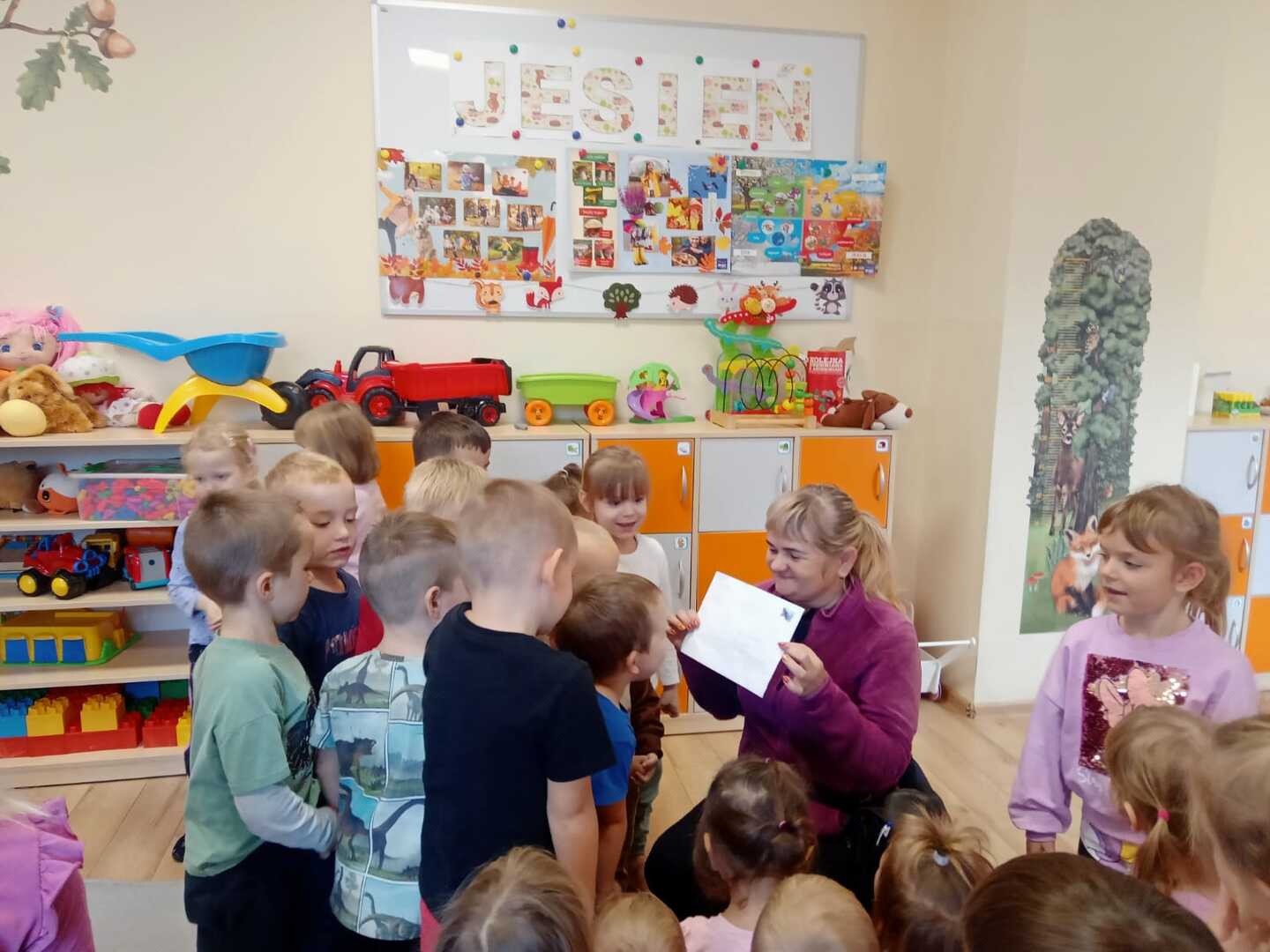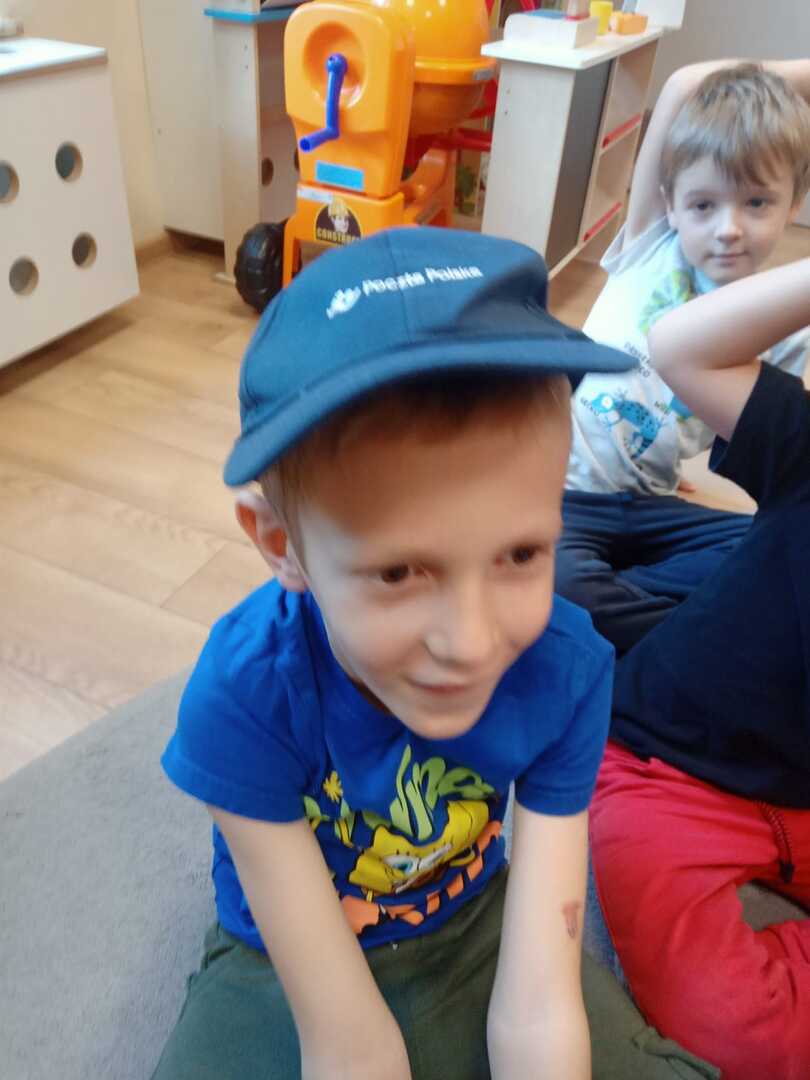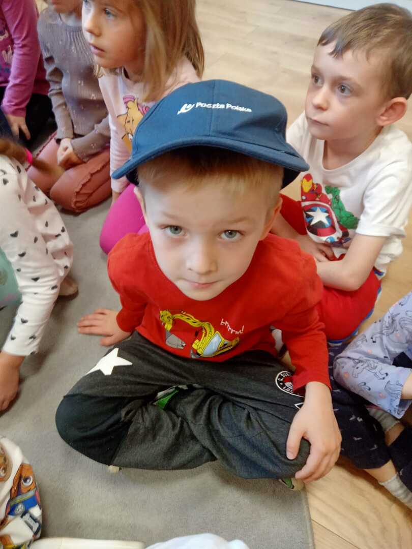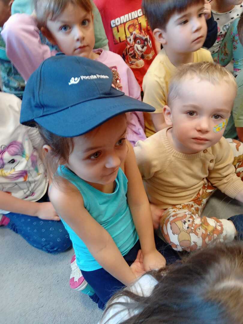 Z okazji Dnia Poczty Polskiej nasze przedszkole odwiedziła pani listonosz. Podczas spotkania dzieci dowiedziały się na czym polega praca listonosza, poznały znaczenie symboli Poczty Polskiej oraz etapy wędrówki listu od nadawcy do adresata. Nasz gość zaprezentował także wszystkim swoją ogromną torbę, w której nosi listy, paczki, tablet i awiza. Pozwolił także przymierzyć nam swoją czapkę. W podziękowaniu za wizytę dzieci wręczyły pani listonosz własnoręcznie zrobione laurki a ona podarowała im słodki upominek. Spotkanie to było świetną okazją do pogłębienia wiedzy oraz docenienia trudnej i niezwykle odpowiedzialnej pracy osób zatrudnionych w urzędach pocztowych.