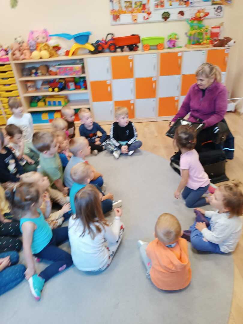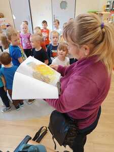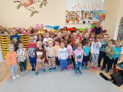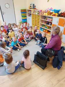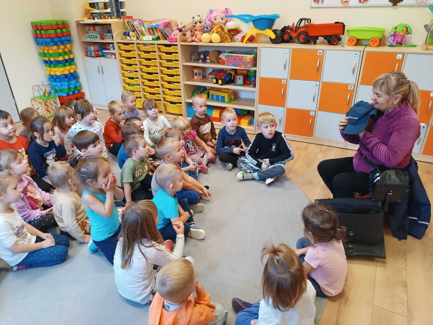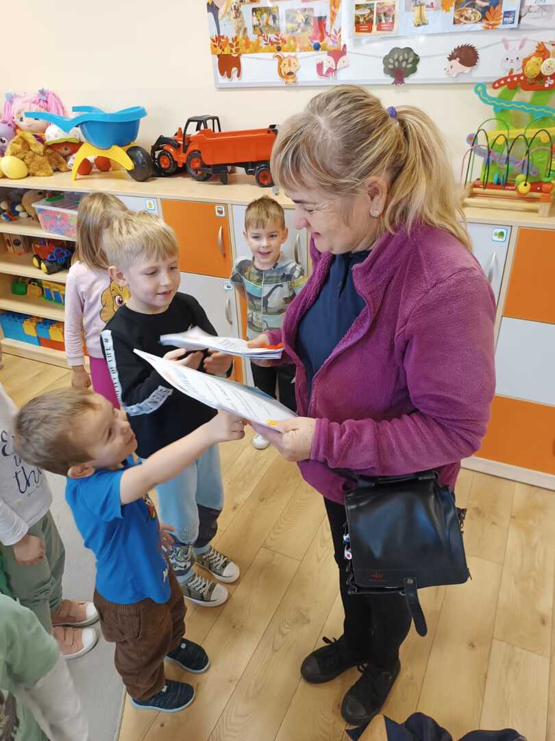 Z okazji Dnia Poczty Polskiej nasze przedszkole odwiedziła pani listonosz. Podczas spotkania dzieci dowiedziały się na czym polega praca listonosza, poznały znaczenie symboli Poczty Polskiej oraz etapy wędrówki listu od nadawcy do adresata. Nasz gość zaprezentował także wszystkim swoją ogromną torbę, w której nosi listy, paczki, tablet i awiza. Pozwolił także przymierzyć nam swoją czapkę. W podziękowaniu za wizytę dzieci wręczyły pani listonosz własnoręcznie zrobione laurki a ona podarowała im słodki upominek. Spotkanie to było świetną okazją do pogłębienia wiedzy oraz docenienia trudnej i niezwykle odpowiedzialnej pracy osób zatrudnionych w urzędach pocztowych.