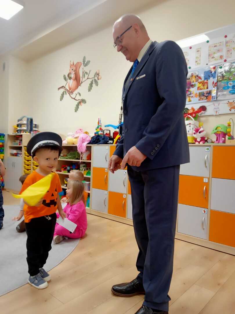 Dzień Kolejarza obchodzimy 25 listopada, w dniu patronki kolejarzy - św. Katarzyny Aleksandryjskiej. Święto to jest doskonałą okazją do przybliżenia dzieciom historii kolei i zawodu kolejarza.  Z tej właśnie okazji zaprosiliśmy do naszego przedszkola pana kolejarza z KOLEI ŚLĄSKICH. Nasz gość opowiedział przedszkolakom o swojej pracy, pokazał  mundur kolejarza oraz akcesoria związane z pracą  konduktora. Uświadomił dzieciom też jak bezpiecznie podróżować pociągami oraz jak zachowywać się w czasie pobytu na dworcu w sytuacji zagrożenia. Najwięcej jednak radości  sprawiła wszystkim możliwość samodzielnego kasowania biletów oraz przymierzenia czapki kolejarza. Na zakończenie złożyliśmy pani kolejarz serdeczne życzenia oraz wręczyliśmy laurkę. Całe spotkanie przebiegło w miłej i radosnej atmosferze oraz przyczyniło się do pogłębienia naszej wiedzy na temat zawodu kolejarza.
