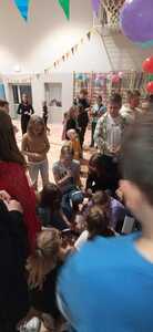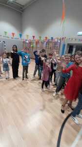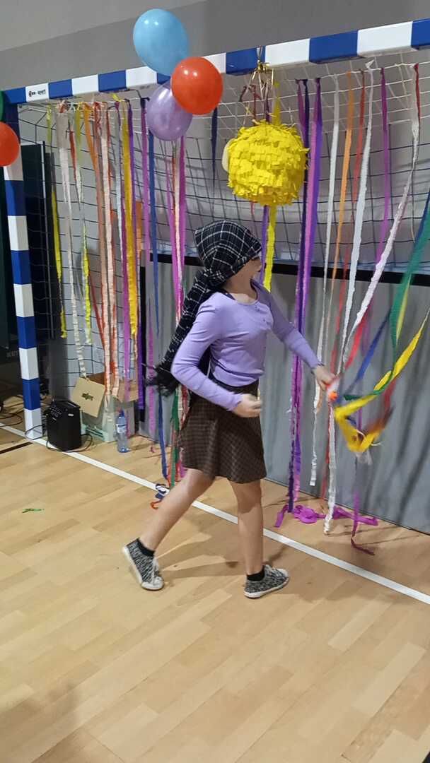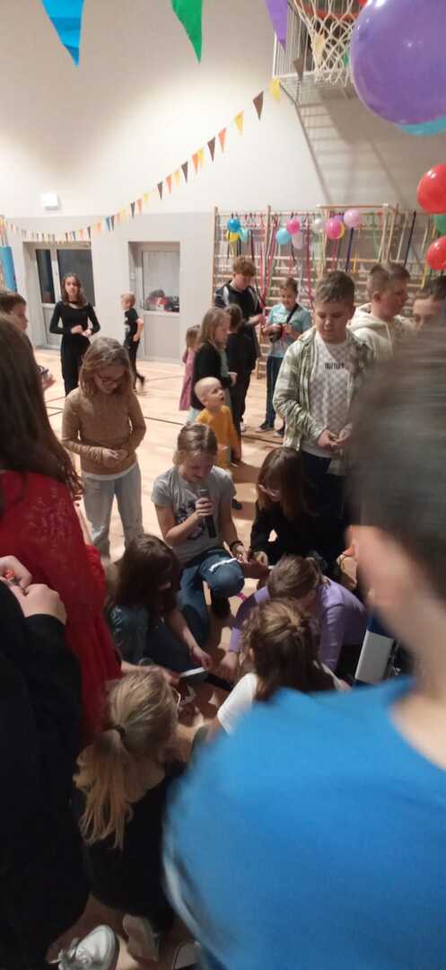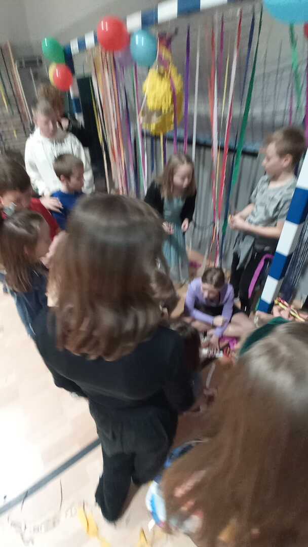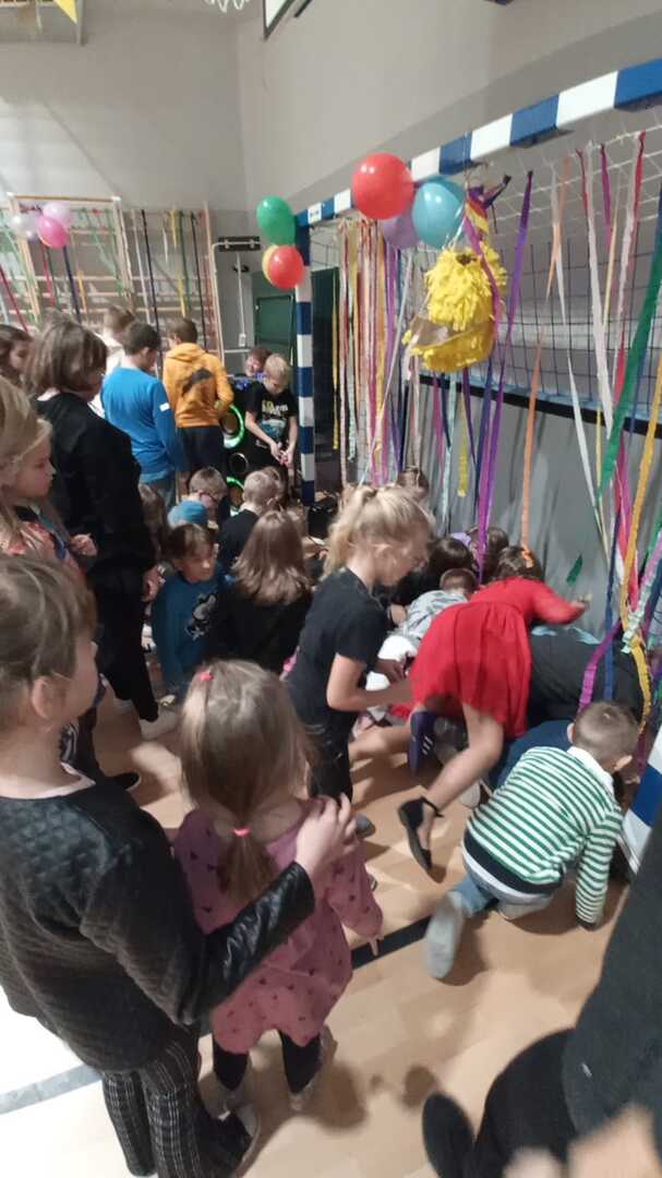 Dnia 1.12.2023r. w naszej szkole odbyła się dyskoteka andrzejkowa zorganizowana przez Samorząd Uczniowski wraz z opiekunami. W trakcie imprezy uczniowie klas I-VII mieli okazję do wspólnej zabawy, tańca i wróżb. Podczas dyskoteki przygotowane zostały gofry, a rodzice uczniów zrobili ciasteczka z wróżbą oraz galaretki. Wywróżyć można było swoja bliższą i dalszą przyszłość. Muzyka głośno rozbrzmiewała, a wesołe kolorowe światła migotały. DJ Olek świetnie dobierał piosenki dla młodszych i starszych. Wiele radości przyniosła zabawa w „krzesełka”, gąsienica z balonami oraz wyścig z cytryną. Na koniec wieczoru andrzejkowego niespodzianką dla uczniów była piniata z cukierkami, każdy chciał spróbować swoich sił, żeby ją otworzyć uderzając kijem, trudnością było jednak zrobienie tego z zawiązanymi oczami. Śmiech uczniów i zadowolone twarze świadczyły o tym, że zabawa była udana. Na koniec wszyscy razem posprzątali salę i w wesołych nastrojach udali się do domów.