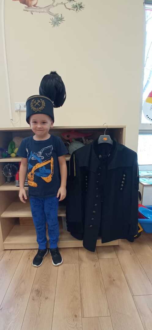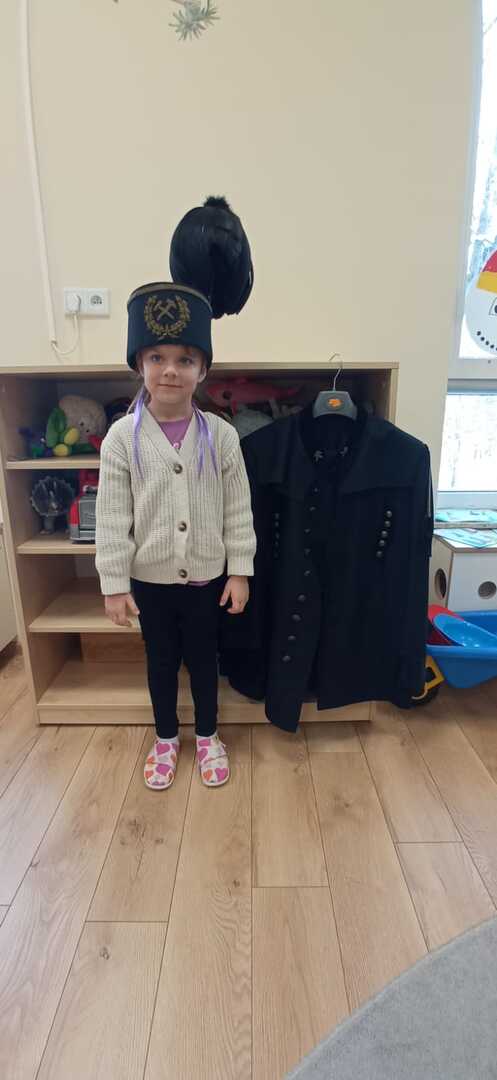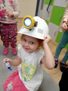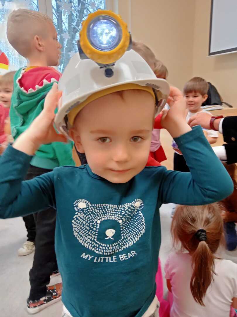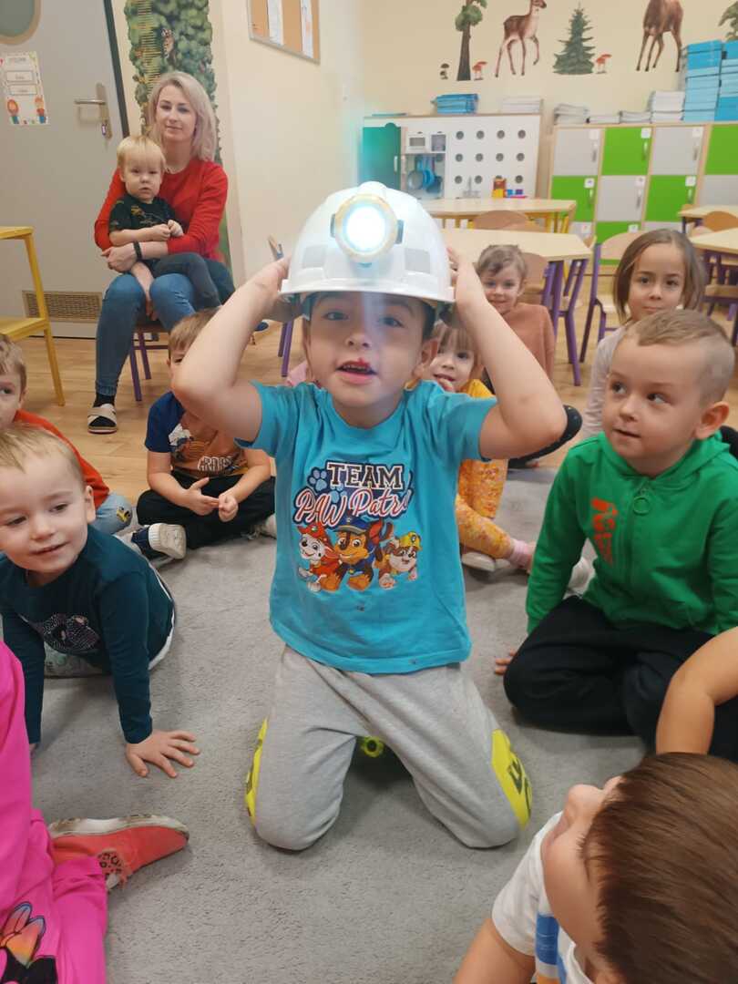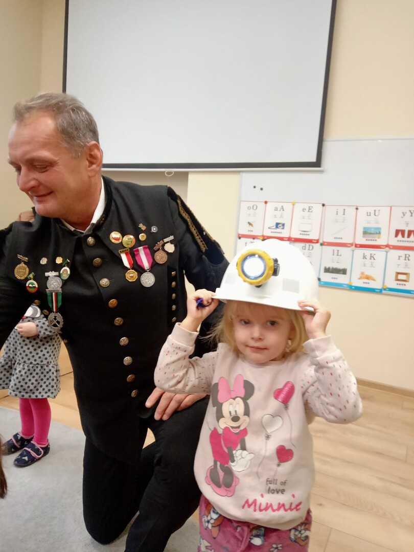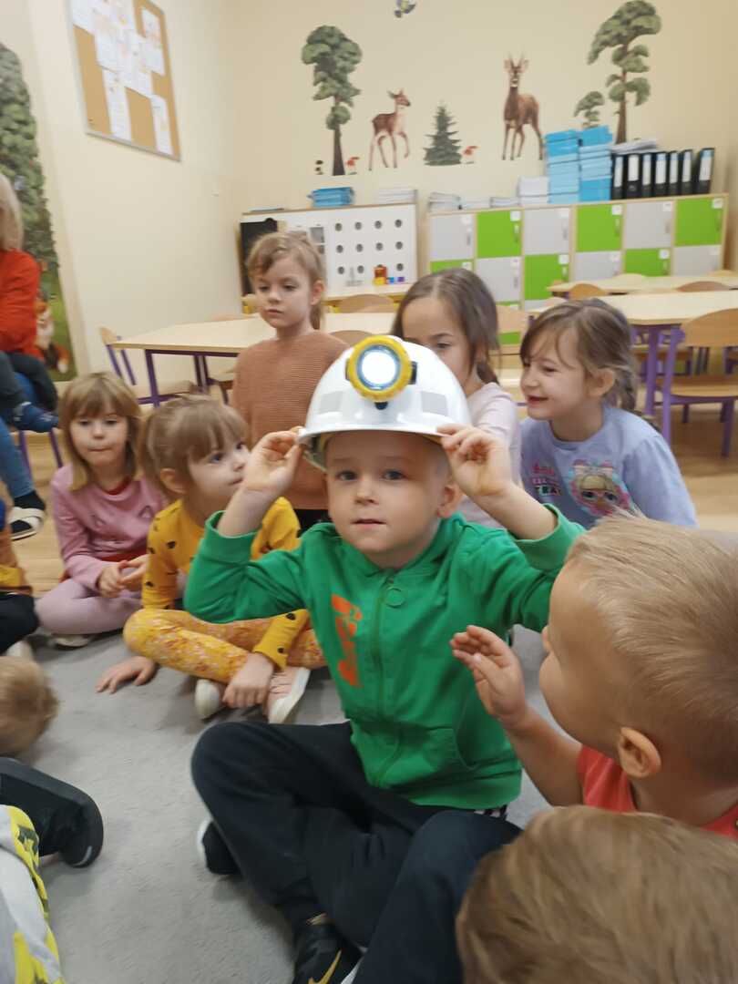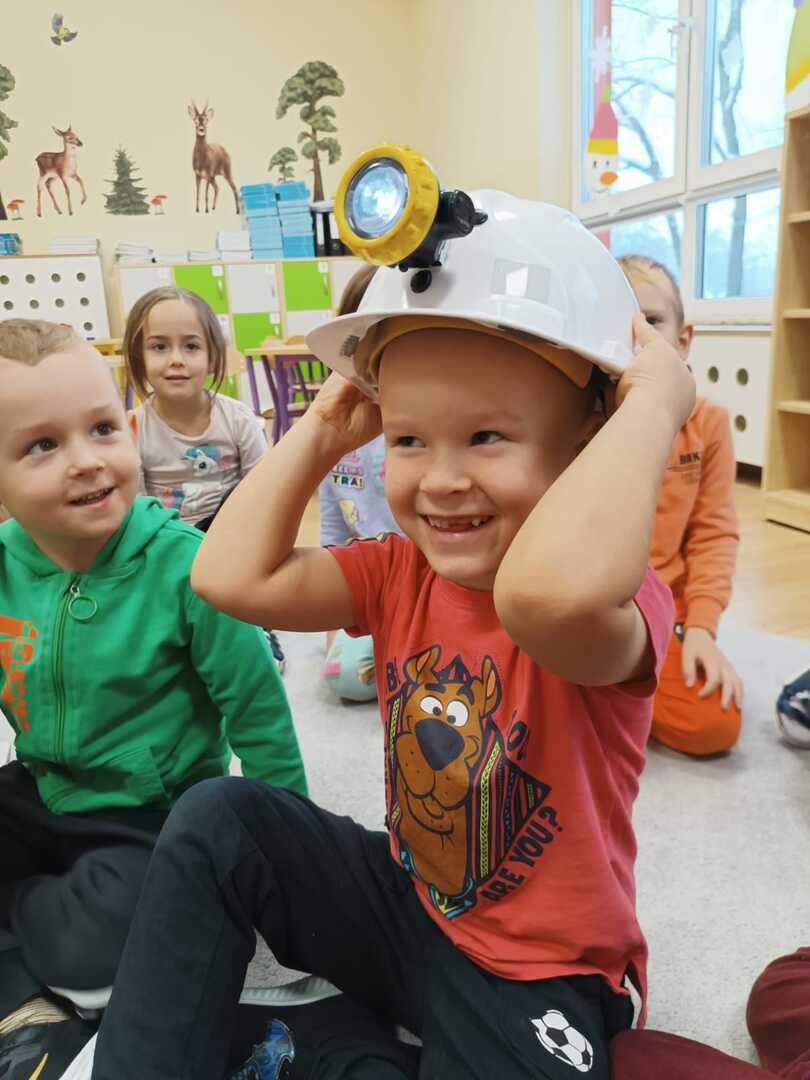7 grudnia zaszczycił nas swoją obecnością górnik w stroju galowym. Podczas spotkania dzieci miały okazję wzbogacić swoje wiadomości na temat ciężkiej i czasami niebezpiecznej pracy górnika. Dowiedziały się, w jaki sposób wydobywany jest węgiel oraz jak bardzo jest nam potrzebny w codziennym życiu. Górnik przybył do nas w stroju galowym. Dlatego dzieci miały okazję przyjrzeć się z bliska mundurowi, czapce górniczej, odznaczeniom, które górnicy otrzymują za długoletnią, ciężką pracę w kopalni. Nasz gość wyjaśnił dzieciom, jakie znaczenie mają kolory pióropuszy na czapce i kto je nosi. Przedszkolaki chętnie i z zaciekawieniem wysłuchały opowieści. Miały również możliwość założenia czapki górniczej - czako oraz kasku. Na zakończenie dzieci i panie nauczycielki serdecznie podziękowały panu górnikowi za miłe spotkanie.