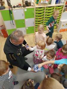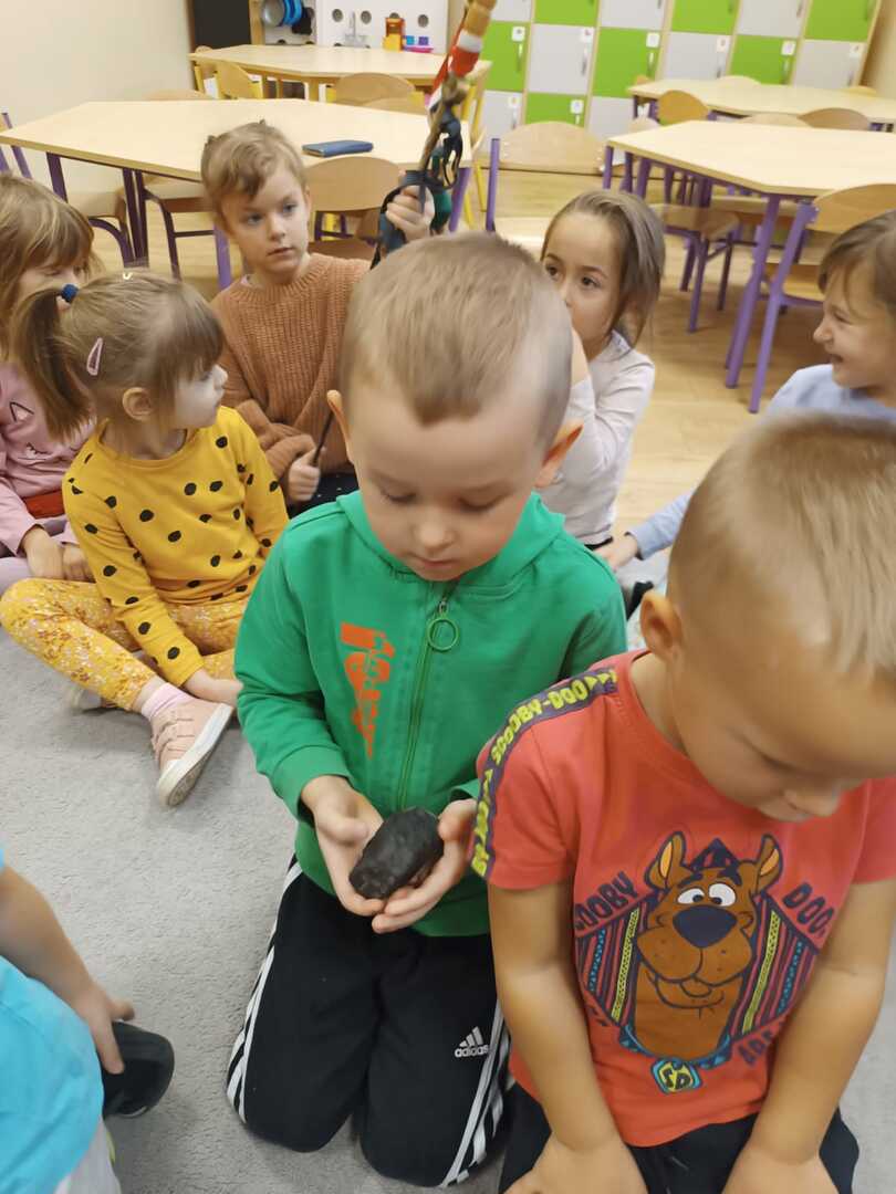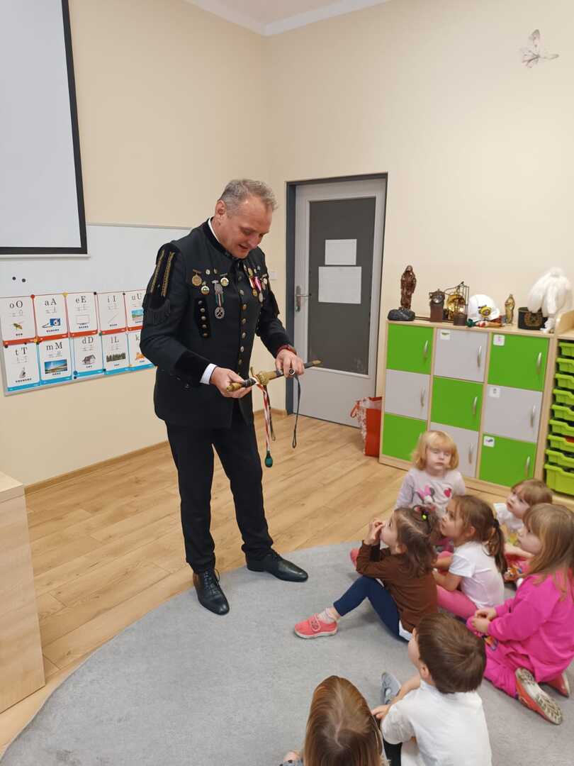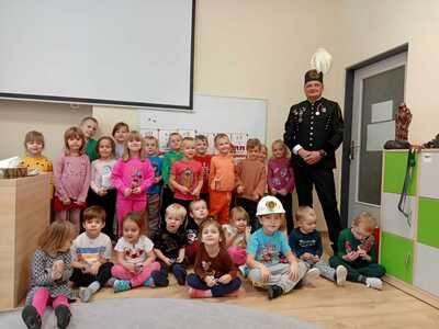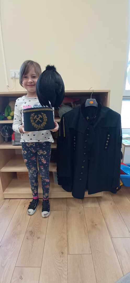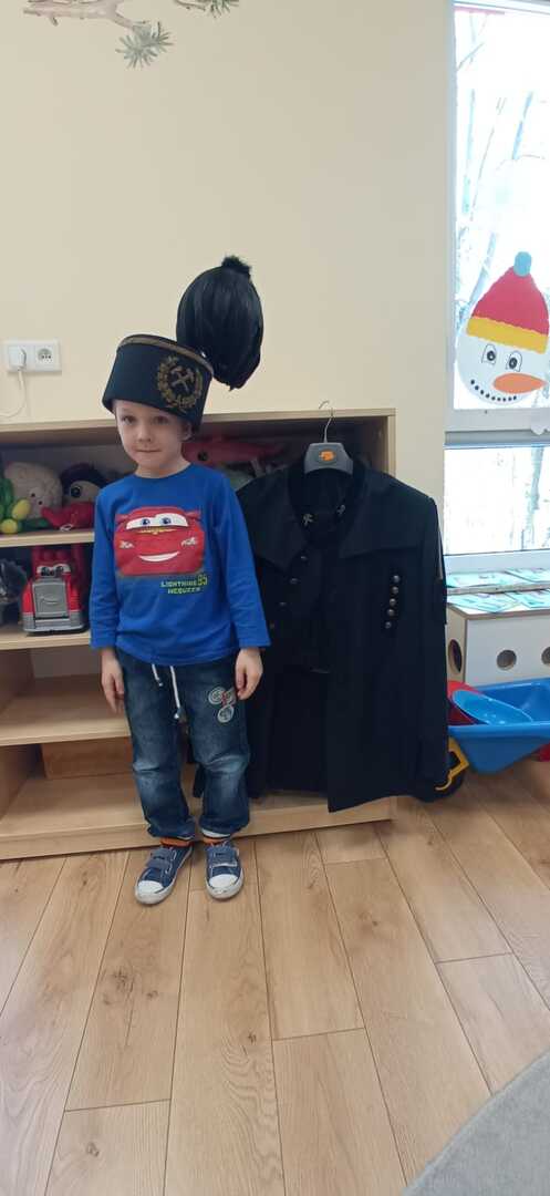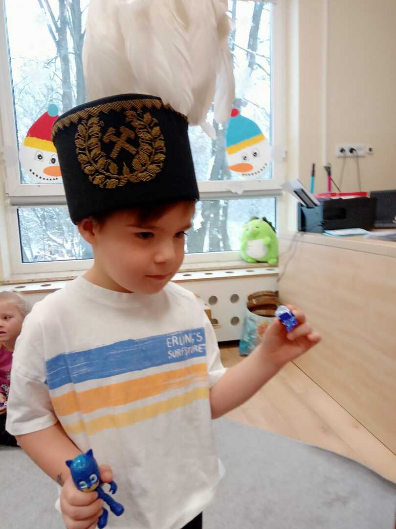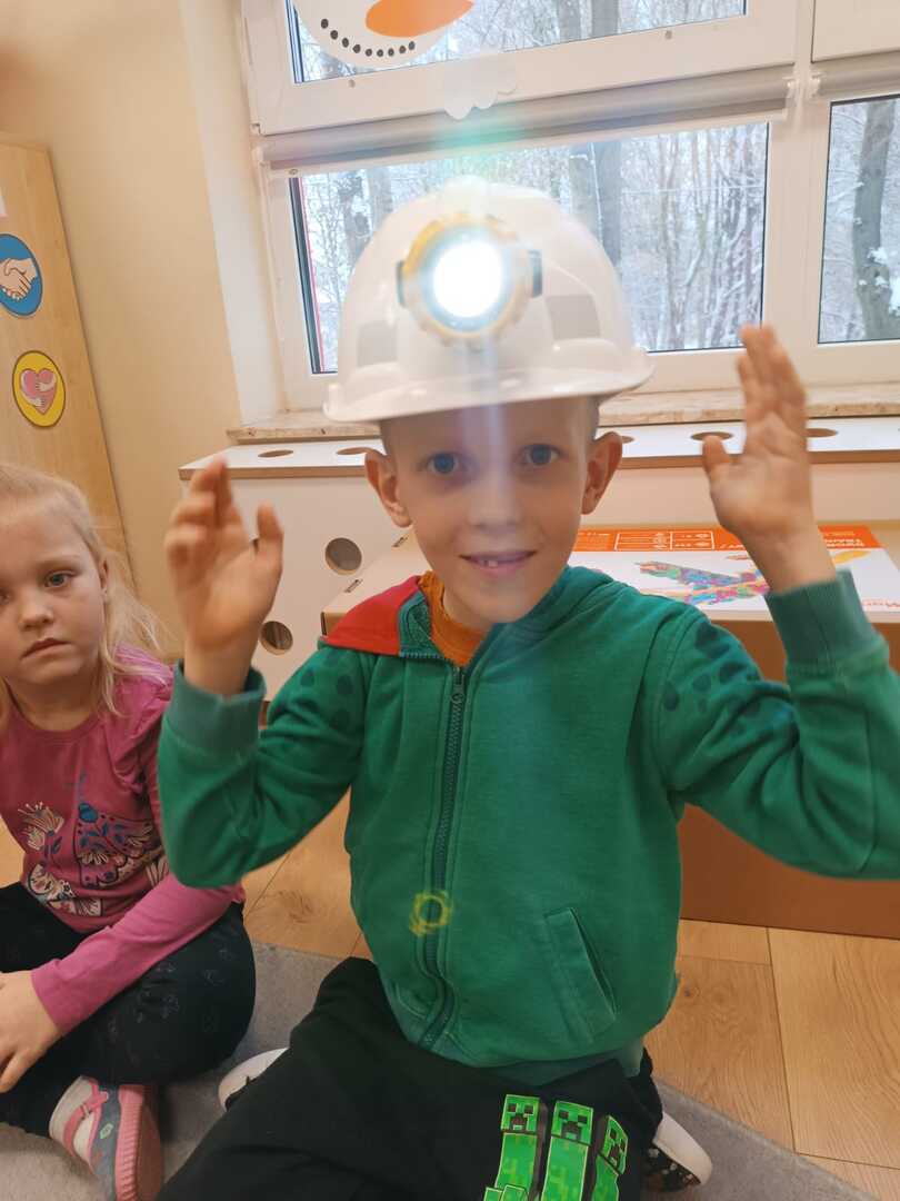 7 grudnia zaszczycił nas swoją obecnością górnik w stroju galowym. Podczas spotkania dzieci miały okazję wzbogacić swoje wiadomości na temat ciężkiej i czasami niebezpiecznej pracy górnika. Dowiedziały się, w jaki sposób wydobywany jest węgiel oraz jak bardzo jest nam potrzebny w codziennym życiu. Górnik przybył do nas w stroju galowym. Dlatego dzieci miały okazję przyjrzeć się z bliska mundurowi, czapce górniczej, odznaczeniom, które górnicy otrzymują za długoletnią, ciężką pracę w kopalni. Nasz gość wyjaśnił dzieciom, jakie znaczenie mają kolory pióropuszy na czapce i kto je nosi. Przedszkolaki chętnie i z zaciekawieniem wysłuchały opowieści. Miały również możliwość założenia czapki górniczej - czako oraz kasku. Na zakończenie dzieci i panie nauczycielki serdecznie podziękowały panu górnikowi za miłe spotkanie.