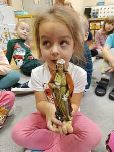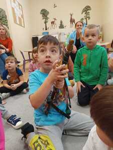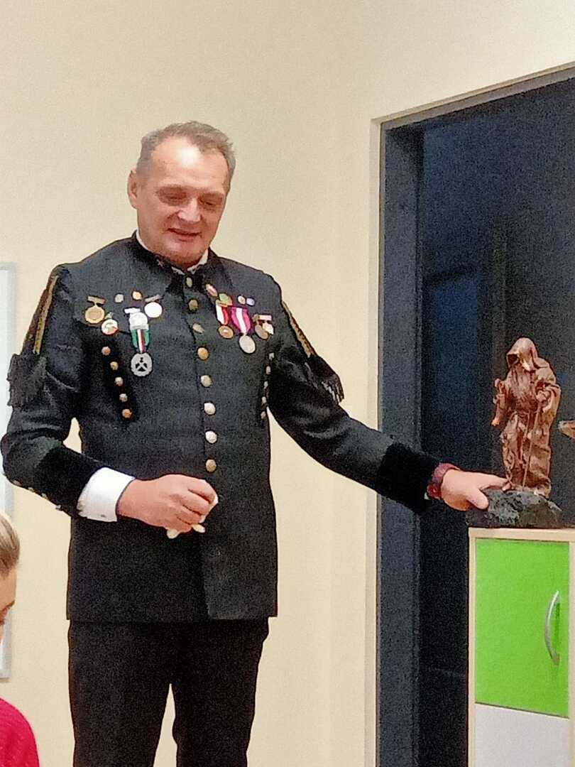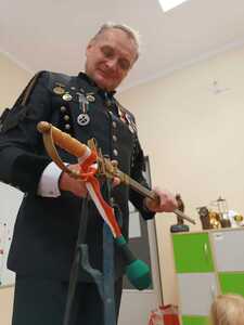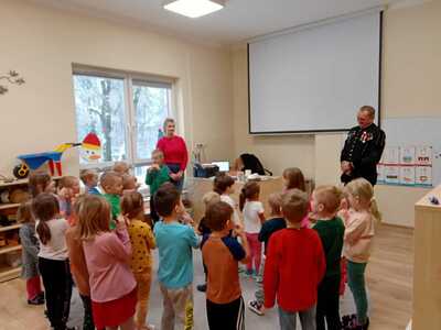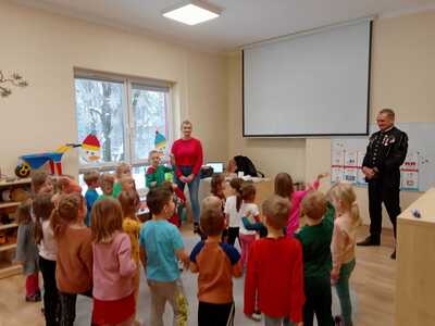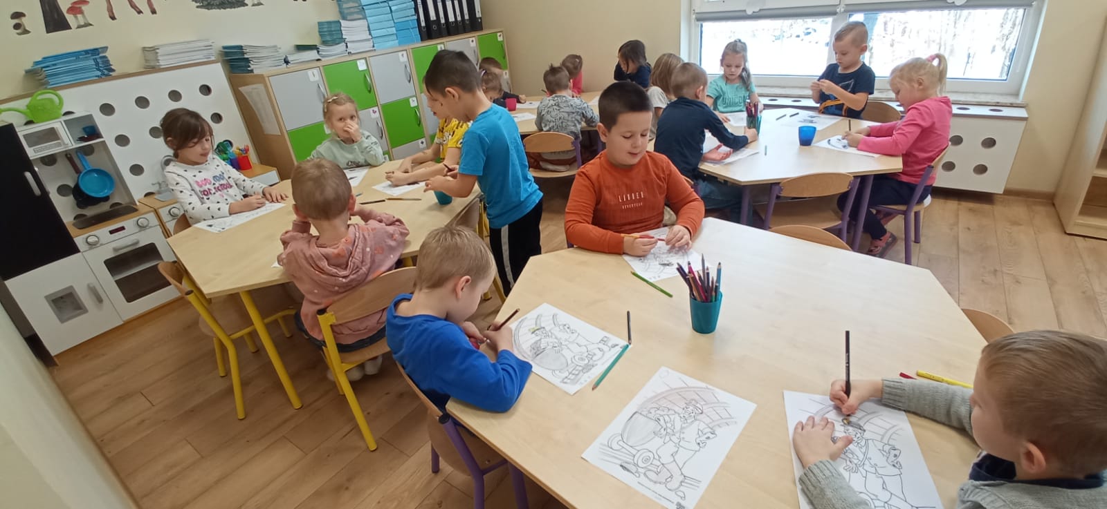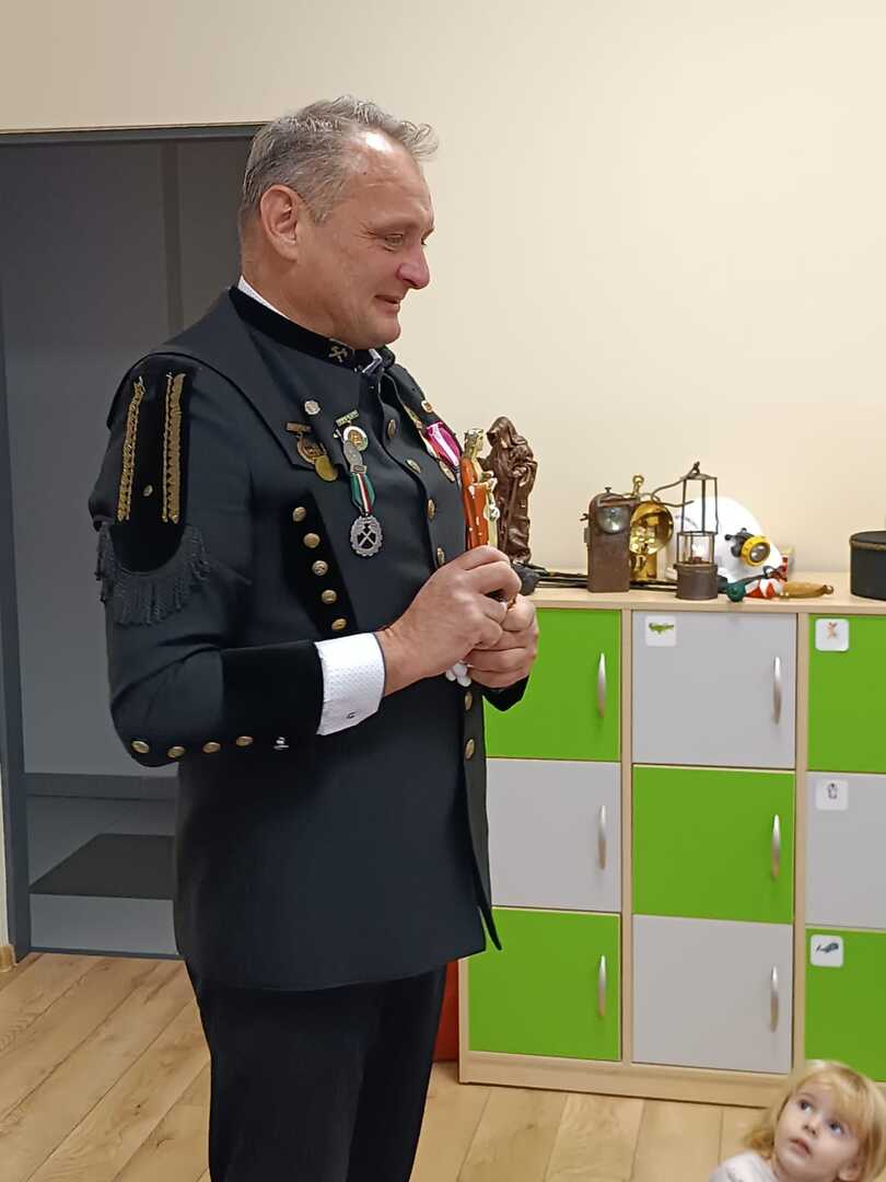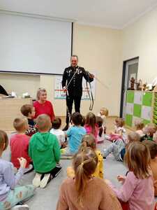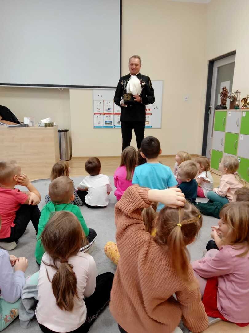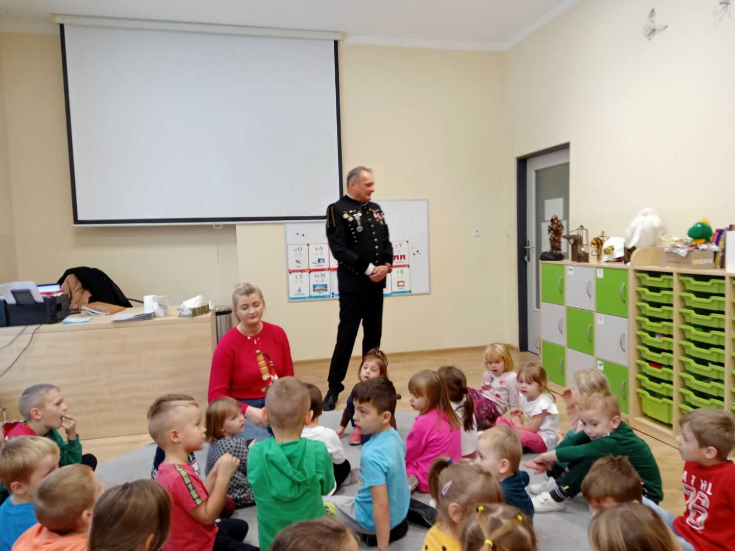 7 grudnia zaszczycił nas swoją obecnością górnik w stroju galowym. Podczas spotkania dzieci miały okazję wzbogacić swoje wiadomości na temat ciężkiej i czasami niebezpiecznej pracy górnika. Dowiedziały się, w jaki sposób wydobywany jest węgiel oraz jak bardzo jest nam potrzebny w codziennym życiu. Górnik przybył do nas w stroju galowym. Dlatego dzieci miały okazję przyjrzeć się z bliska mundurowi, czapce górniczej, odznaczeniom, które górnicy otrzymują za długoletnią, ciężką pracę w kopalni. Nasz gość wyjaśnił dzieciom, jakie znaczenie mają kolory pióropuszy na czapce i kto je nosi. Przedszkolaki chętnie i z zaciekawieniem wysłuchały opowieści. Miały również możliwość założenia czapki górniczej - czako oraz kasku. Na zakończenie dzieci i panie nauczycielki serdecznie podziękowały panu górnikowi za miłe spotkanie.