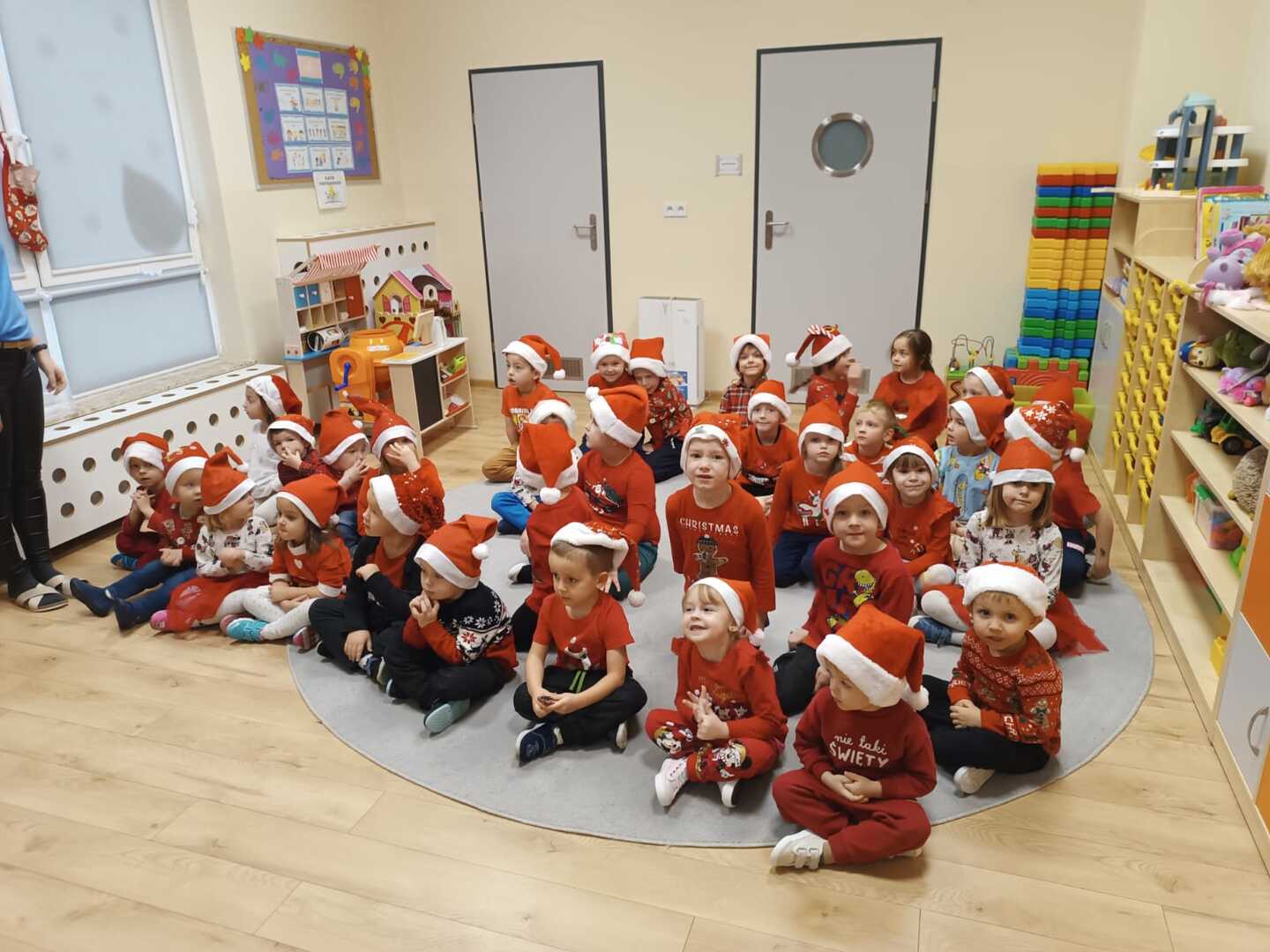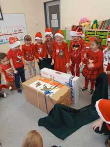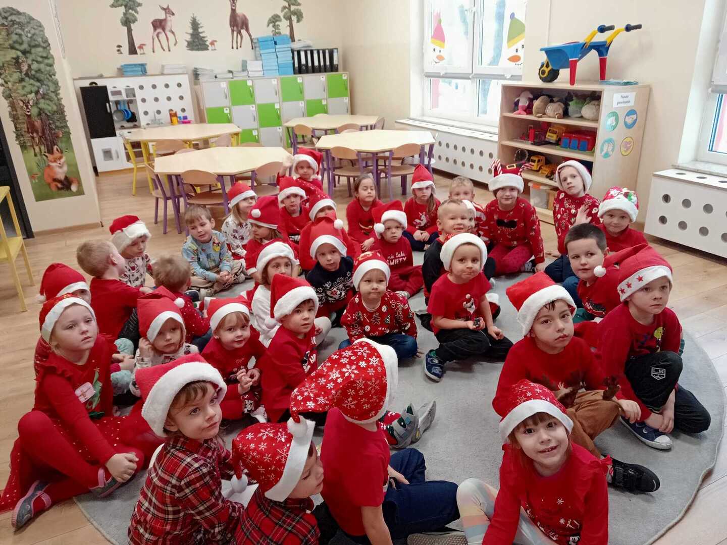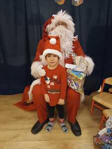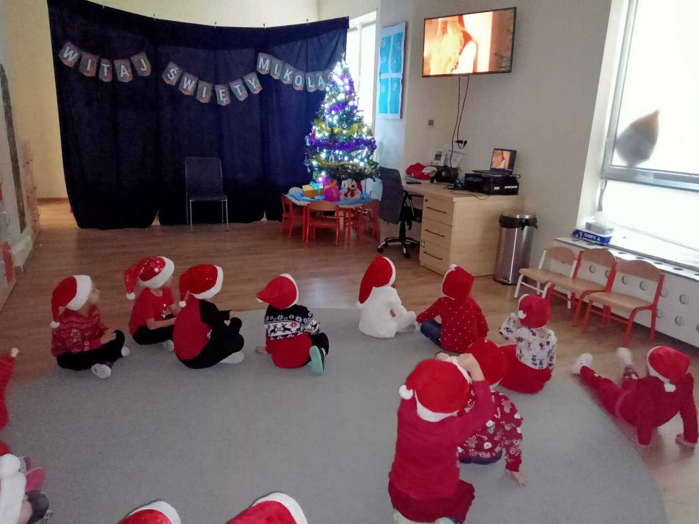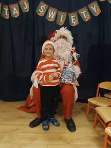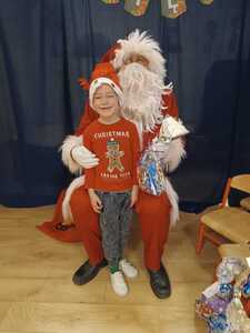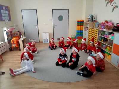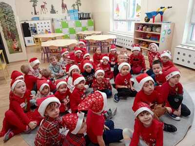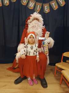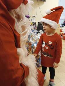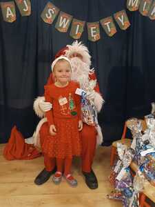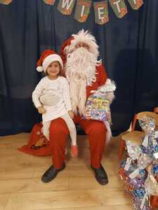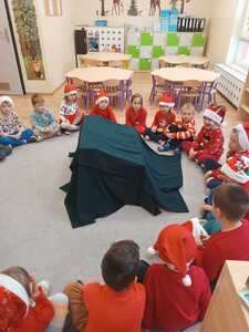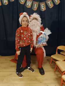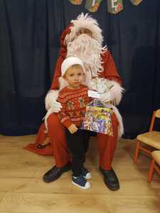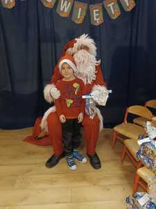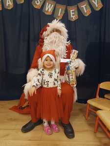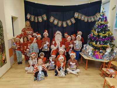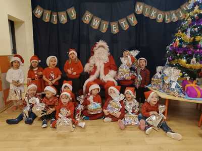 W środę 6 grudnia przedszkole w Rzuchowie odwiedził Święty Mikołaj. Dzieci z niecierpliwością wyczekiwały nadejścia tego dnia i specjalnie na tę okazję przygotowały krótki program artystyczny oraz włożyły mikołajkowe czapki. O godzinie 10.00 usłyszeliśmy dzwoneczki oraz zobaczyliśmy Świętego Mikołaja. Nasz gość z przyjemnością wysłuchał piosenek, wierszyków oraz chętnie odpowiadał na wszystkie nasze pytania. Na koniec Mikołaj podziękował za piękne powitanie, pochwalił wszystkie dzieci za to, że są grzeczne i w nagrodę wręczył im śliczne prezenty. Spotkanie ze św. Mikołajem upłynęło nam w radosnej atmosferze i z pewnością na długo pozostanie w naszej pamięci. Mamy nadzieję, że za rok znowu zawita do nas Święty Mikołaj!