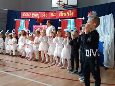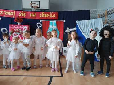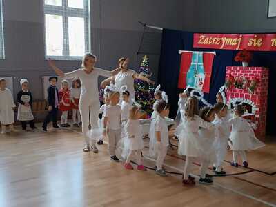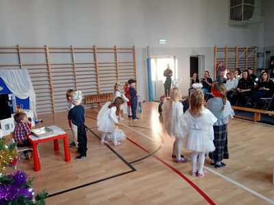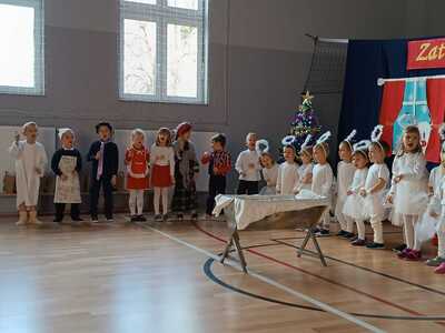 Okres świąt Bożego Narodzenia to czas pełen radości, piękna, magii i czarów. Czas spełniania marzeń i okazywania sobie wzajemnie miłości, dlatego też we wtorek 19.12.2023 r. r. odbyły się w naszym przedszkolu jasełka dla rodziców. Mali aktorzy odważnie grali swoje role, tańczyli, śpiewali kolędy i pastorałki, a ich popisy aktorskie publiczność nagrodziła dużymi brawami. W tym roku główną myślą naszego przedstawiania było: ,,Zatrzymaj się na chwilę". Myśl ta skłaniała do refleksji nad prawdziwym sensem świąt Bożego Narodzenia i nad tym co tak naprawdę jest w nich istotne a o czym często zapominamy. Po przedstawieniu przedszkolaki złożyły świąteczne życzenia naszym gościom oraz wręczyły im samodzielnie wykonane podarki. Następnie wychowawcy zaprosili wszystkich na poczęstunek. Spotkanie jasełkowe przebiegło w niezwykle miłej, ciepłej i radosnej atmosferze.