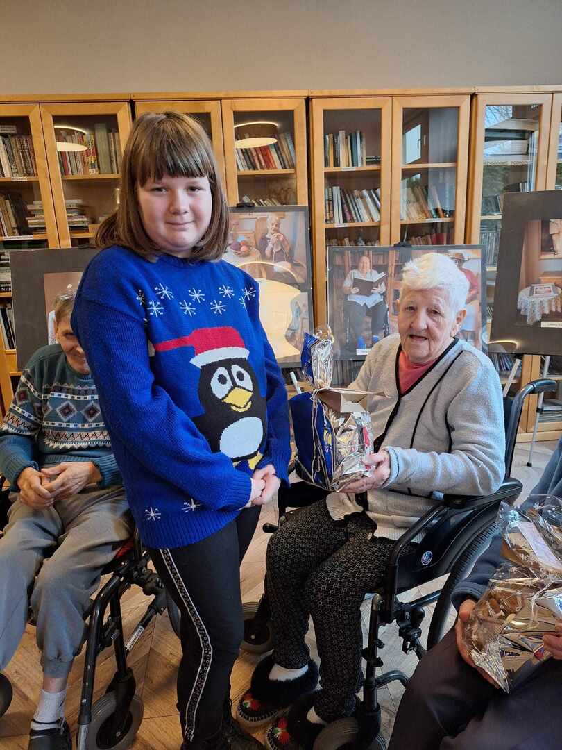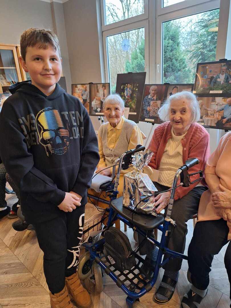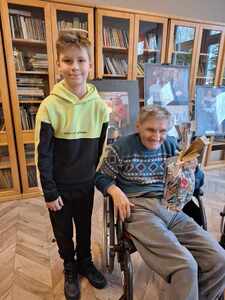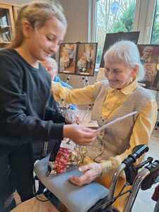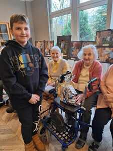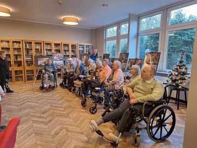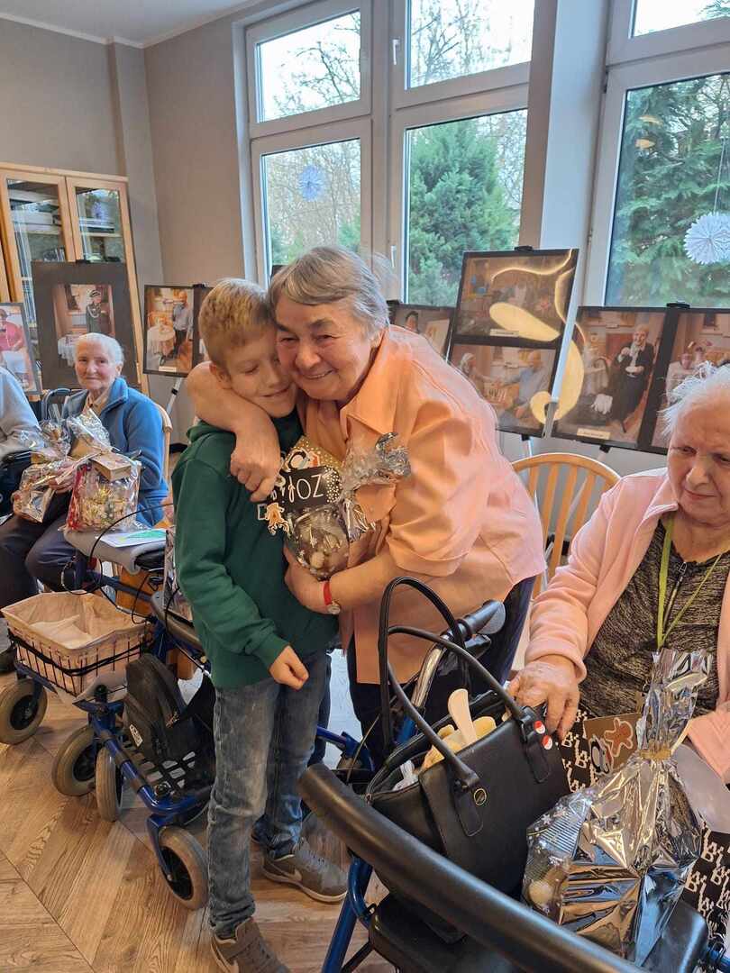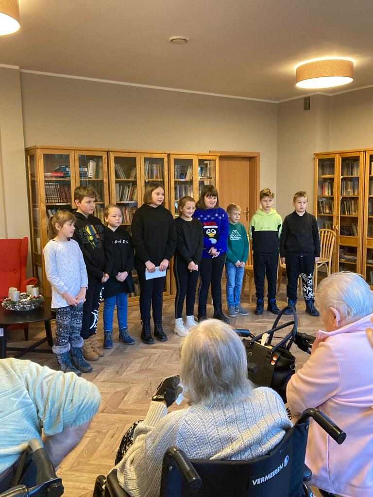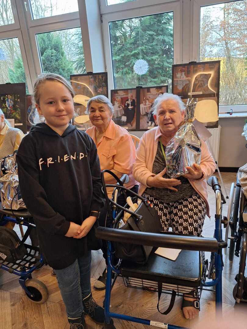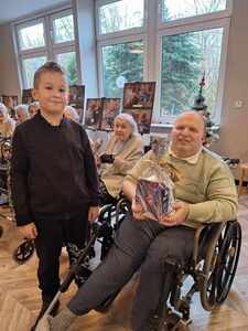 Tuż przed świętami klasa czwarta wybrała się do Domu Pomocy Społecznej "Złota Jesień" w Raciborzu. Na miejscu uczniowie zaprezentowali "koncert" kolęd. Mieszkańcy DPS-u otrzymali kartki bożonarodzeniowe z życzeniami. Dodatkowo pensjonariusze dzięki dobroci rodziców oraz uczniów dostali małą niespodziankę w postaci paczek. Ta wizyta uświadomiła dzieciom, że obok nas żyją seniorzy, którzy są samotni i każde odwiedziny są dla nich ważne. Zostaliśmy bardzo serdecznie przyjęci przez pracowników i mieszkańców za co serdecznie dziękujemy. Dla wszystkich, to spotkanie było bardzo wzruszające i emocjonalne. Zaraz po wyjściu z DPS-u uczniowie klasy czwartej zaczęli planować następne spotkanie. Taka forma wolontariatu to korzyść dla obu stron. Dziękujemy wszystkim, którzy przyczynili się do tego, by mieszkańcy DPS-u mogli przez moment zapomnieć o samotności.