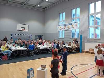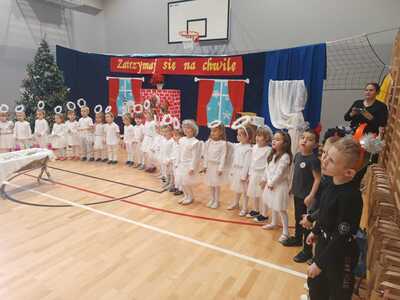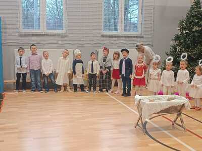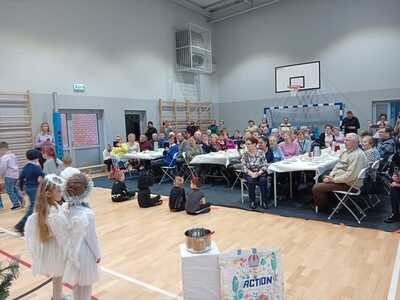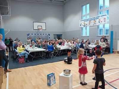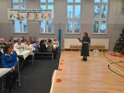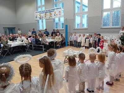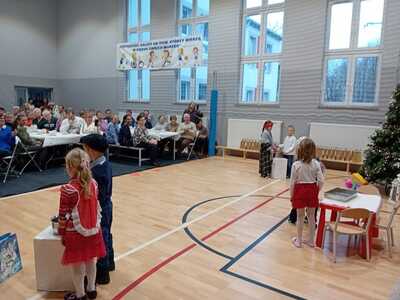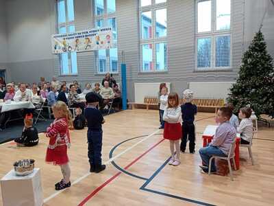 24 stycznia na sali gimnastycznej odbyła się uroczystość z okazji Dnia Babci i Dziadka. Dzieci z przedszkola miały okazję odwdzięczyć się swoim drogim babciom i dziadkom, a nawet prababciom i pradziadkom, którzy również zaszczycili nas swoją obecnością. Przedszkolaki zaprezentowały jasełka, recytowały wierszyk, śpiewały piosenki i tańczyły. Dziadkowie ze wzruszeniem nagradzali występy swoich wnucząt gromkimi brawami. Po części artystycznej każde dziecko ucałowało swoich dziadków oraz wręczało im samodzielnie wykonane podarunki. Nie zabrakło też poczęstunku, o który zadbali rodzice. Dzień Babci i Dziadka upłynął nam w miłej i ciepłej atmosferze. Ponadto wspólne świętowanie było okazją dla naszych przedszkolaków do pogłębienia więzi rodzinnych oraz kształtowania szacunku do osób starszych.