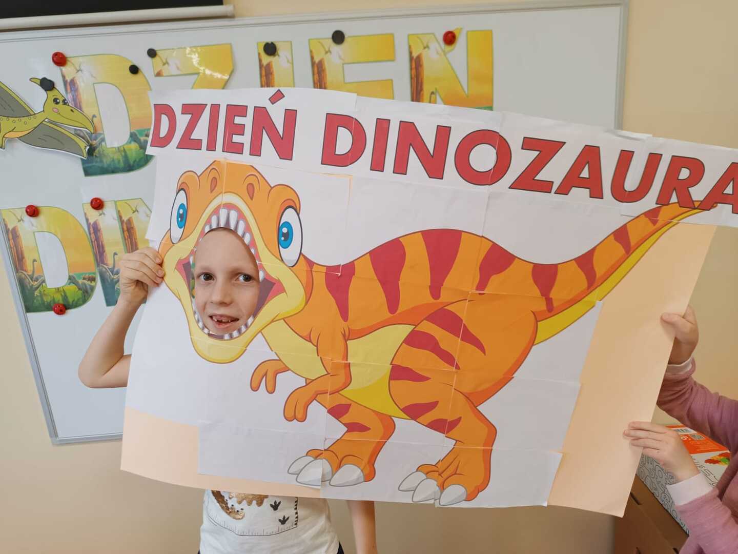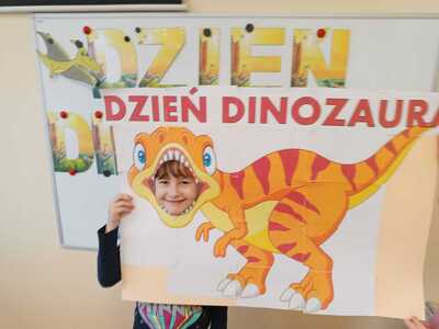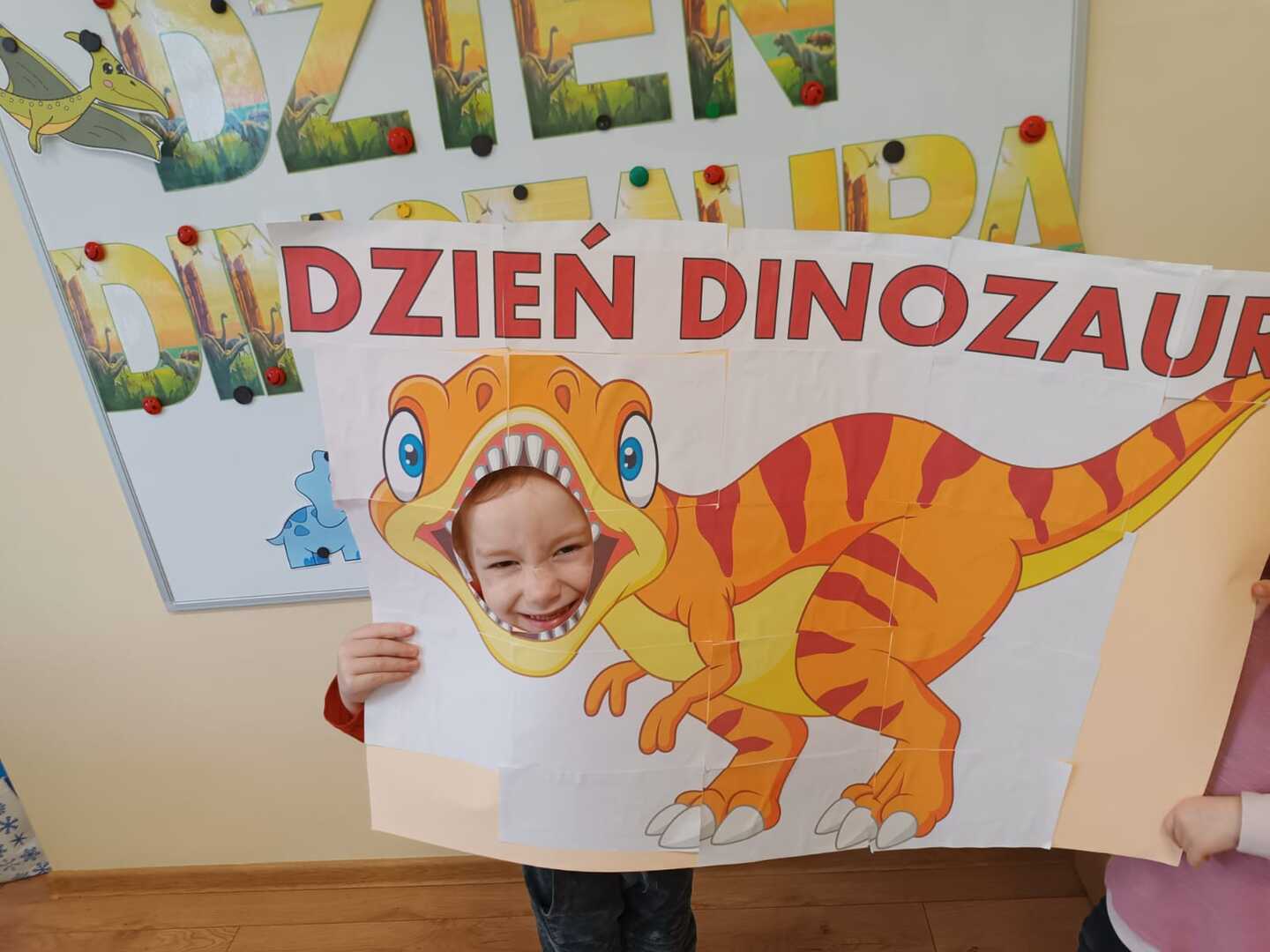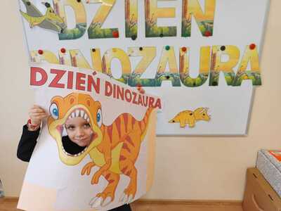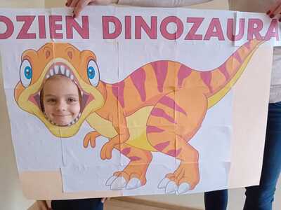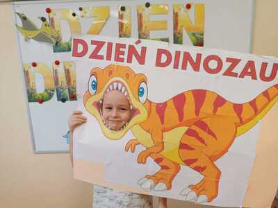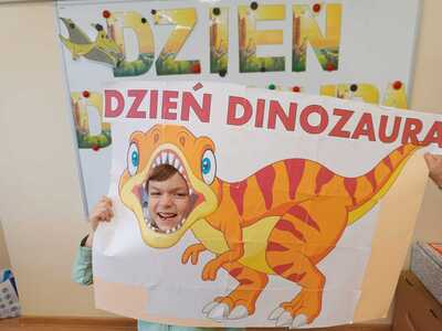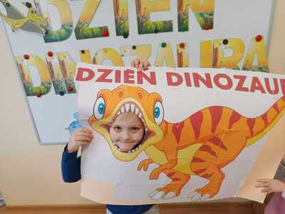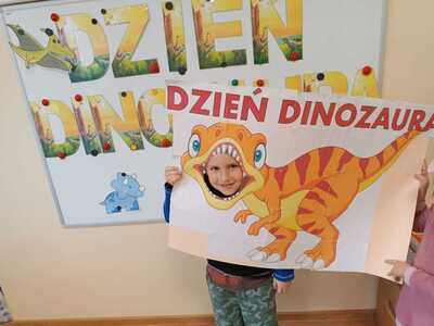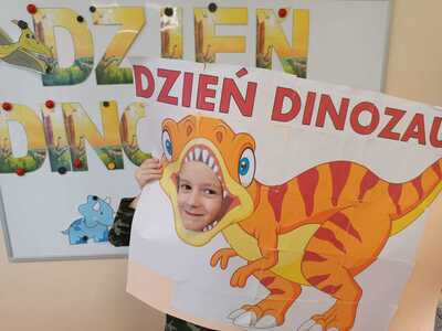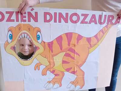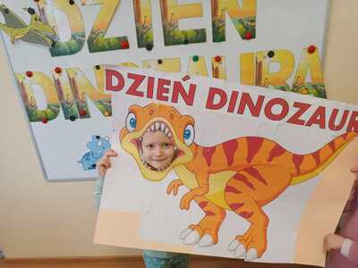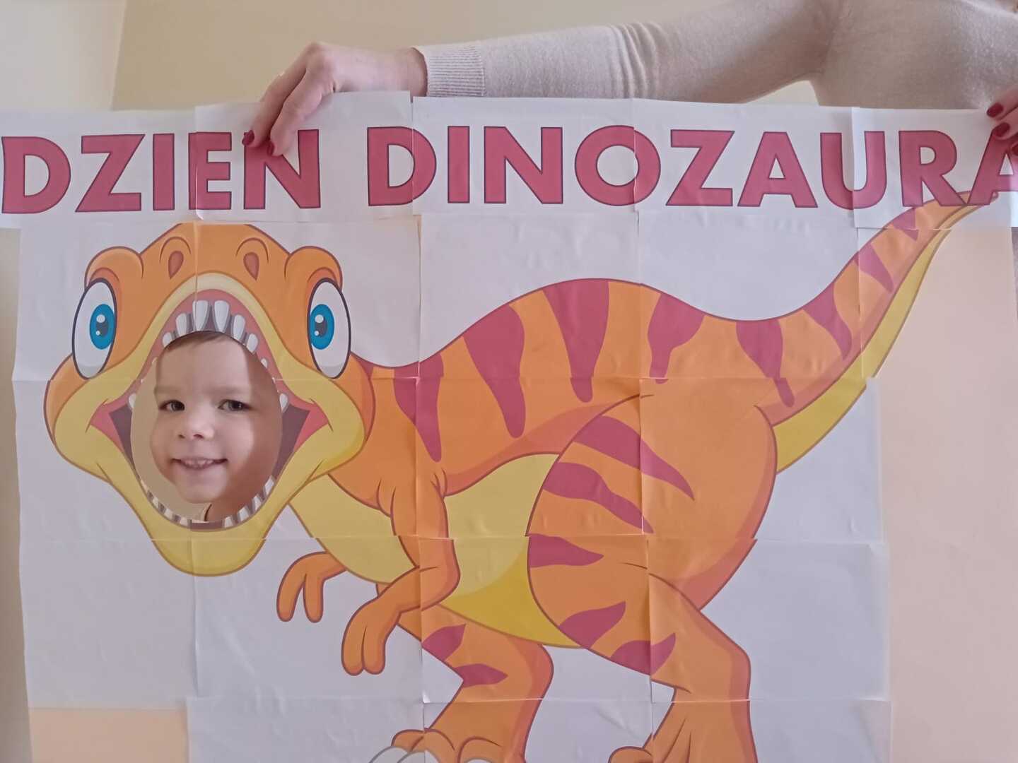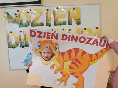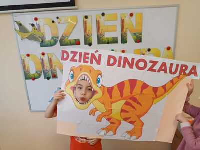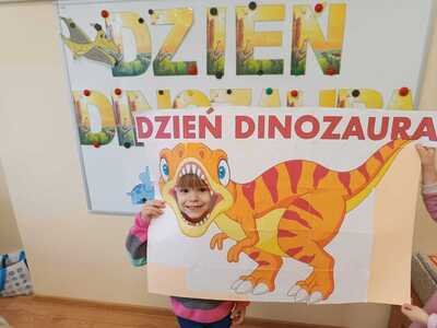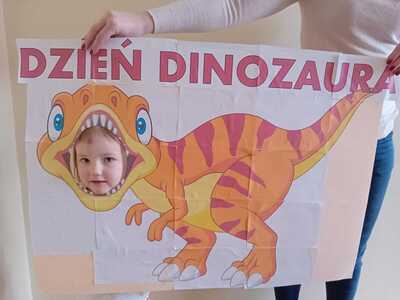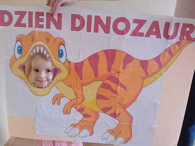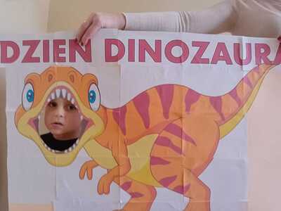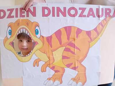 19 lutego dzieci z naszego przedszkola obchodziły Dzień Dinozaura. Przedszkolaki „cofnęły” się w czasie przechodząc przez magiczną bramę do ery dinozaurów. Z tej okazji zobaczyły ciekawą prezentację oraz poznały kilka ciekawostek na temat tych dawnych stworzeń. Ponadto bawiły się w archeologów odkopując za pomocą pędzelków szkielet dinozaura. Odgadywały zagadki, brały udział w zabawach matematycznych oraz ruchowo-naśladowczych, układały puzzle oraz dinozaurowe memory. Podczas zajęć utrwaliły pojęcia z orientacji przestrzennej, wygląd dinozaura, kolory. Niewątpliwą atrakcją była dla dzieci możliwość zrobienia sobie zdjęcia w fotobudce oraz wykonanie ciekawych prac plastycznych np. T-Rexa z balona. Z pewnością były to dla przedszkolaków ciekawe zajęcia mające na celu poznanie przez nich czasów prehistorii.