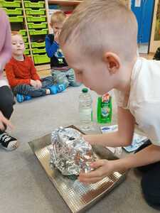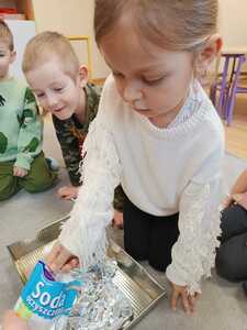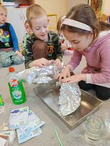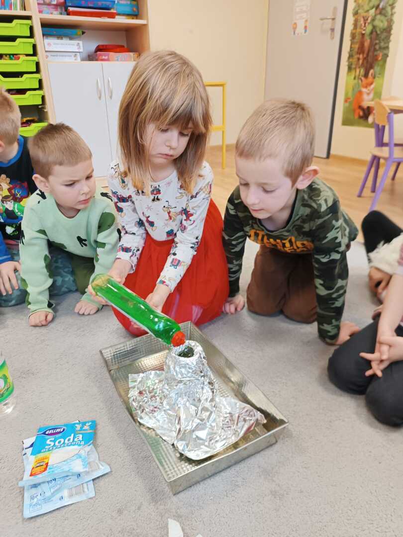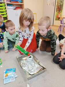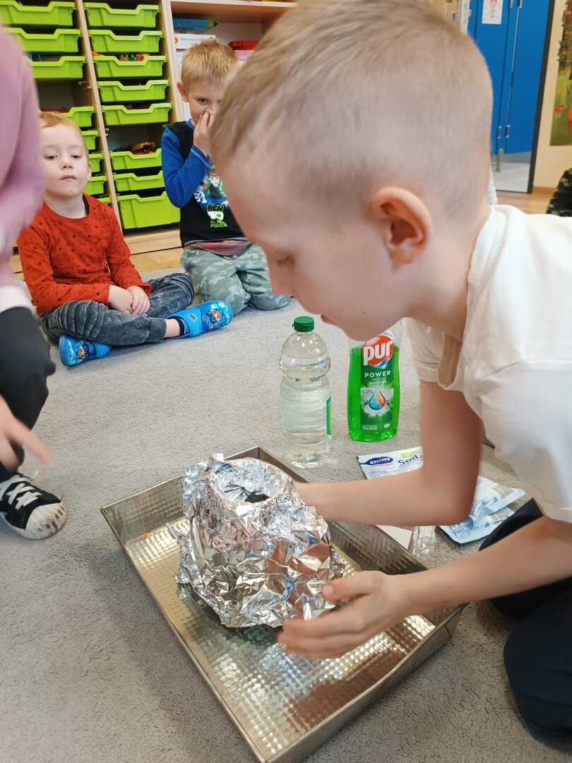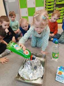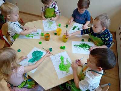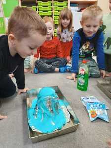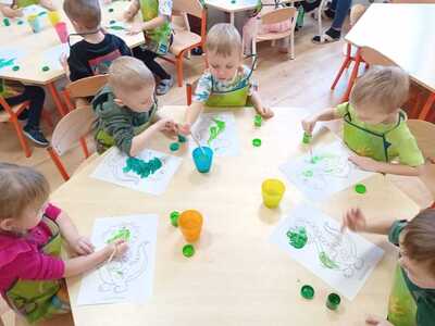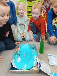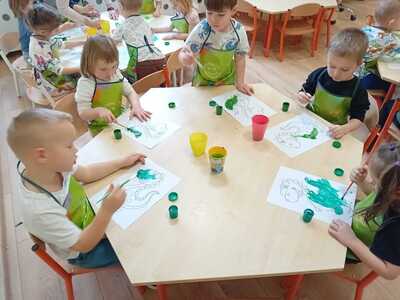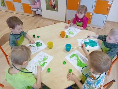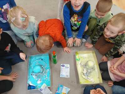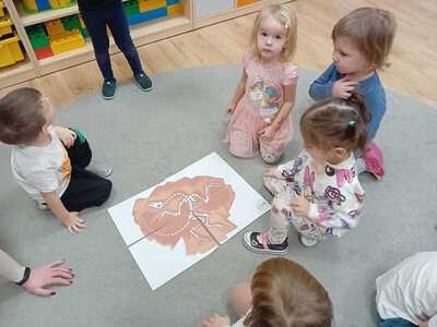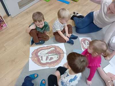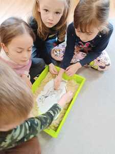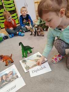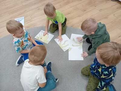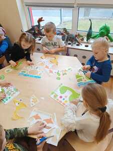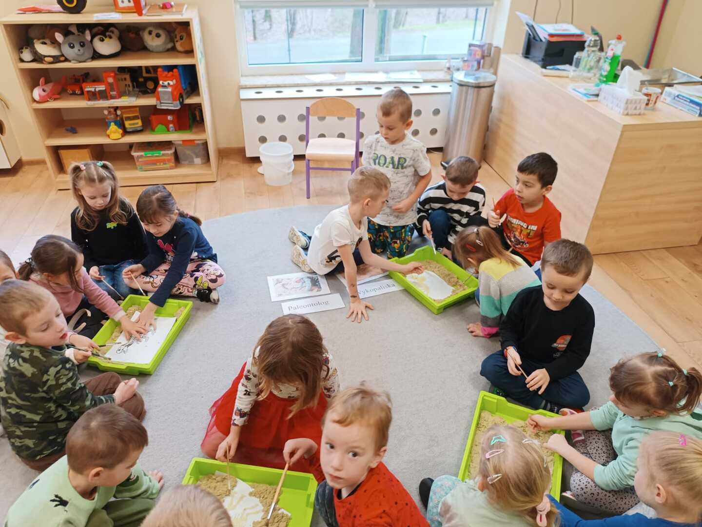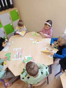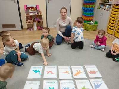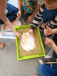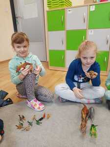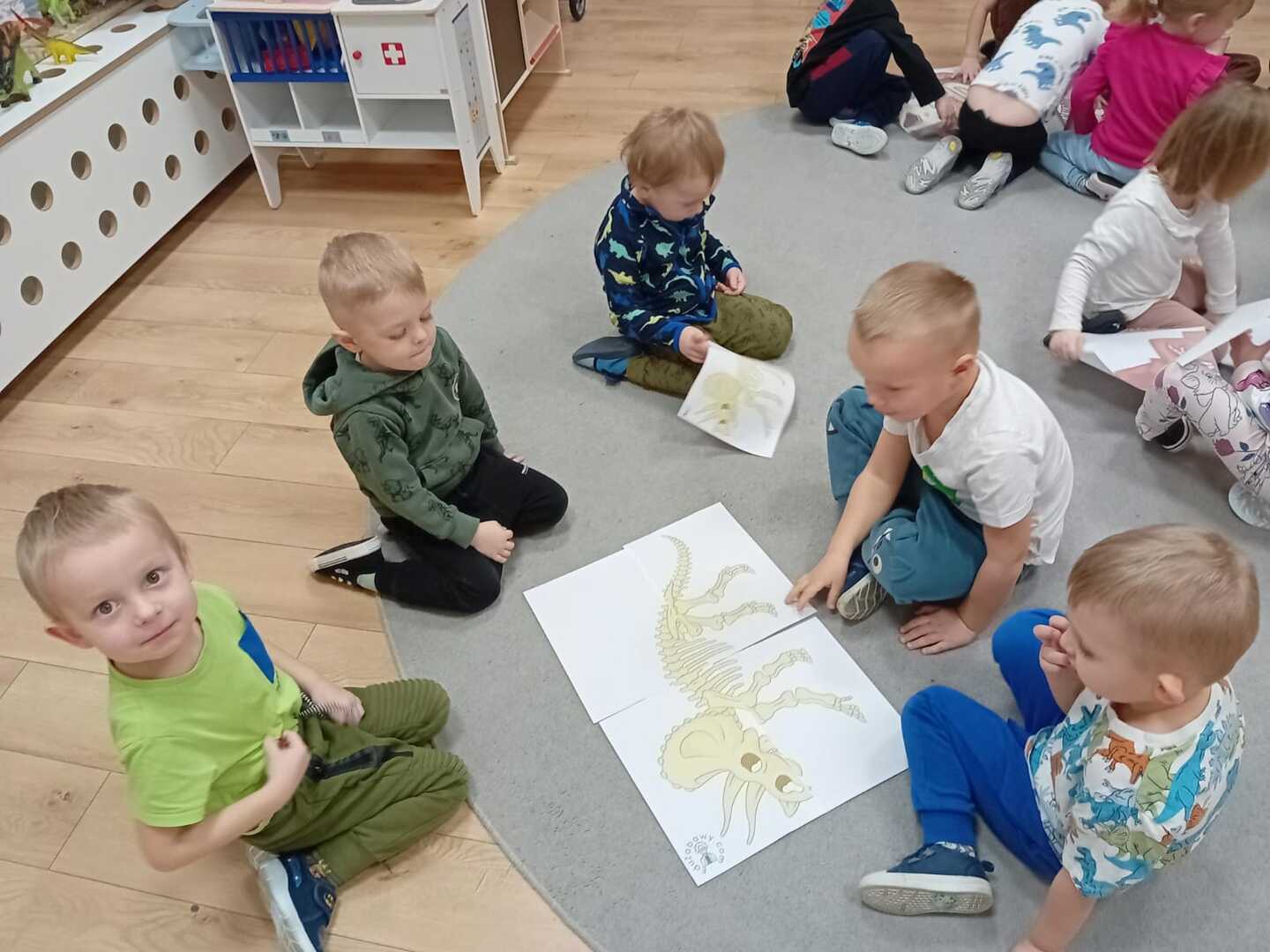 19 lutego dzieci z naszego przedszkola obchodziły Dzień Dinozaura. Przedszkolaki „cofnęły” się w czasie przechodząc przez magiczną bramę do ery dinozaurów. Z tej okazji zobaczyły ciekawą prezentację oraz poznały kilka ciekawostek na temat tych dawnych stworzeń. Ponadto bawiły się w archeologów odkopując za pomocą pędzelków szkielet dinozaura. Odgadywały zagadki, brały udział w zabawach matematycznych oraz ruchowo-naśladowczych, układały puzzle oraz dinozaurowe memory. Podczas zajęć utrwaliły pojęcia z orientacji przestrzennej, wygląd dinozaura, kolory. Niewątpliwą atrakcją była dla dzieci możliwość zrobienia sobie zdjęcia w fotobudce oraz wykonanie ciekawych prac plastycznych np. T-Rexa z balona. Z pewnością były to dla przedszkolaków ciekawe zajęcia mające na celu poznanie przez nich czasów prehistorii.