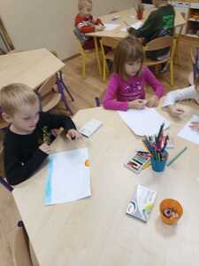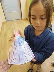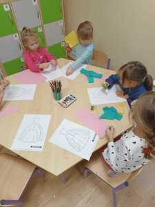 I moduł „KREATYWNOŚĆ” – na podstawie utworu „Kopciuszek”. Podjęte zadania rozbudzały u dzieci wiarę we własne możliwości oraz motywowały do kreatywnych działań. Podczas realizacji tego modułu dzieci w odniesieniu do utworu omawiały postawy bohaterów, projektowały strój dla Kopciuszka, wyrażały swoje emocje w pracach plastycznych.