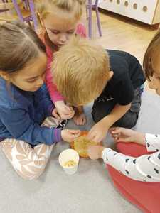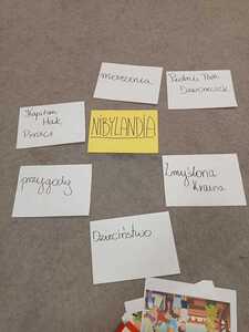 Dzieci przez cały tydzień pokonując różne zadania docierały do kolejnej stacji przybliżających je do Krainy Magii Słów. Stacje: Wierszykowo, Dla każdego coś miłego, Trzy magiczne słowa, Medale wdzięczności pokazywały jak pracować w grupie, jak ważne jest to co mówimy do innych,. Wykonały wspólnie Drzewo pięknych słów oraz medale wdzięczności dla kolegi lub koleżanki. W tej części podjęte działania miały na celu pobudzić dzieci do przemyśleń, czy słowa mają moc oraz jakie są pozytywne i negatywne wpływy wypowiedzianych słów. Przez cały tydzień poznawały kolejne przygody drewnianego chłopca, który chciał zostać prawdziwym chłopcem. Dzieci doskonale wyłapywały w bajce złe i dobre słowa i uczynki głównych bohaterów, określały prawdziwość zdań dotyczących treści utworu, i zabawy ruchowo – muzyczne oraz konstrukcyjne.