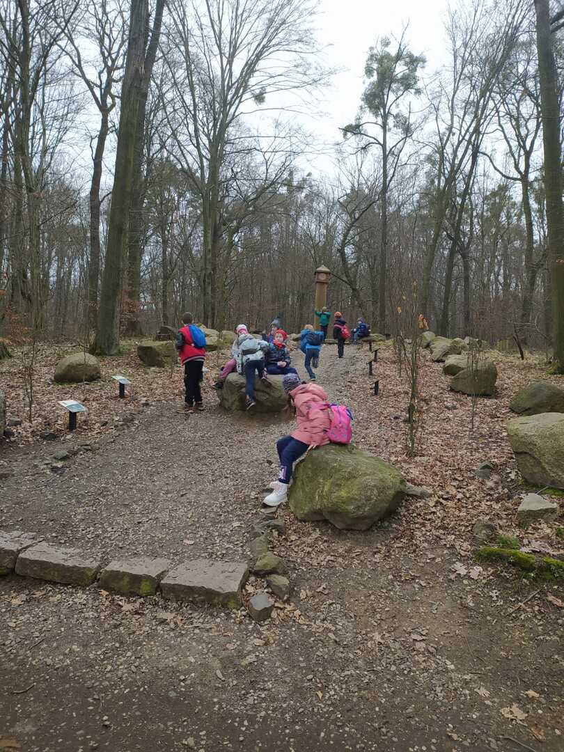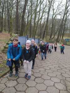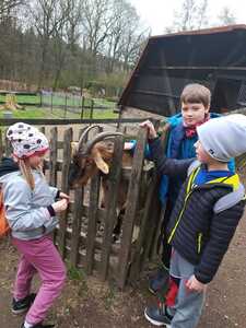 Drugim punktem programu była wędrówka po Arboretum Bramy Morawskiej, odwiedziliśmy mini zoo, dokarmialiśmy kozy i podziwialiśmy pozostałe zwierzęta oraz pierwsze rośliny (krokusy i zawilce gajowe). Dzieci uczyły się jak chronić przyrodę i o nią dbać. W czasie wędrówki zobaczyliśmy także ropuchę. Wspaniałą zabawą w labiryncie zakończyliśmy naszą wycieczkę i autobusem wróciliśmy do szkoły.