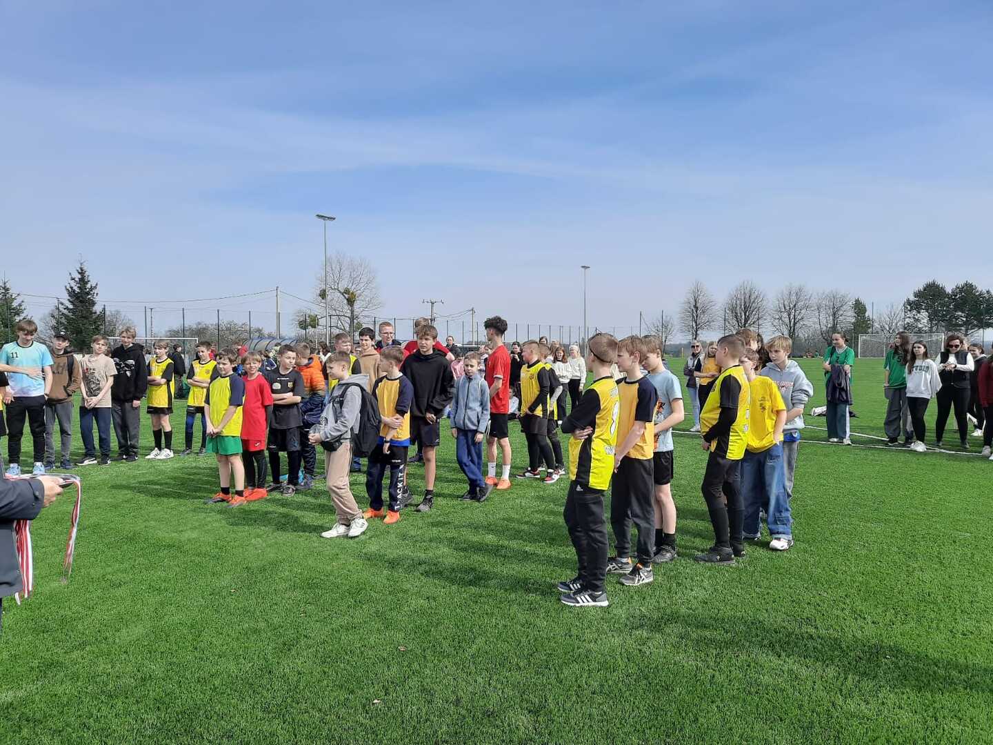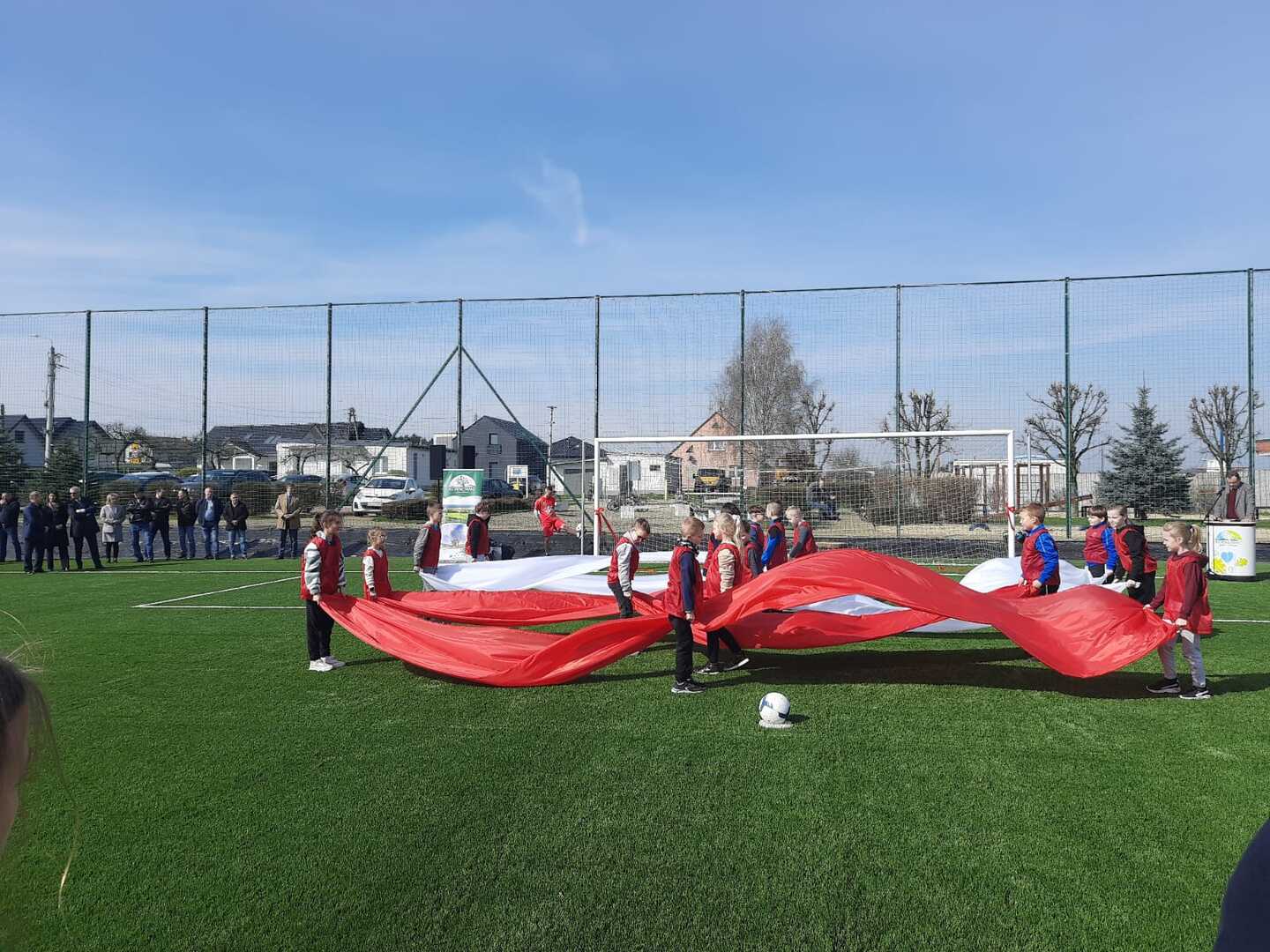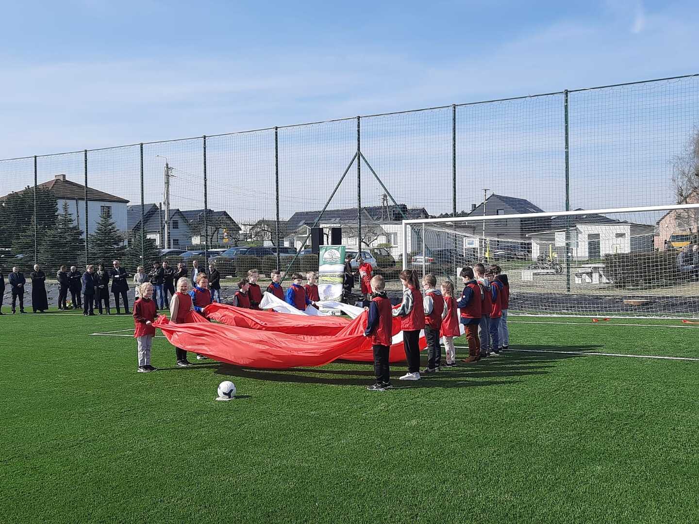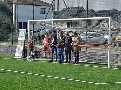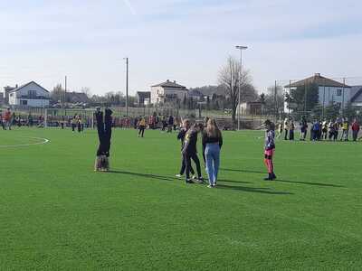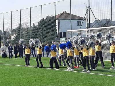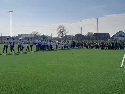 Jest to pierwsze boisko do piłki nożnej ze sztuczną trawą w powiecie raciborskim. 21 marca klasy IV-VII naszej szkoły uczestniczyły w ceremonii otwarcia, którą rozpoczęto odśpiewaniem hymnu państwowego. Następnie w części oficjalnej dowiedzieliśmy się o przebiegu działań związanych z powstaniem boiska realizowanych w ramach Rządowego Programu Polski Ład. Wspólne przecięcie wstęgi przez Pana Wójta, przedstawicieli Polskiego Związku Piłki Nożnej oraz władz województwa i powiatu uroczyście otwarło obiekt dla mieszkańców. W części artystycznej młodzież zaprezentowała ciekawe układy taneczne oraz odbył się pokaz sportowy Mistrza Świata we Feestyle Football Pawła Skóry. Po oficjalnym otwarciu młodzież mogła uczestniczyć w zajęciach sportowych na boisku: spróbować freestyle'owych sztuczek z piłką pod kierunkiem mistrza, postrzelać do bramki czy zagrać w turnieju piłkarskim lub po prostu posiedzieć, odpocząć i pokibicować innym. Dla wszystkich gości przygotowany był smaczny poczęstunek i napoje. Dzień ten był wspaniałą okazją do międzyszkolnej integracji oraz promowania zdrowego, aktywnego stylu życia a nowe boisko daje możliwość rozwijania pasji sportowych i szkolenia przyszłych mistrzów piłki nożnej.