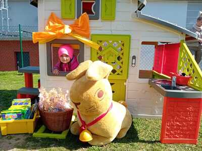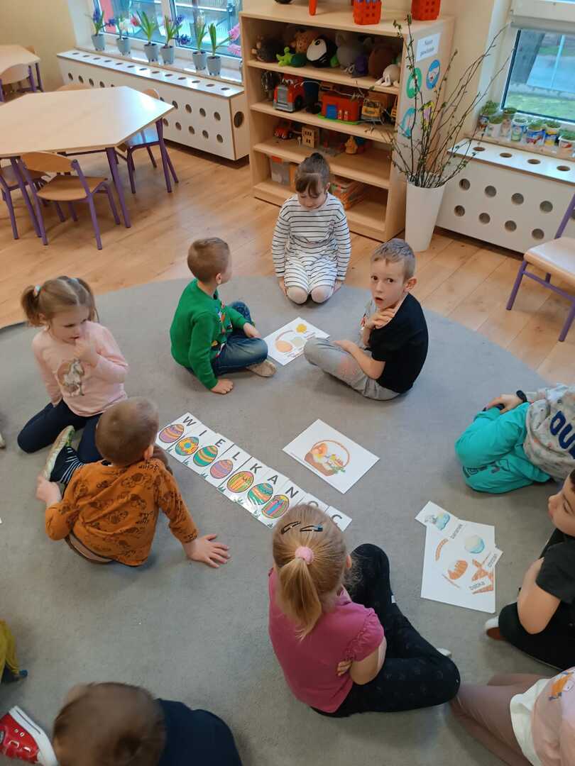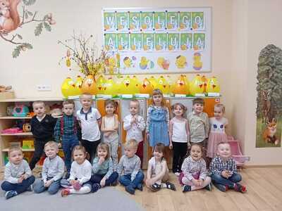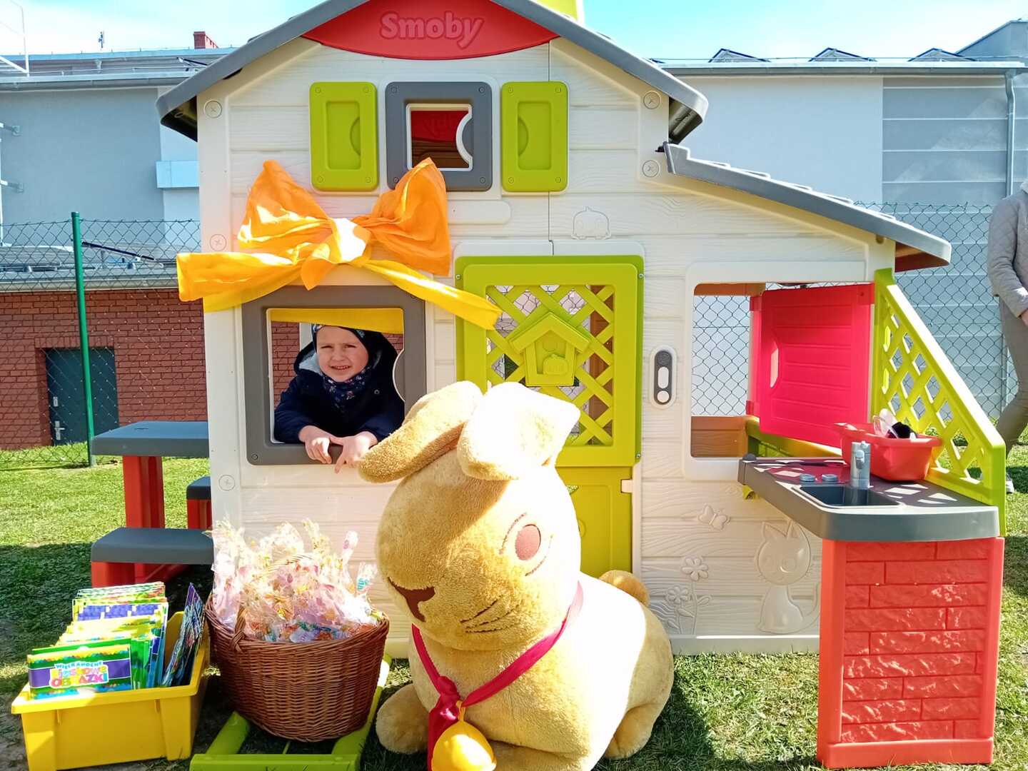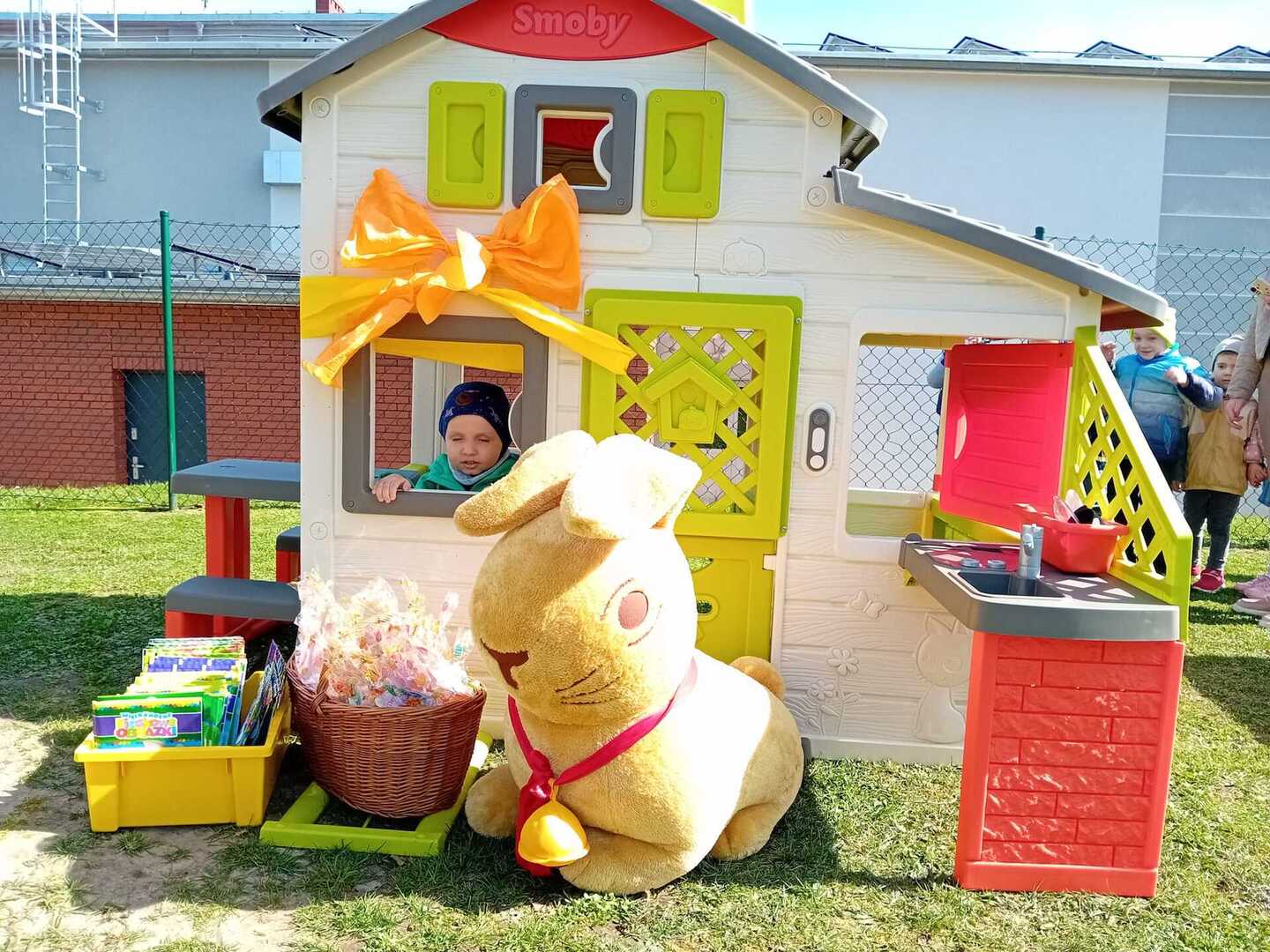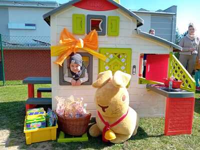 Już od kilku dni w przedszkolu w Rzuchowie odczuwało się atmosferę zbliżających się Świąt Wielkanocnych. Przedszkolaki bowiem malowały i wyklejały kolorowe pisanki, robiły kurczaczki i baranki oraz siały rzeżuchę. Uczyły się także wierszyków i piosenek o tematyce wielkanocnej oraz uczestniczyły w zabawach związanych ze świętami. Ponadto brały aktywny udział w przygotowaniu uroczystego śniadania wielkanocnego, które odbyło się w środę 27.03.2024 r. W tym dniu od samego rana w naszym przedszkolu panował świąteczny nastrój. Wszyscy zasiedliśmy do pięknie przystrojonych stołów na których nie zabrakło tradycyjnych potraw świątecznych, dzieliliśmy się jajkiem oraz składaliśmy sobie życzenia. Następnie wybraliśmy się do ogrodu przedszkolnego na poszukiwania prezentów ukrytych przez wielkanocnego zajączka. Trzeba przyznać, że zajączek koszyk ze słodyczami bardzo dobrze schował, ale dzieci po dłuższej chwili odnalazły go na placu zabaw wraz z dużym plastikowym domkiem, który zakupiła rada rodziców z pieniędzy zebranych podczas kiermaszu świątecznego. Te poszukiwania sprawiły wszystkim wiele radości. Cały czas oczekiwania i świątecznych przygotowań upłynął nam wszystkim w miłej i radosnej atmosferze.