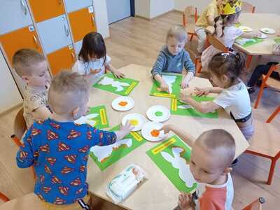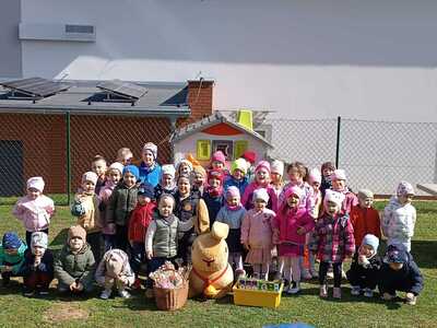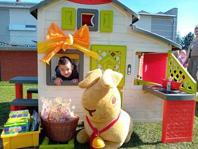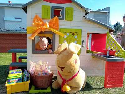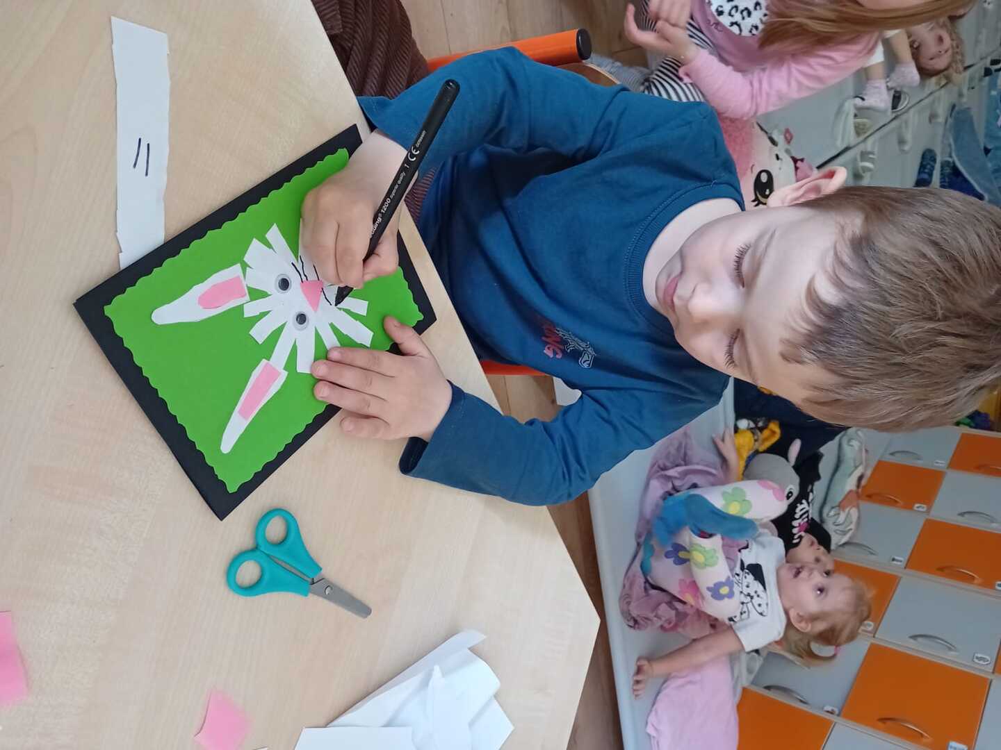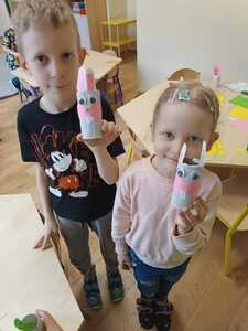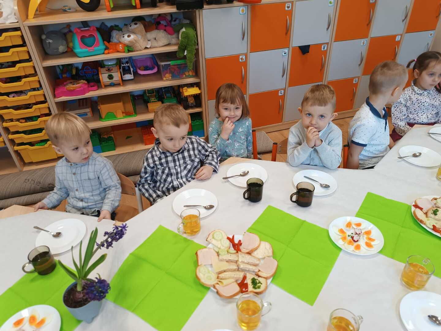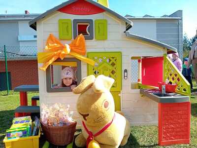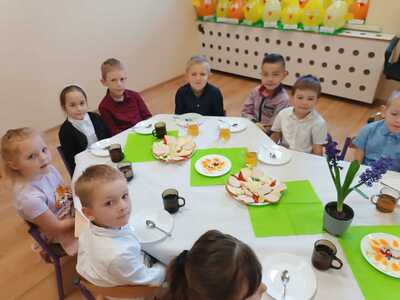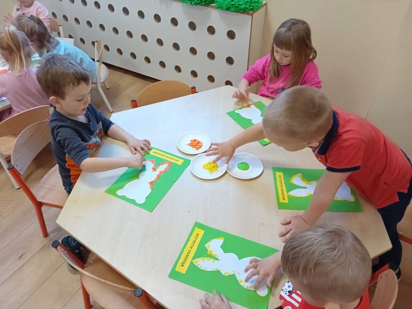 Już od kilku dni w przedszkolu w Rzuchowie odczuwało się atmosferę zbliżających się Świąt Wielkanocnych. Przedszkolaki bowiem malowały i wyklejały kolorowe pisanki, robiły kurczaczki i baranki oraz siały rzeżuchę. Uczyły się także wierszyków i piosenek o tematyce wielkanocnej oraz uczestniczyły w zabawach związanych ze świętami. Ponadto brały aktywny udział w przygotowaniu uroczystego śniadania wielkanocnego, które odbyło się w środę 27.03.2024 r. W tym dniu od samego rana w naszym przedszkolu panował świąteczny nastrój. Wszyscy zasiedliśmy do pięknie przystrojonych stołów na których nie zabrakło tradycyjnych potraw świątecznych, dzieliliśmy się jajkiem oraz składaliśmy sobie życzenia. Następnie wybraliśmy się do ogrodu przedszkolnego na poszukiwania prezentów ukrytych przez wielkanocnego zajączka. Trzeba przyznać, że zajączek koszyk ze słodyczami bardzo dobrze schował, ale dzieci po dłuższej chwili odnalazły go na placu zabaw wraz z dużym plastikowym domkiem, który zakupiła rada rodziców z pieniędzy zebranych podczas kiermaszu świątecznego. Te poszukiwania sprawiły wszystkim wiele radości. Cały czas oczekiwania i świątecznych przygotowań upłynął nam wszystkim w miłej i radosnej atmosferze.