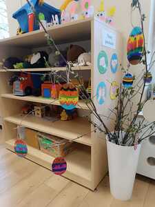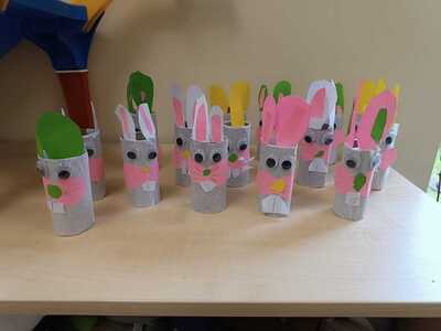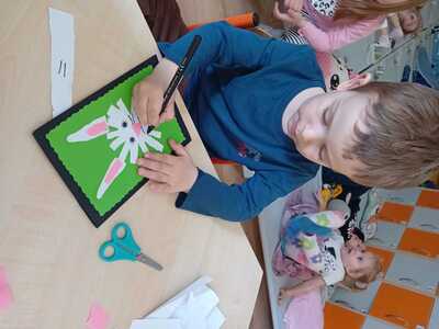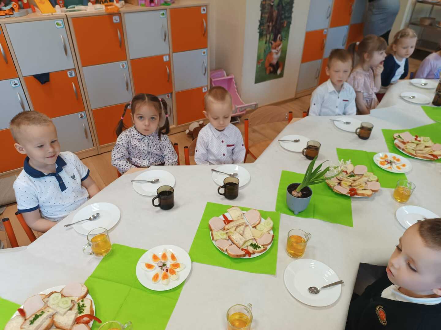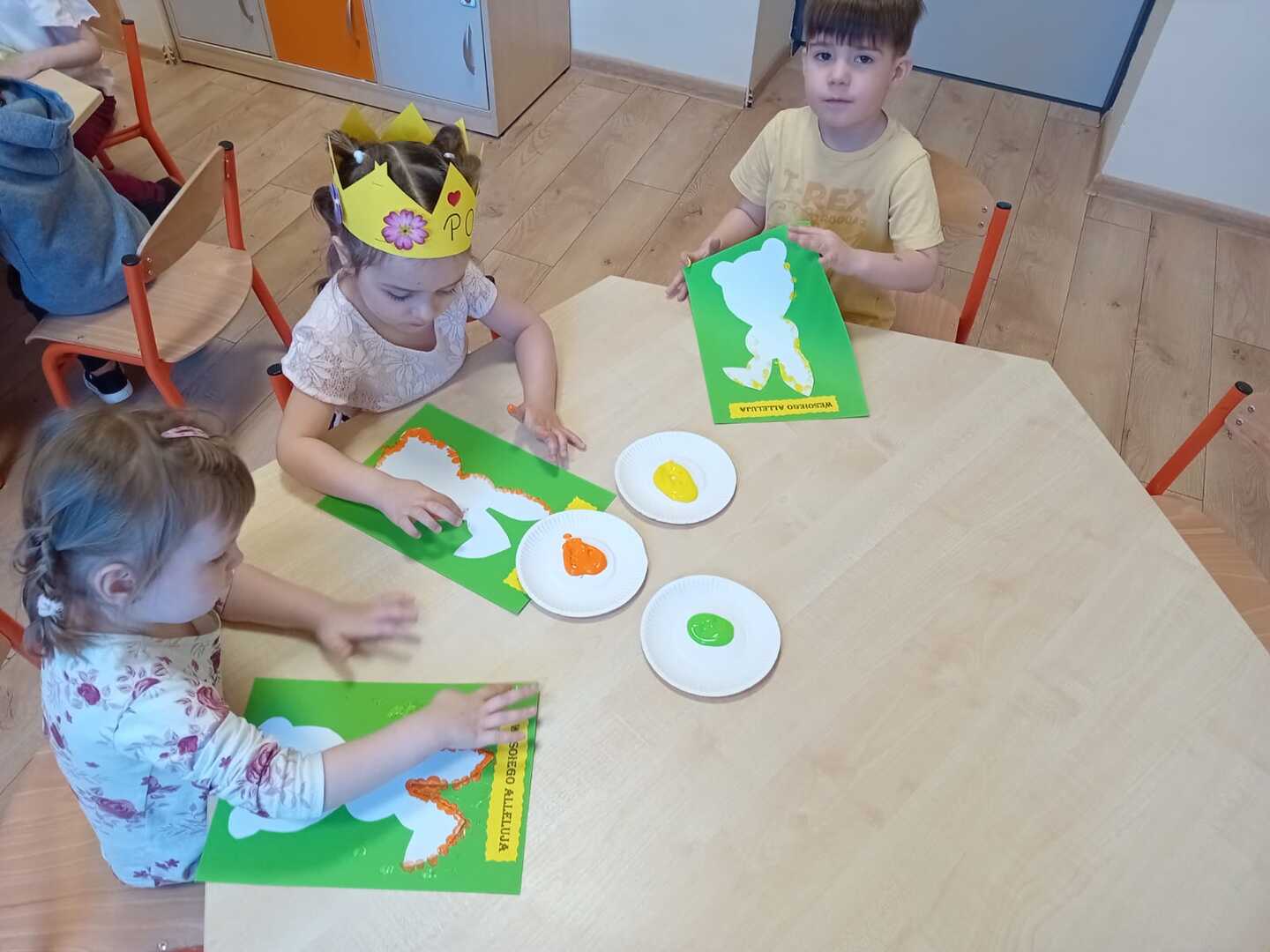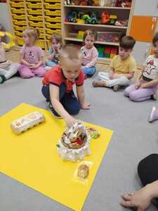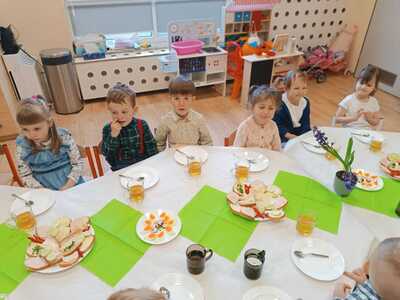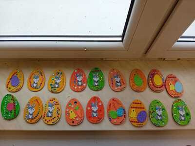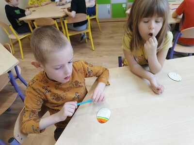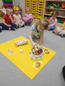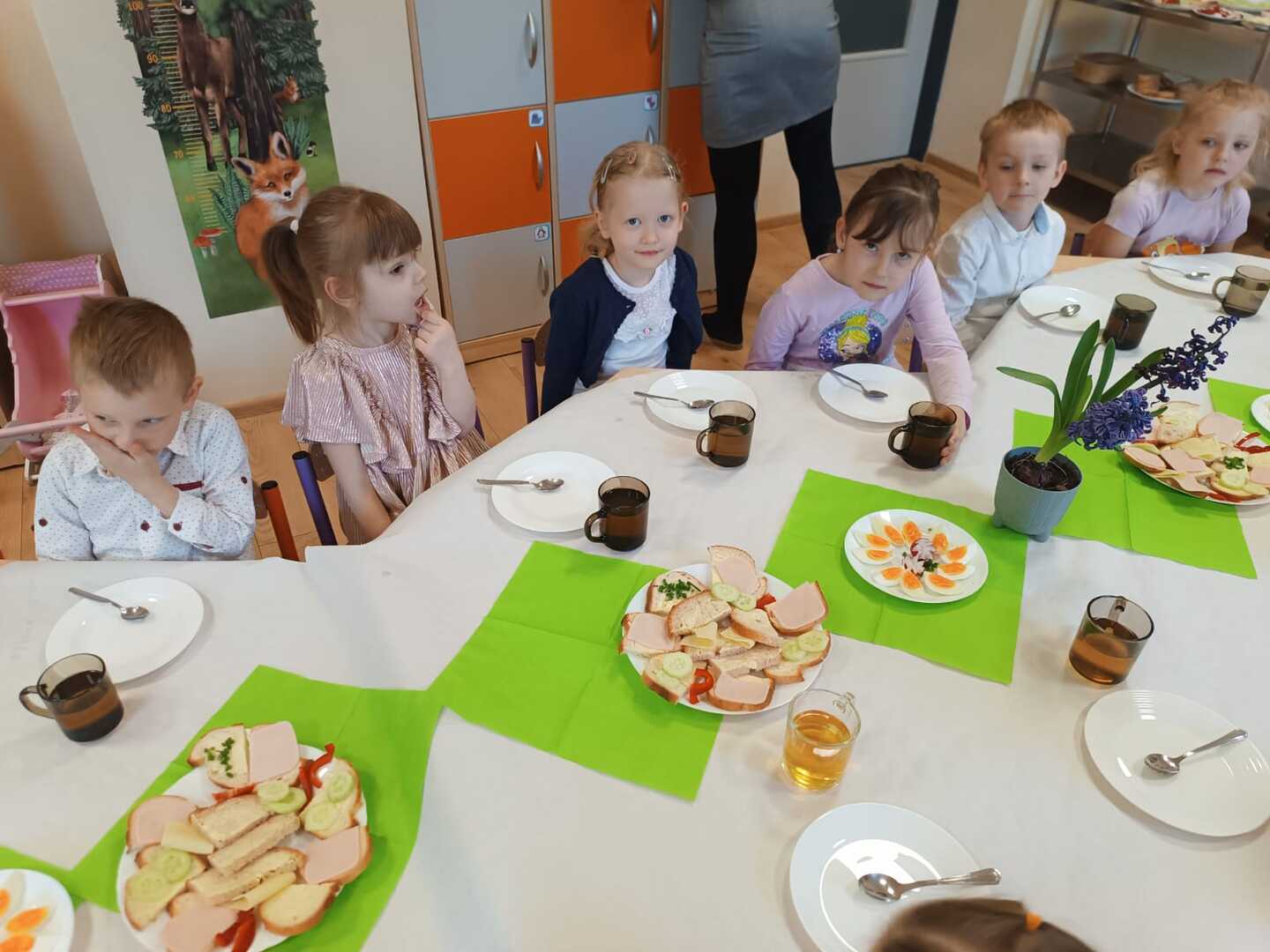 Już od kilku dni w przedszkolu w Rzuchowie odczuwało się atmosferę zbliżających się Świąt Wielkanocnych. Przedszkolaki bowiem malowały i wyklejały kolorowe pisanki, robiły kurczaczki i baranki oraz siały rzeżuchę. Uczyły się także wierszyków i piosenek o tematyce wielkanocnej oraz uczestniczyły w zabawach związanych ze świętami. Ponadto brały aktywny udział w przygotowaniu uroczystego śniadania wielkanocnego, które odbyło się w środę 27.03.2024 r. W tym dniu od samego rana w naszym przedszkolu panował świąteczny nastrój. Wszyscy zasiedliśmy do pięknie przystrojonych stołów na których nie zabrakło tradycyjnych potraw świątecznych, dzieliliśmy się jajkiem oraz składaliśmy sobie życzenia. Następnie wybraliśmy się do ogrodu przedszkolnego na poszukiwania prezentów ukrytych przez wielkanocnego zajączka. Trzeba przyznać, że zajączek koszyk ze słodyczami bardzo dobrze schował, ale dzieci po dłuższej chwili odnalazły go na placu zabaw wraz z dużym plastikowym domkiem, który zakupiła rada rodziców z pieniędzy zebranych podczas kiermaszu świątecznego. Te poszukiwania sprawiły wszystkim wiele radości. Cały czas oczekiwania i świątecznych przygotowań upłynął nam wszystkim w miłej i radosnej atmosferze.