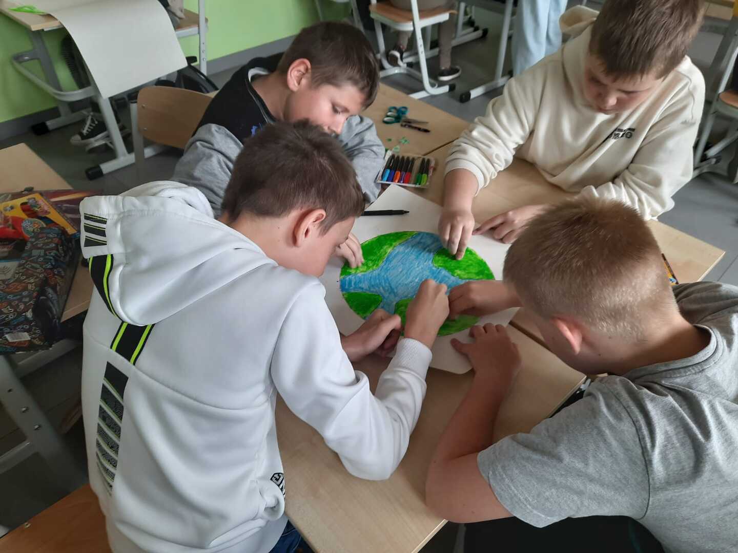 Klasy IV-VII wzięły udział w różnorodnych działaniach ekologicznych. W ramach zajęć dzieci przygotowały plakaty i hasła o tematyce ekologicznej. Poszerzały swoją wiedzę o zagrożeniach planety i sposobach zapobiegania im oglądając filmy oraz grając w gry i quizy dotyczące ochrony środowiska. Uczniowie sprzątali też teren obok szkoły ucząc się segregowania odpadów. Wszystkie te aktywności były po to aby pokazać jak ważne jest dbanie o naszą planetę. Dzieci chętnie wykonywały zadania, wykazywały się kreatywnością i zaangażowaniem. Niech hasło tego dnia „Mniejszy ślad – lepszy świat” przypomina nam każdego dnia aby nie zostawić w przyrodzie niszczących ją śladów.