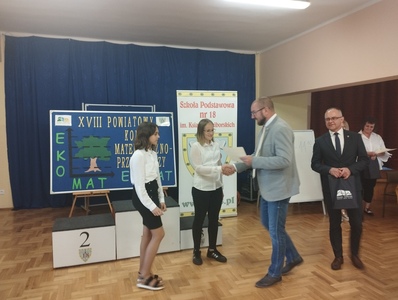 Wszyscy uczestnicy konkursu otrzymali w nagrodę bogaty zestaw gadżetów ekologicznych. Nagrody wręczyli: z ramienia Starostwa – pan Marek Kurpis oraz dyrektor Szkoły Podstawowej nr 18 pan Mariusz Kaleta .