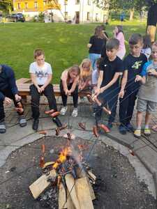 To jednak nie koniec wrażeń. Dzień zakończyliśmy wspólnym ogniskiem, pieczeniem kiełbasek i zabawami. Z niecierpliwością czekamy na kolejny dzień, który z pewnością będzie równie emocjonujący jak dzisiejszy.