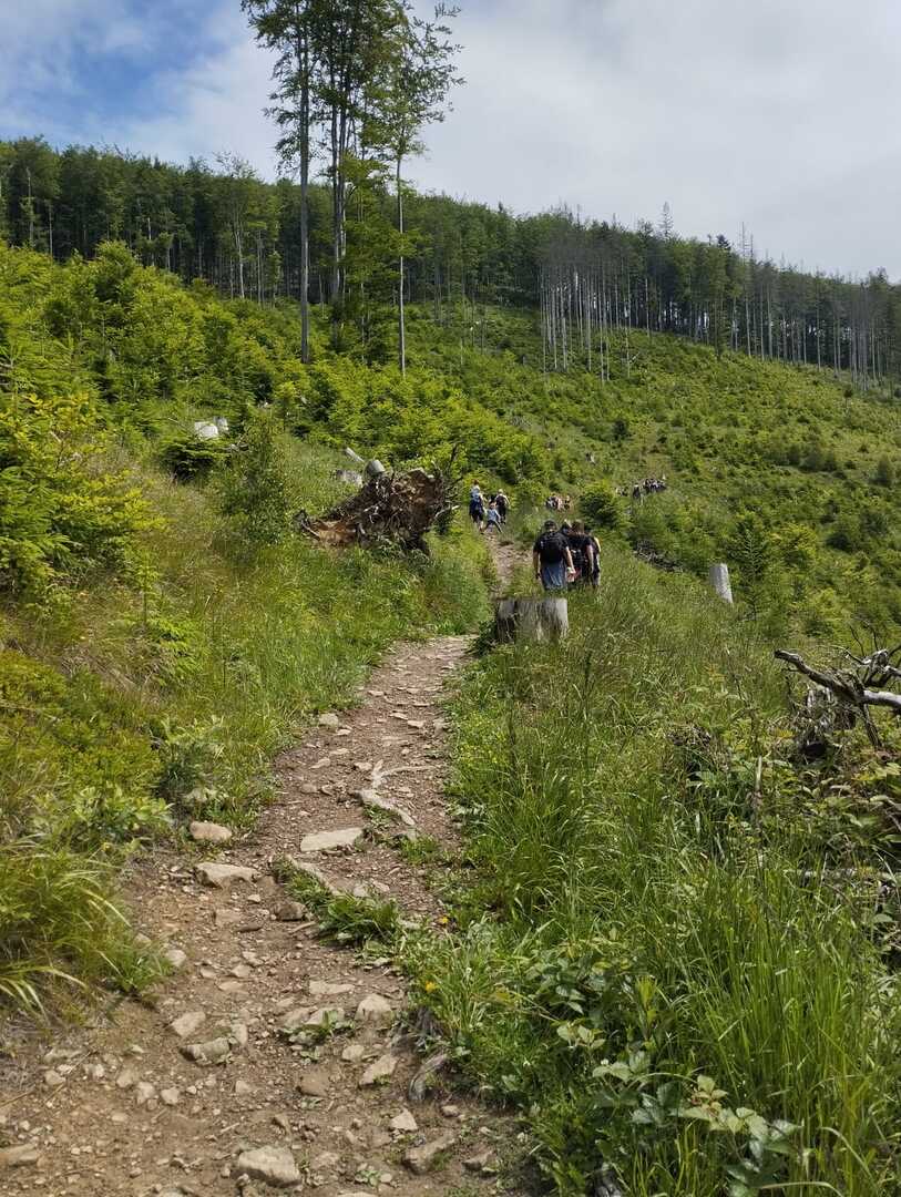 Drugiego dnia wycieczki wyruszyliśmy na górski szlak. Polskie Beskidy to miejsce, które przyciąga miłośników górskich wędrówek z całego kraju. Jednym z najbardziej malowniczych i mniej zatłoczonych szlaków jest zielony szlak prowadzący na Przegibek oraz Bendoszkę. To trasa, która zapewnia niezapomniane widoki i przygodę z dala od miejskiego zgiełku. Wędrówka zielonym szlakiem rozpoczęła się w miejscowości Rycerka Górna. To niewielka wieś położona w dolinie, otoczona przez wzniesienia Beskidu Żywieckiego. Pierwszym celem na dzisiejszej trasie był Przegibek – popularne wzniesienie i zarazem przełęcz w Beskidzie Żywieckim. Droga prowadzi przez gęste lasy. Podejście na Przegibek jest umiarkowanie trudne, jednak wynagradza wysiłek wspaniałymi widokami na okoliczne góry.