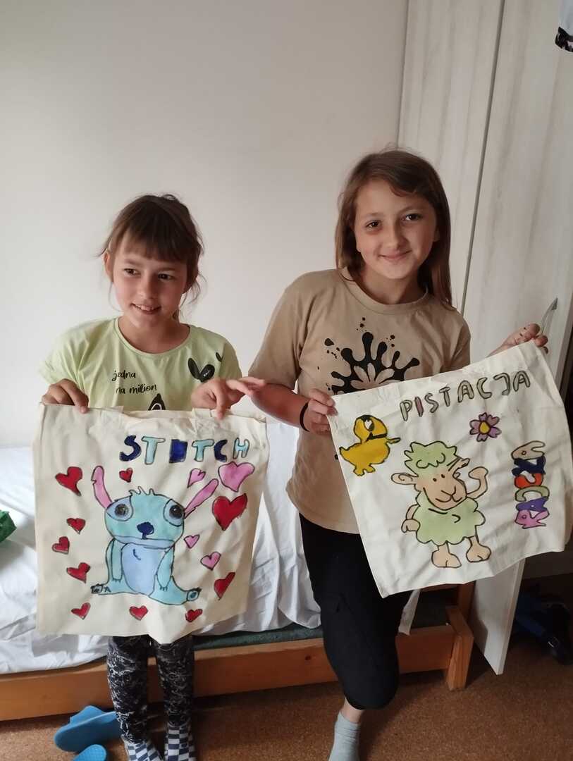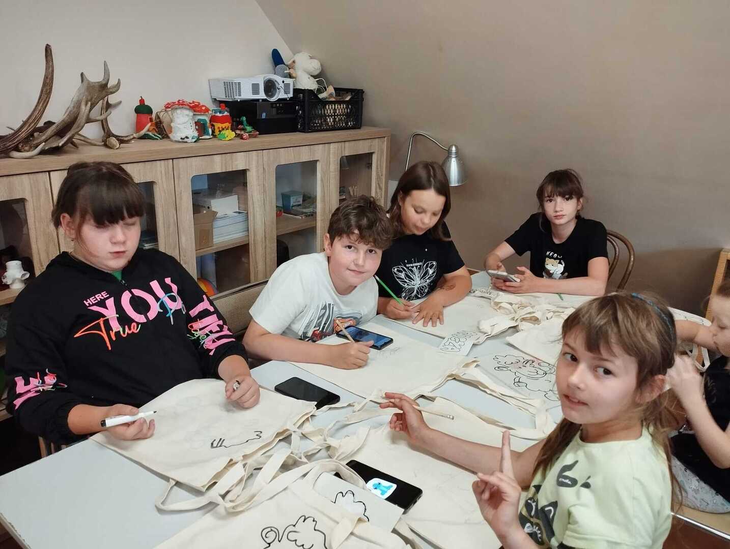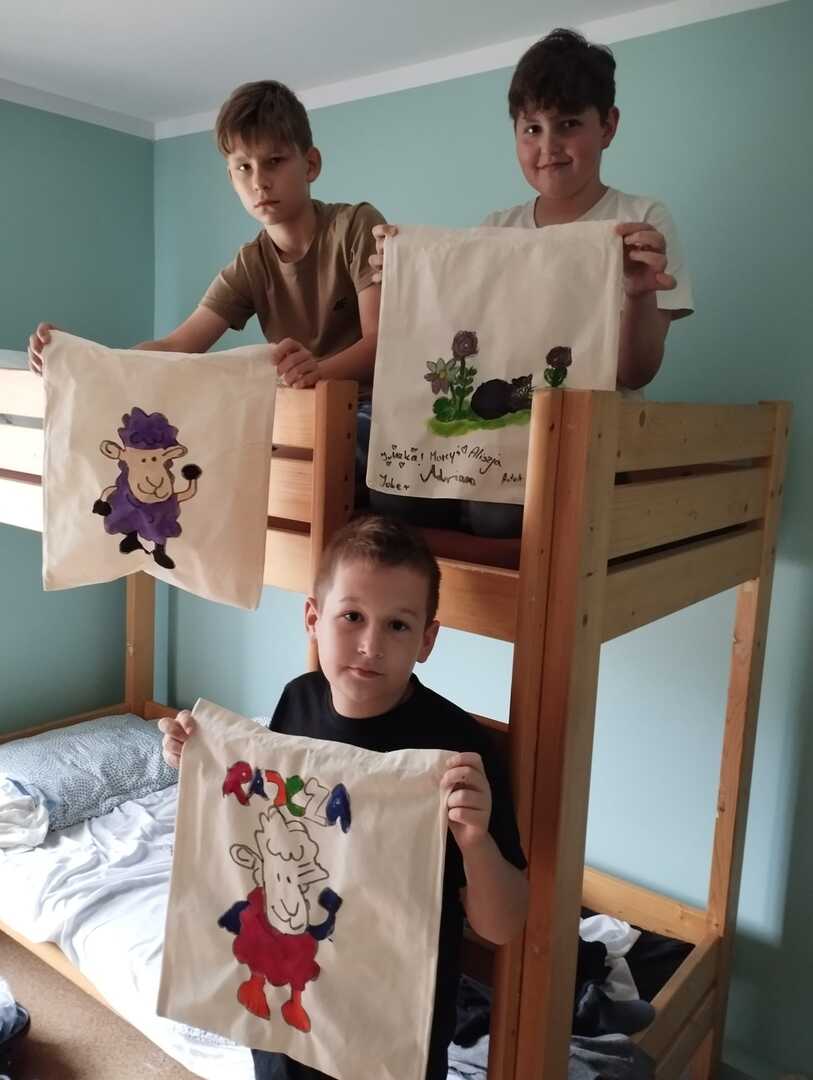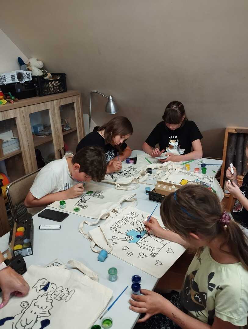 Drugim punktem programu były warsztaty malowania bawełnianych toreb na zakupy. To świetna okazja do rozwijania kreatywności i jednoczesnego promowania ekologicznych rozwiązań. Każdy uczestnik otrzymał bawełnianą torbę oraz zestaw farb, markery i szablony, z których można skorzystać. Podczas warsztatów uczniowie mogą wyrazić swoją indywidualność, tworząc oryginalne i praktyczne dzieła sztuki. Malowanie toreb to także świetna forma relaksu i odstresowania, a gotowe torby będą praktyczną pamiątką z wyjazdu.