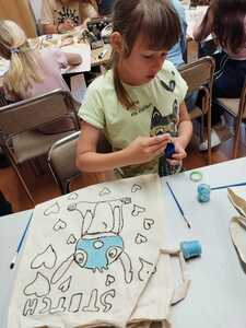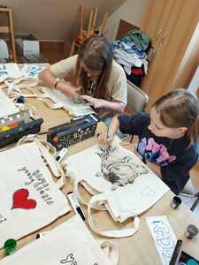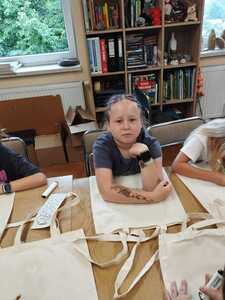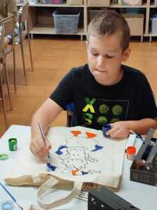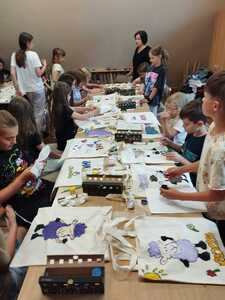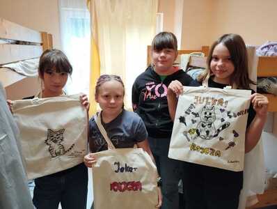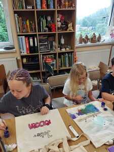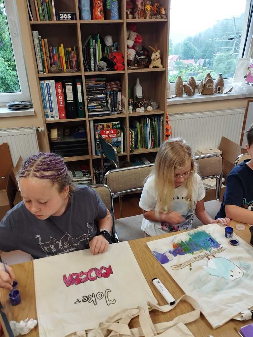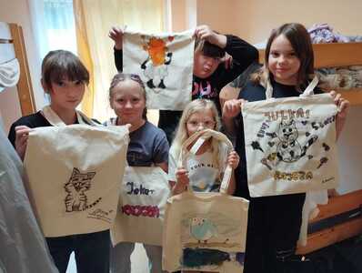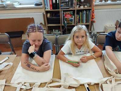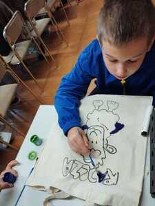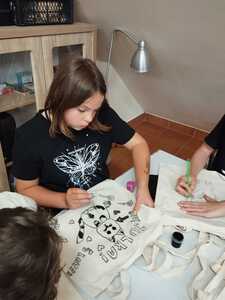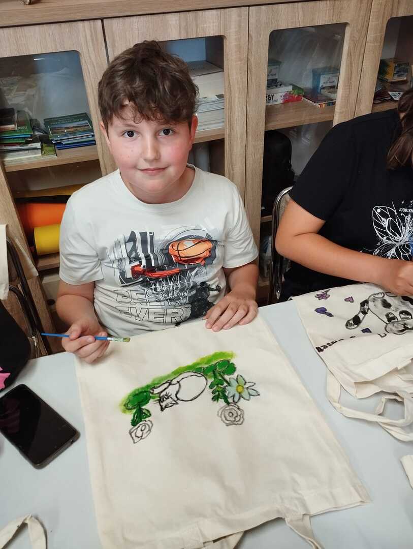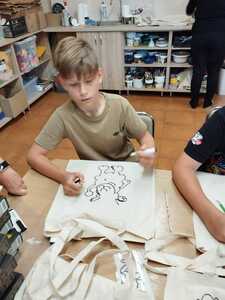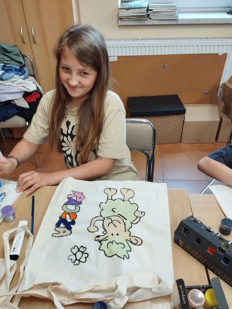 Drugim punktem programu były warsztaty malowania bawełnianych toreb na zakupy. To świetna okazja do rozwijania kreatywności i jednoczesnego promowania ekologicznych rozwiązań. Każdy uczestnik otrzymał bawełnianą torbę oraz zestaw farb, markery i szablony, z których można skorzystać. Podczas warsztatów uczniowie mogą wyrazić swoją indywidualność, tworząc oryginalne i praktyczne dzieła sztuki. Malowanie toreb to także świetna forma relaksu i odstresowania, a gotowe torby będą praktyczną pamiątką z wyjazdu.