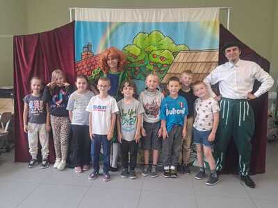 11 czerwca zawitał do nas teatr " Bajkowe Skarbków Śląska" z przedstawieniem pt. " Niezwykłe przygody kota i Karoliny". Spektakl przypomniał dzieciom, jak ważną rolę pełni przyjaciel w naszym życiu. Dzieci świetnie się bawiły, a niektóre aktywnie uczestniczyły w występie. Dziękujemy aktorom za dostarczenie wielu wrażeń.