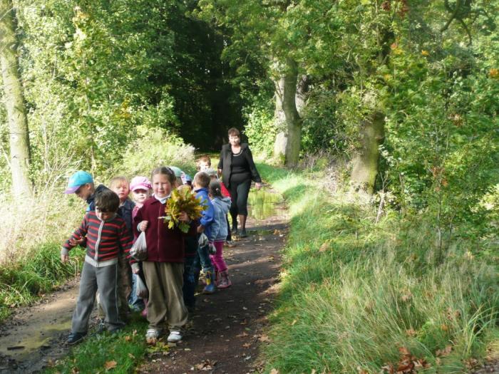 W piątek 5 października dzieci z przedszkola w Rzuchowie wraz z nauczycielem wybrały się na pieszą wycieczkę do lasu. Głównym celem wizyty w lesie było przybliżenie przedszkolakom środowiska przyrodniczego, jakim jest las oraz zapoznanie dzieci ze zwierzyną i roślinnością tam występującą. Leśną przygodę rozpoczęli od pogadanki na temat prawidłowego zachowania w lesie. Następnie dzieci słuchały śpiewu ptaków, szukały zwierząt zamieszkujących las, rozmawiały o grzybach, utrwalały nazwy drzew oraz zbierały do woreczków „skarby”, które pani Jesień zostawiła w lesie. Były to m. in. kolorowe liście, żołędzie i kasztany. Zebrane skarby zostały zaniesione do przedszkola, by wzbogacić kącik przyrody. Wycieczka do lasu dostarczyła przedszkolakom wielu niezapomnianych wrażeń.