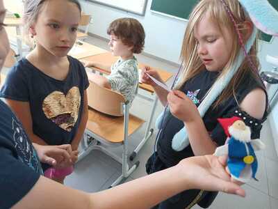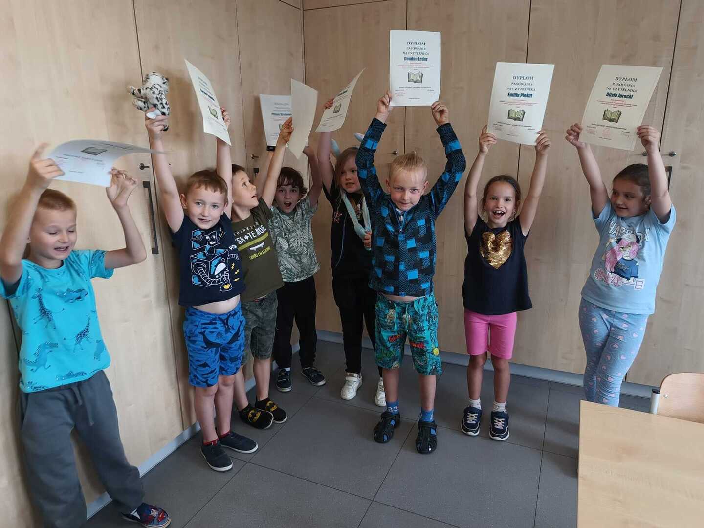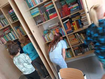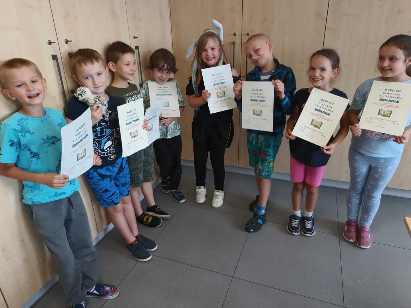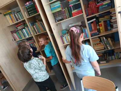 20 czerwca 2024 r. w naszej bibliotece odbyło się pasowanie pierwszoklasistów na czytelników biblioteki. Uroczystość ta odbywa się co roku tuż przed zakończeniem roku szkolnego, gdyż wtedy pierwszoklasiści potrafią już czytać, poznali już wszystkie litery i wówczas zostają pełnoprawnymi czytelnikami biblioteki. W trakcie szczególnej, odświętnej lekcji bibliotecznej uczniowie pierwszej klasy rozwiązują zagadki związane z poznanymi utworami literackimi, zapoznają się z zasadami obchodzenia z książką, a wszystko odbywa się poprzez zabawę; między innymi zadaniem pierwszoklasistów jest odnalezienie ukrytych między książkami krasnali, którzy w załączonych do nich karteczkach przekazują im ważne na temat książek informacje. Po wykonaniu wszystkich zadań odbyło się uroczyste ślubowanie oraz wręczenie uczniom dyplomów czytelnika. Naszym najmłodszym uczniom życzymy w dalszej nauce wielu ciekawych wrażeń związanych z lekturą i biblioteką.