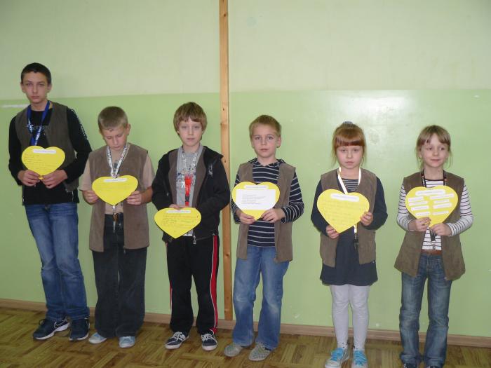 Idąc przykładem poprzedniego roku postanowiliśmy i tym razem zorganizować w naszej społeczności szkolnej ,,Dzień Życzliwości”. Akcja rozpoczęła się 23 listopada 2012r. i trwała przez tydzień. Na początku uczniowie klasy III należący do SK PCK przedstawili krótką, ale przemawiającą do uczniów inscenizację ,,O prawdziwym człowieku”. Tematyka przedstawienia była ciekawą zachętą do klasowych dyskusji i rozmów, w wyniku których zespoły miały ustalić ,,KODEKS CZŁOWIEKA ŻYCZLIWEGO”. Jako symbol tegorocznego dnia wybraliśmy żółte serce i dlatego każdy klasowy dekalog w takim sercu został zapisany, a jego treść była zaprezentowana przez poszczególnych przewodniczących klas na apelu końcowym. Miłym akcentem akcji był słodki poczęstunek - ,,zaczarowane ciasteczko życzliwości”, którym częstowały wszystkich zebranych dziewczynki z klasy III. Akcja cieszyła się ogromnym zainteresowaniem uczestniczacych w niej uczniów.