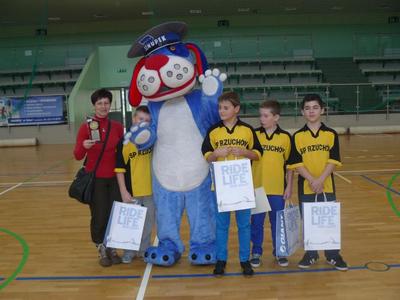 I ZIMOWY TURNIEJ BEZPIECZEŃSTWA RUCHU DROGOWEGO 17 grudnia 2012r. w hali widowiskowo - sportowej OSiR "Arena Rafako" w Raciborzu odbył się I Zimowy Turniej Bezpieczeństwa Ruchu Drogowego dla szkół podstawowych z terenu powiatu raciborskiego. Turniej został zorganizowany przez Prezydenta Miasta Racibórz, Komendę Powiatową Policji w Raciborzu, Ośrodek Sportu i Rekreacji oraz Wodne Ochotnicze Pogotowie Ratunkowe. Do turnieju stanęło 12 drużyn z powiatu raciborskiego. Szkołę Podstawową w Rzuchowie reprezentowali uczniowie w składzie: Szymon Murański, Mateusz Buda, Szymon Ficner, Rafał Opyd. Każdy z zawodników danej drużyny brał udział w jednej z wylosowanych przez sędziów konkurencji, do których zaliczał się test wiedzy o ruchu drogowym i obiektach architektonicznych powiatu raciborskiego, jazda rowerem na czas, jazda rowerem po torze przeszkód oraz strzelanie do tarczy przy użyciu trenażera laserowego. Odpowiedzi na pytania testowe udzielał Szymon Ficner, jazdę na czas pokonał Rafał Opyd, jazdę po torze przeszkód - Mateusz Buda, a strzelanie do tarczy wykonał Szymon Murański. Drużynowo zajęliśmy III miejsce. Uczniowie otrzymali pamiątkowy puchar, dyplomy oraz bardzo praktyczne nagrody rzeczowe - wyposażenie do rowerów. Szkoła otrzymała upominek w postaci gry edukacyjnej. Dodatkową atrakcją turnieju międzyszkolnego był pokaz tresury psa policyjnego, pokaz udzielania pierwszej pomocy w wykinaniu ratowników medycznych, pokaz walk aikido oraz pokaz gestów sygnalizacyjnych kierującego ruchem ulicznym policjanta. We wszystkich atrakcjach nasi zawodnicy mogli brać czynny udział. Każdy element turnieju cieszył się ogromnym zainteresowaniem uczniów.