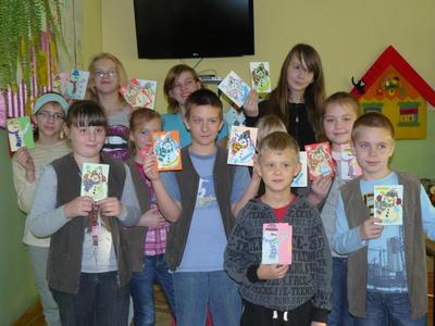 DAR OD SERCA - PAMIĘTAMY O INNYCH Udział w akcjach dobroczynnych polega nie tylko na przynoszeniu gotowych i zakupionych produktów spożywczych, chemicznych, odzieżowych czy zabawek. Ważne są własne inicjatywy, pomysłowość, inwencja twórcza i samodzielna praca ofiarodawców. Młodzież w naszej szkole w okresie świątecznym zawsze pamięta o ludziach samotnych, starszych czy chorych. W tym miesiącu na zajęciach koła PCK wykonaliśmy 130 kartek bożonarodzeniowych, które zostaną wręczone mieszkańcom naszej miejscowości oraz pensjonariuszom Ośrodka Opieki Społecznej "Złota Jesień" w Raciborzu. Dzieci przed świętami odwiedzą domostwa ludzi starszych, samotnych, chorych i przekażą im własnoręcznie wykonane kartki - dar od serca - wraz z bożonarodzeniowymi życzeniami.