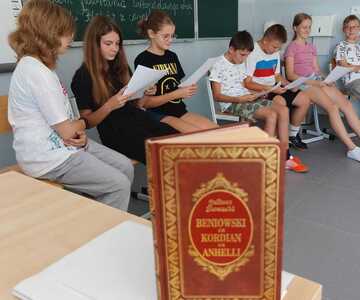 W sobotę 7 września 2024r. w wielu miejscach Polski został przeczytany w ramach akcji Narodowe Czytanie utwór Juliusza Słowackiego „Kordian”. Uczniowie klas najstarszych naszej szkoły w ramach zajęć języka polskiego również włączyli się do ogólnopolskiej akcji czytelniczej. Odczytano list Prezydenta RP Andrzeja Dudy zachęcający do udziału w akcji wspólnego czytania dzieła romantycznego wieszcza. Przypomniano tytuły utworów polskiej klasyki, które były promowane w latach ubiegłych. Uczniowie klasy siódmej i ósmej z podziałem na role odczytali fragmenty dramatu Słowackiego. W dalszej części zajęć uczniowie zobaczyli krótki filmik przedstawiający najbardziej znane cytaty z utworu romantycznego poety.