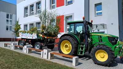 8.09.2024r uczniowie naszej szkoły w pięknie przystrojonej przyczepie wzięli udział w dożynkach Gminy Kornowac, której tegorocznym gospodarzem było sołectwo Kobyla. W kolorowym korowodzie z numerkiem 32 objechaliśmy wieś Kobylę podziwiając przystrojone posesje i humorystyczne hasła. Na koniec nasze „Wesołe Minki” dotarły na boisko LKS „Płomień”, gdzie odbyły się dalsze uroczystości.