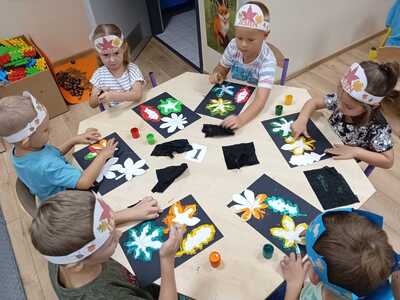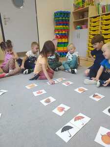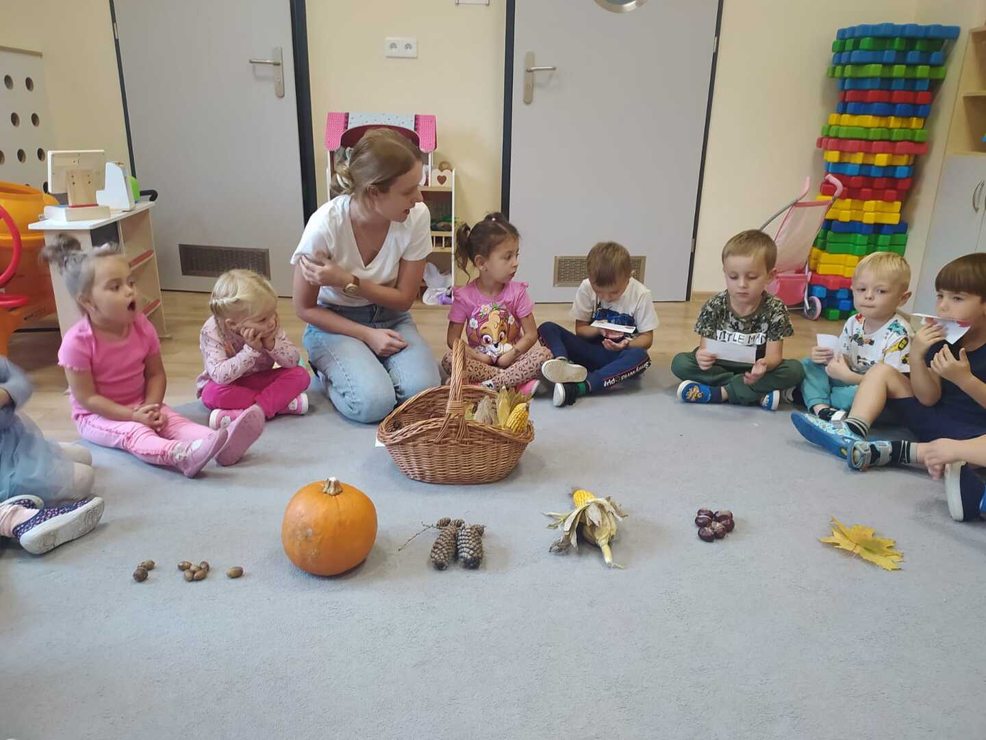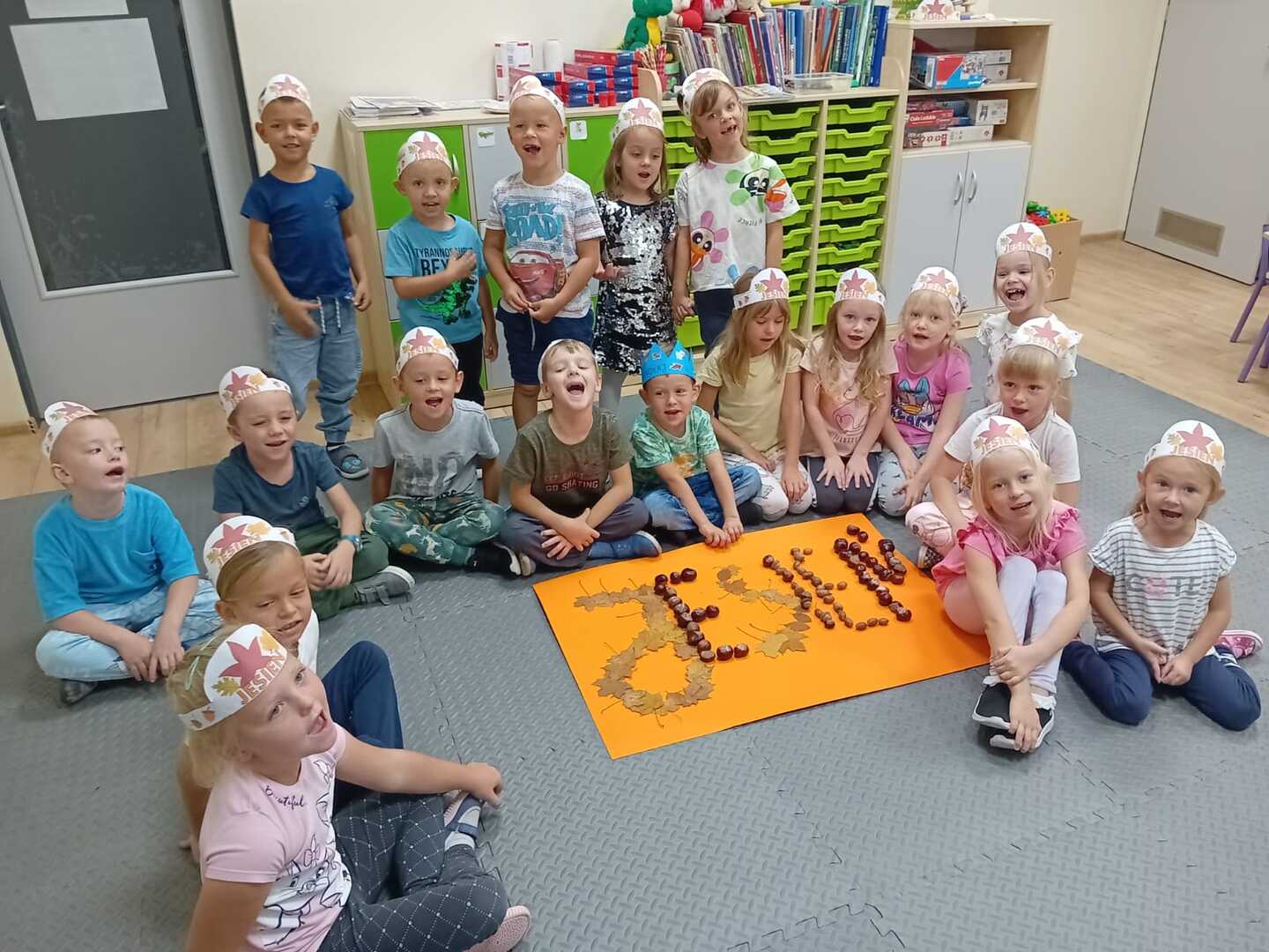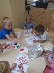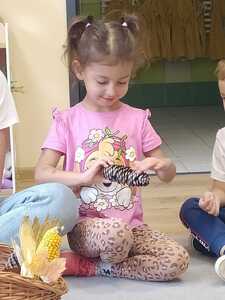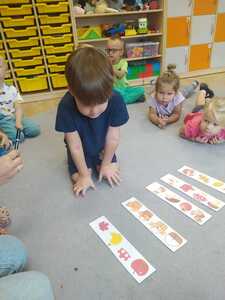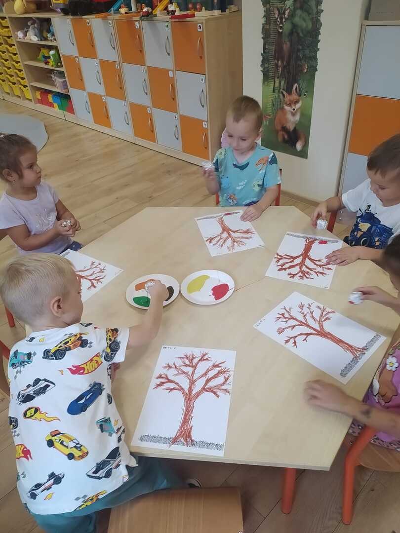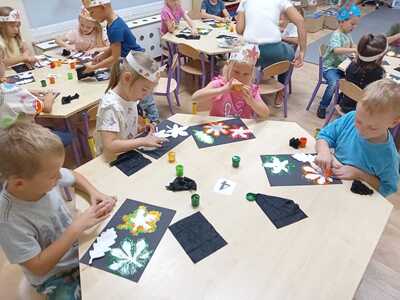 W poniedziałek 23 września do przedszkola w Rzuchowie przyszła pani Jesień, która przyniosła ze sobą kosz pełen kasztanów, żołędzi i kolorowych liści. Przedszkolaki chętnie nazywały dary jesieni, dzieliły te wyrazy na sylaby i wyodrębniały w nich pierwszą głoskę. Następnie przedszkolaki bawiły się śpiewając piosenki o jesieni, uczyły się wierszyka, słuchały utworu A. Vivaldiego „Jesień” oraz stworzyły piękne prace plastyczne ( grupa starsza – kolorowe liście, grupa młodsza- jesienne drzewo). Po zajęciach wybraliśmy się na wycieczkę do parku. W trakcie wycieczki przedszkolaki obserwowały zmiany zachodzące w przyrodzie, poznawały i nazywały poszczególne drzewa oraz tworzyły przepiękne bukiety z liści. Pierwszy dzień jesieni upłynął w naszym przedszkolu pod znakiem wesołej zabawy.