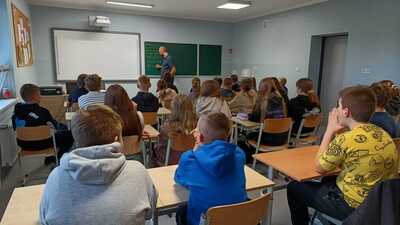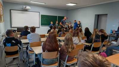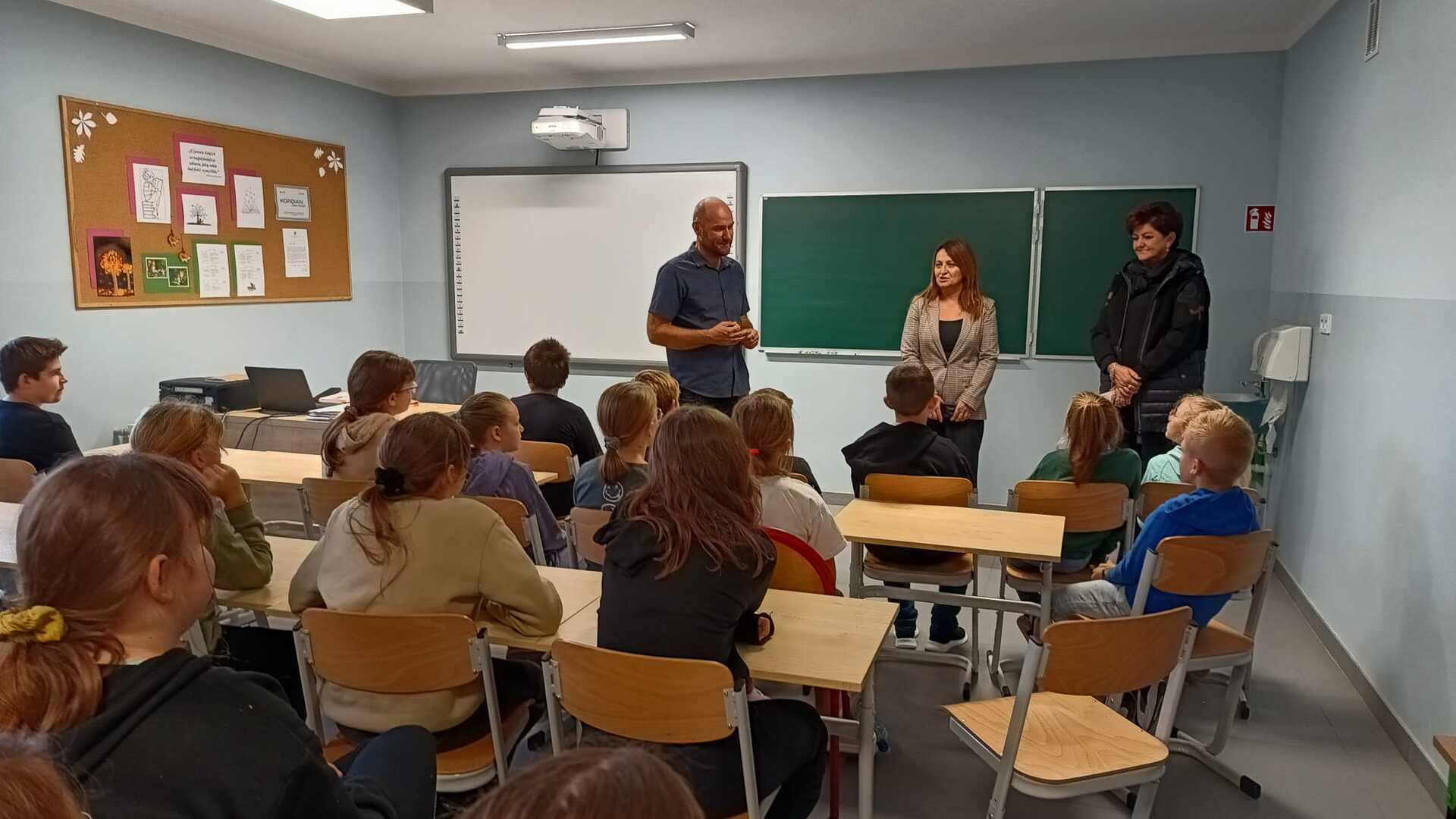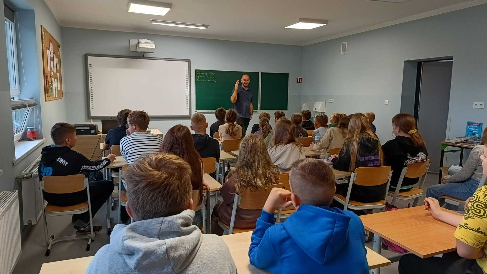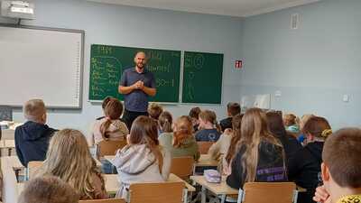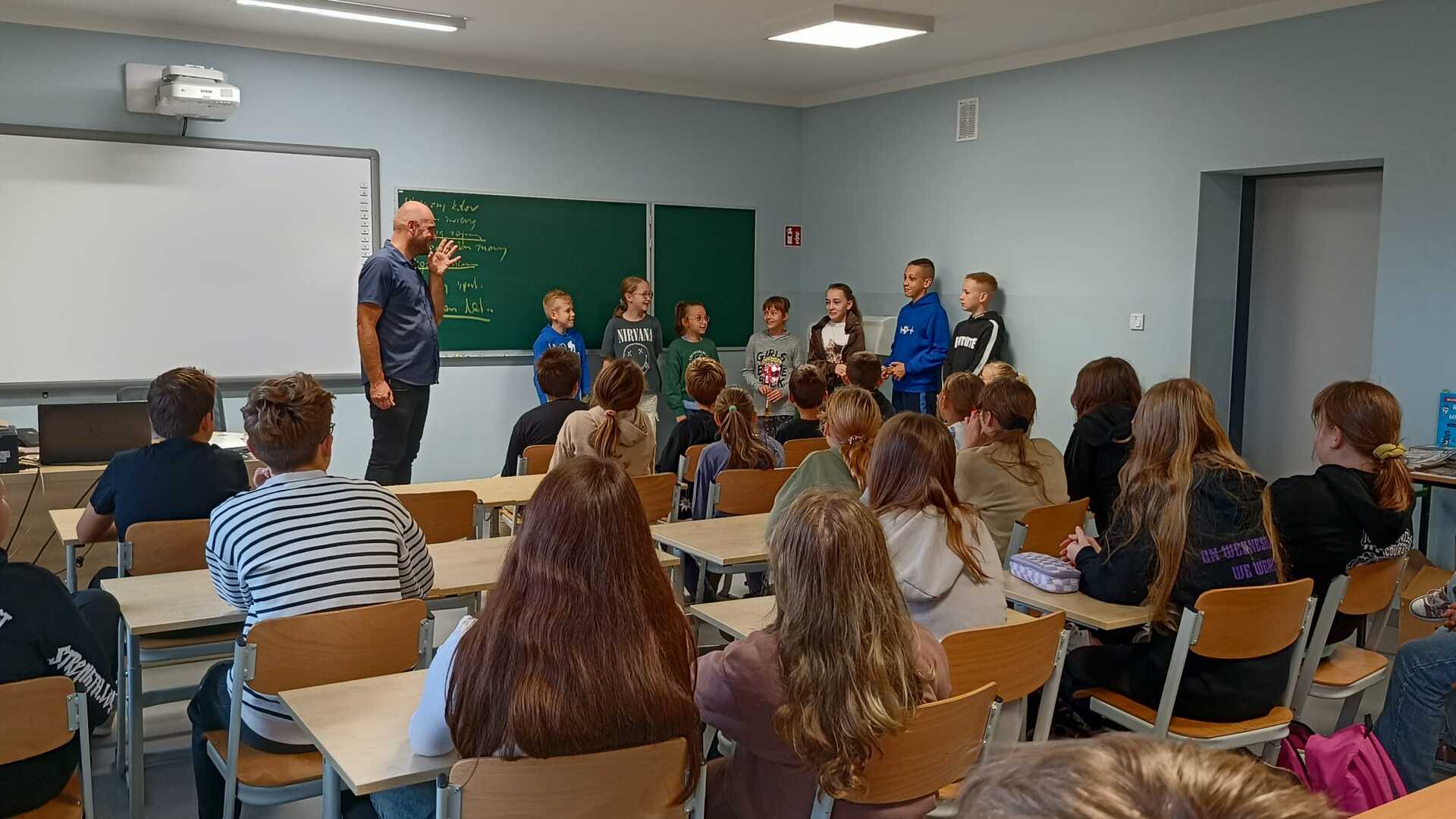 „Dlaczego warto czytać?”, „Ile czasu powinniśmy poświęcić codziennie na czytanie?”, „Co byśmy robili, gdyby nie było w naszym świecie książek?”. Na te i podobne pytania odpowiadał uczniom Pan Jacek Łapiński – pisarz, prawnik, pasjonat psychologii pozytywnej, przedsiębiorca, podróżnik. Spotkanie autorskie odbyło się w piątek 11 października 2024r. Uczestniczyli w nim uczniowie klas IV-VIII naszej szkoły. Spotkanie z Panem Łapińskim skłoniło młodych ludzi do refleksji na temat książek, potrzeby czytania i związku czytania z rozwojem cywilizacji i kultury. Nasz Gość zachęcał młodych do częstszego sięgania po książkę i rozwijania pasji czytelniczych. Spotkanie to było niezwykle interesujące i miejmy nadzieję, przyniesie wiele korzyści wynikających ze zrozumienia i docenienie wartości wiedzy i mądrości płynącej z książek.