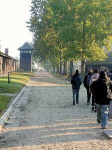 22 października odbyła się wycieczka przedmiotowa klasy ósmej do Oświęcimia. Celem wyjazdu było zwiedzenie Miejsca Pamięci i Muzeum Auschwitz - największego hitlerowskiego obozu, poznanie zjawiska eksterminacji ludności żydowskiej, która przybrała formę masowej zagłady oraz przybliżenie uczniom wydarzeń II wojny światowej. Dzięki opiece przewodnika uczniowie poznali historię obozu, zwiedzili poszczególne bloki, baraki, krematoria. Wysłuchali wiele tragicznych opowieści o losach zamordowanych, skazanych na głód, cierpienie, poniżenie, choroby. Uczniowie potraktowali to miejsce z powagą i zadumą. Widząc gabloty z przedmiotami, które pozostały po więźniach uświadomili sobie co tak naprawdę oznacza pogarda dla drugiego człowieka. Była to bardzo realistyczna lekcja historii, która pozostanie w pamięci.