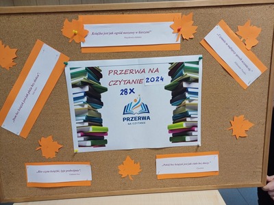 28 października 2024 r. w szkole odbyła się kolejna akcja promująca czytelnictwo. Zorganizowano VIII edycję ogólnopolskiej kampanii bicia rekordu w czytaniu czyli „Przerwę na czytanie”.