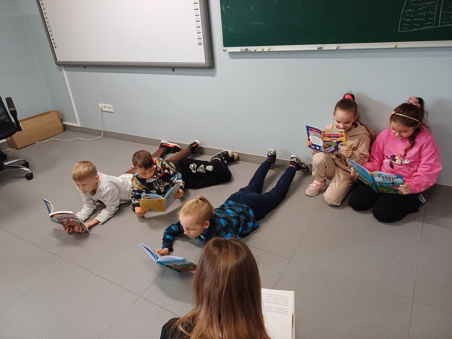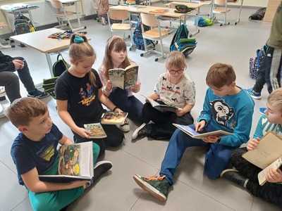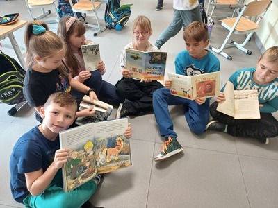 Tego dnia uczniowie w ramach przerw między lekcjami czytali przyniesione przez siebie ulubione książki z dzieciństwa bądź lektury, które aktualnie omawiają. Najmłodszym uczestnikom z klas I- III wybrane utwory czytali starsi koledzy i koleżanki. Dzieci słuchały m. in. mniej znanych baśni o Jasiu i Małgosi czy ballady „Pani Twardowska” A. Mickiewicza, wygodnie rozsiadając się w stworzonych na tę okazję klasowych strefach czytania.