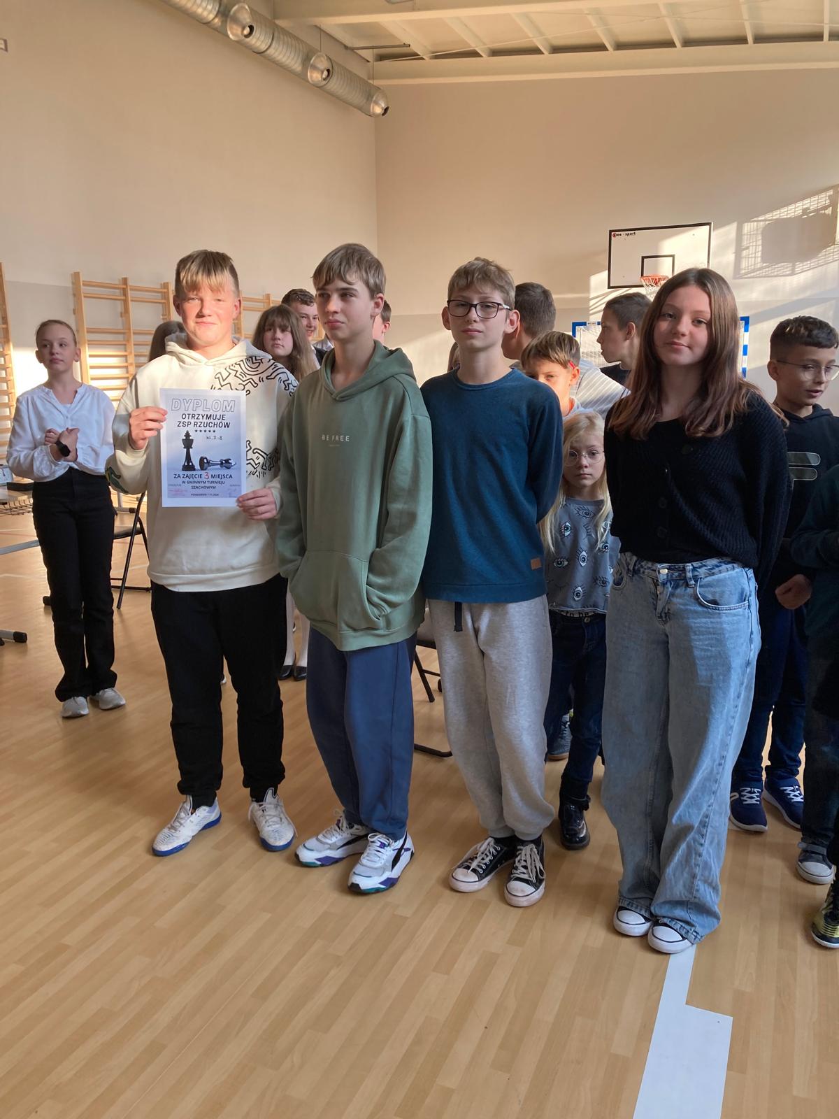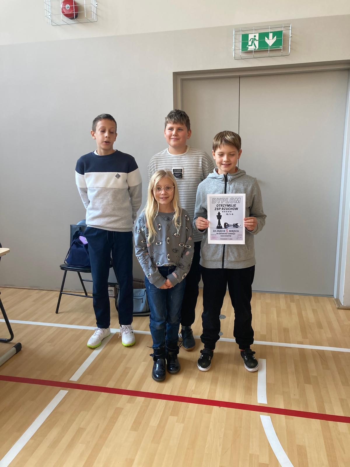 7 listopada 2024r reprezentanci szkoły w Rzuchowie wzięli udział w Gminnym Turnieju Szachowym, którego rozgrywki odbyły się w ZSP w Pogrzebieniu. Naszą szkołę w kategorii wiekowej klas 4-6 reprezentowali: Alicja Mróz, Aleksander Pilch, Seweryn Marek, Paweł Grochowski. Grupę klas 7-8 stanowili uczniowie: Lena Wyszkoń (uczennica kl.6), Dawid Kacorzyk, Jakub Zarzycki i Magnus Karwot.