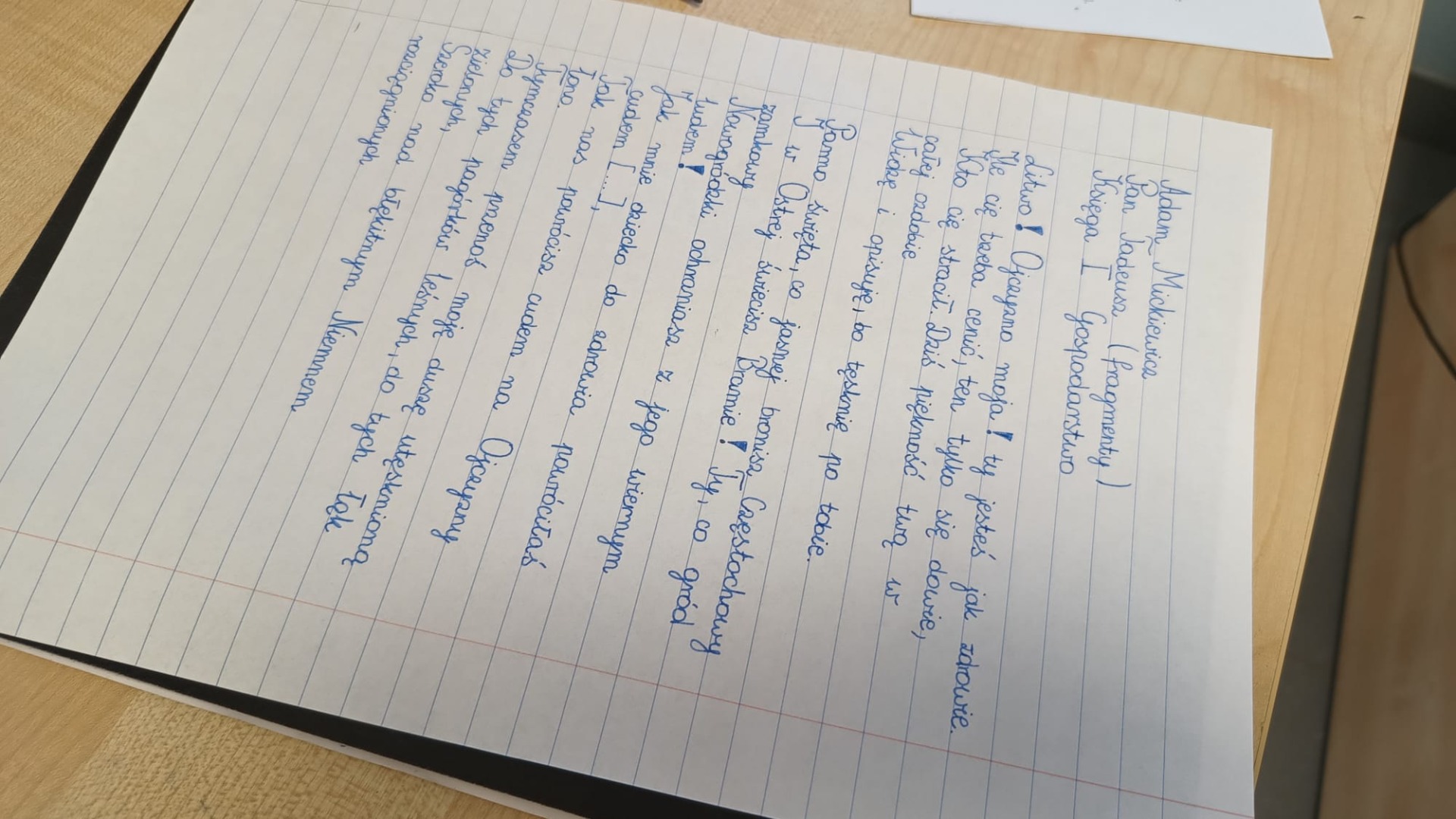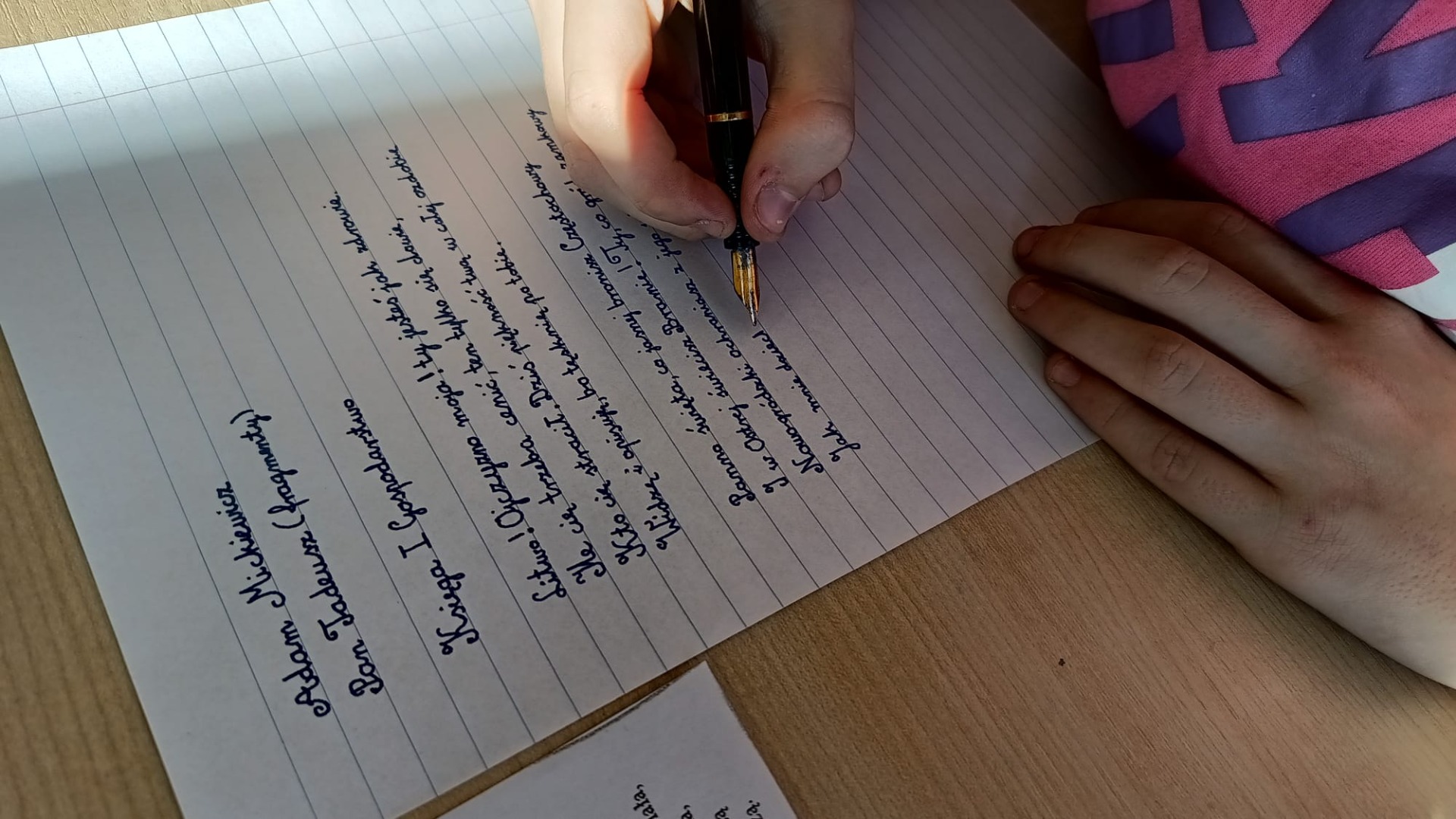 5 listopada 2024r. w naszej szkole odbył się Szkolny Konkurs Kaligraficzny dla uczniów klas IV – VI oraz klas VII – VIII. Wielu uczniów z poszczególnych klas wyraziło chęć udziału w zawodach pięknego pisania. Konkurs polegał na przepisaniu fragmentu „Pana Tadeusza” Adama Mickiewicza piórem na atrament. Głównym celem konkursu było wyłonienie przedstawicieli klas do Powiatowego Konkursu Kaligrafii, który ma się odbyć w Miejskiej i Powiatowej Bibliotece Publicznej w Raciborzu. Szkolna komisja konkursowa wyłoniła spośród licznych prac autorów najładniej przepisanego tekstu. W klasach IV – VI wyróżnienia otrzymały uczennice: Nadia Karpińska z klasy V oraz dwie uczennice klasy VI – Alicja Kupczyk i Wiktoria Zabrocka. W klasach VII – VIII najstaranniej tekst „Inwokacji” zapisały: Dominika Matusewicz, Milena Grasman i Aleksandra Kowol. Wszystkim uczennicom gratulujemy i życzymy im powodzenia w rozgrywkach powiatowych.